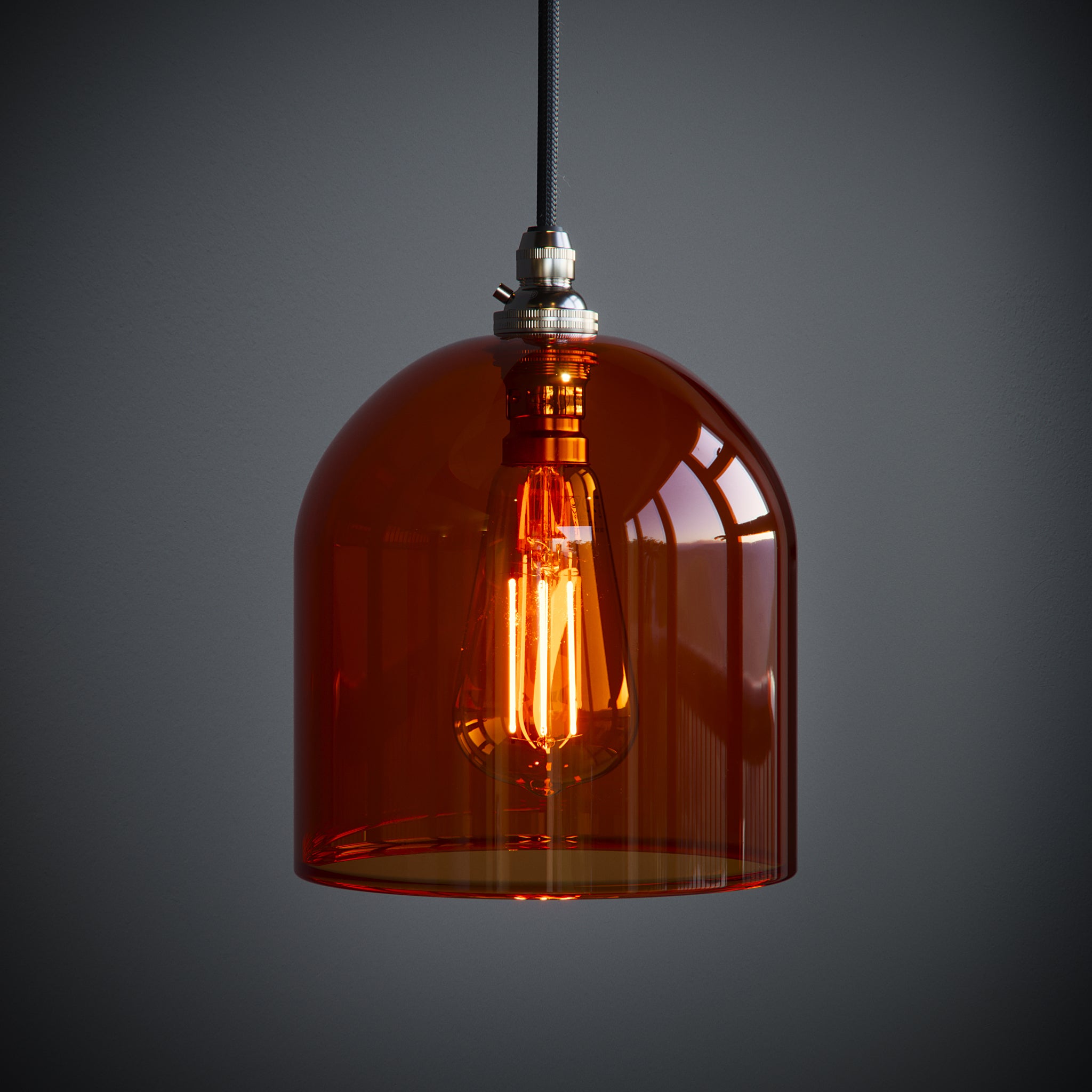 Each light is made to order and can be tailored to your style, with a choice of 12 glass colours – Amber, Dark Blue, Green, Lilac, Lime, Opal, Pale Blue, Pink, Smoke, Teal, Yellow, and Inky Black – along with a range of artisan metal finishes and fabric cable colours.