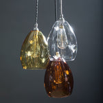 Our coloured glass Jules shades, etched with bees, hung together to create a stunning cluster chandelier light.