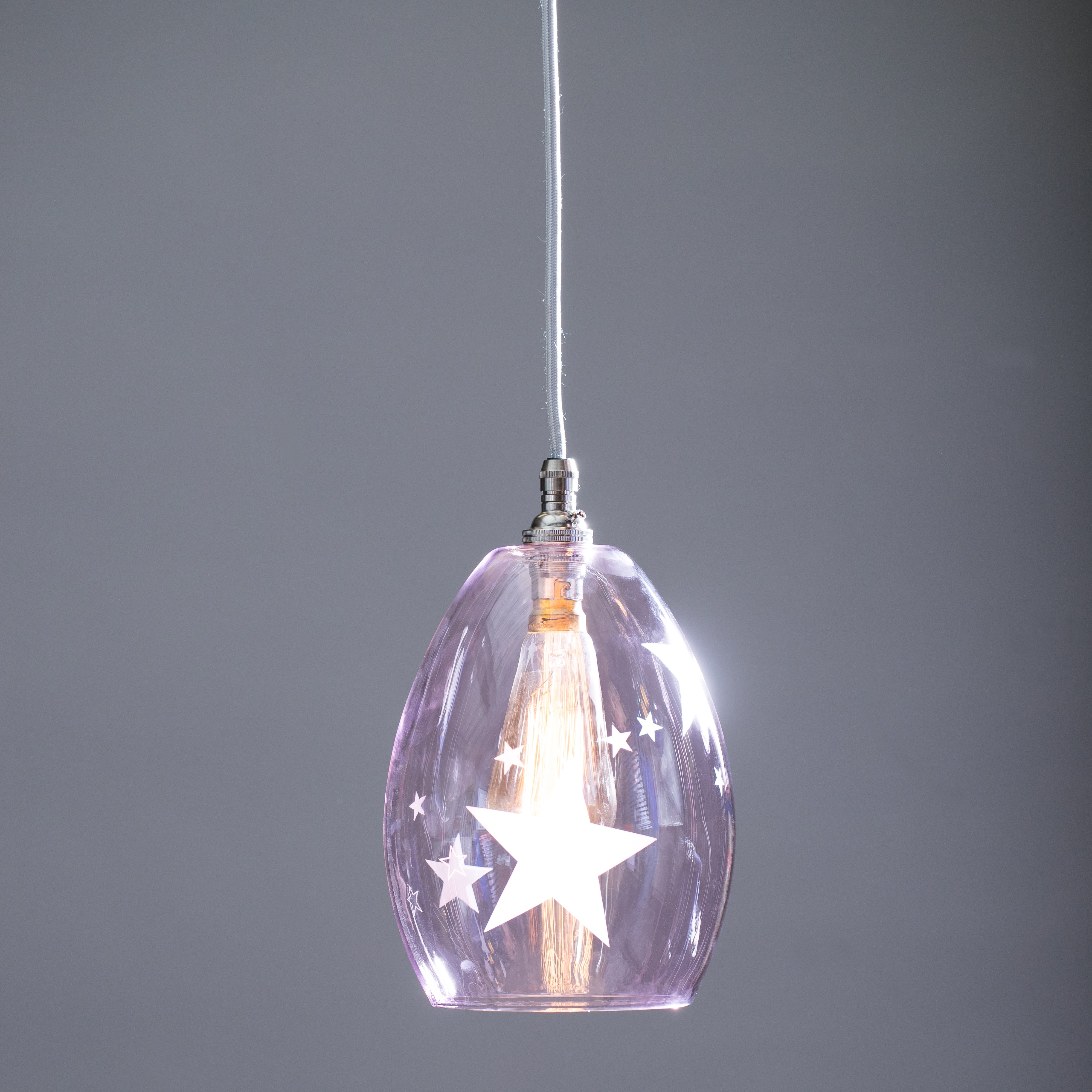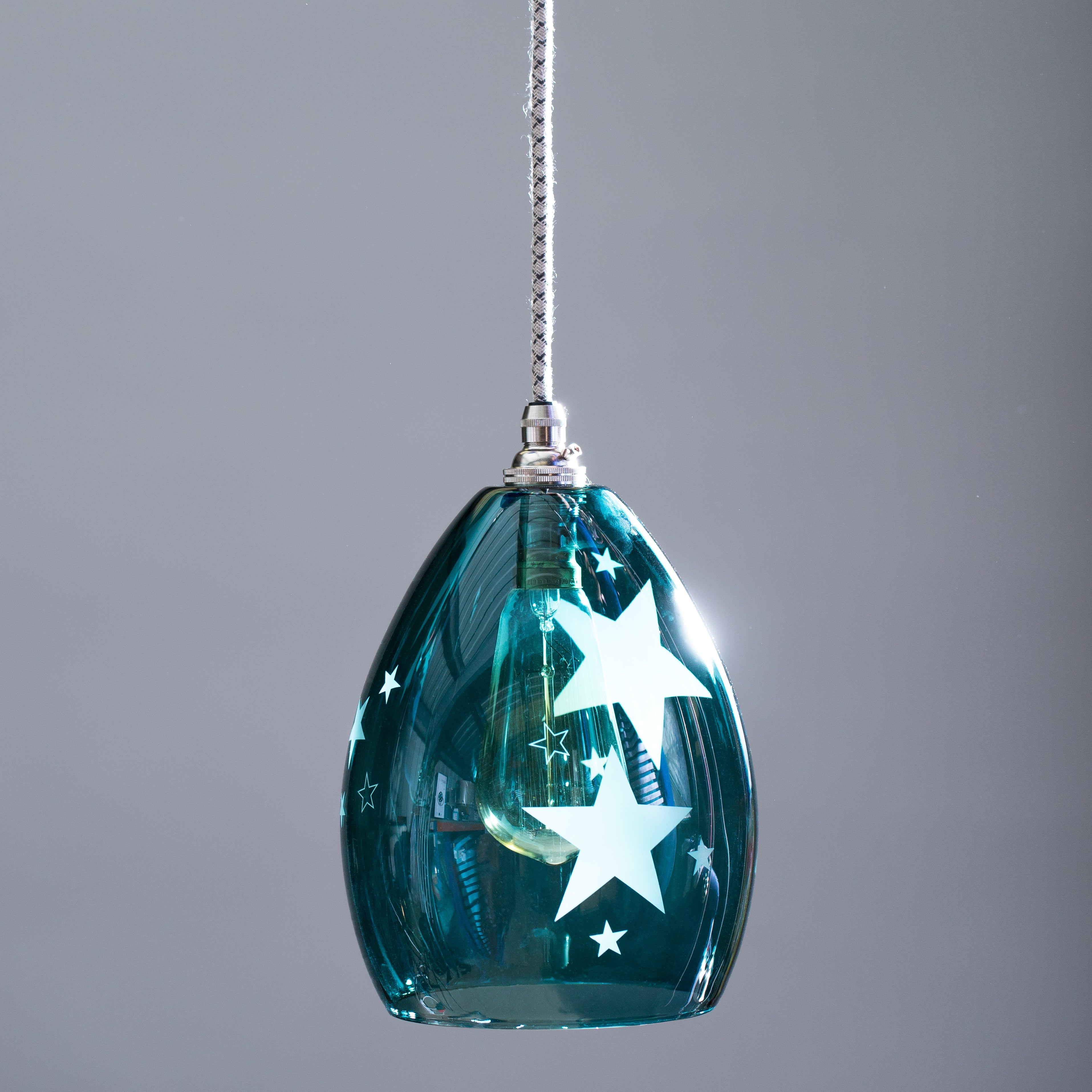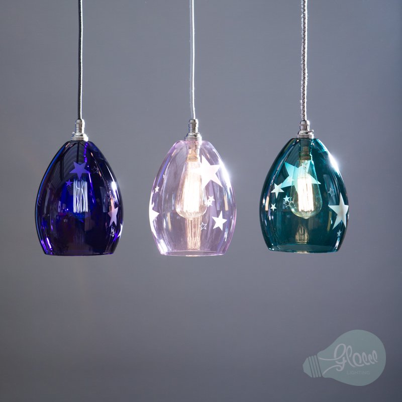 British Jules coloured glass pendant light etched with stars, these hand blown coloured glass shades etched with stars bring opulence into your home. Available in our extensive colour range.