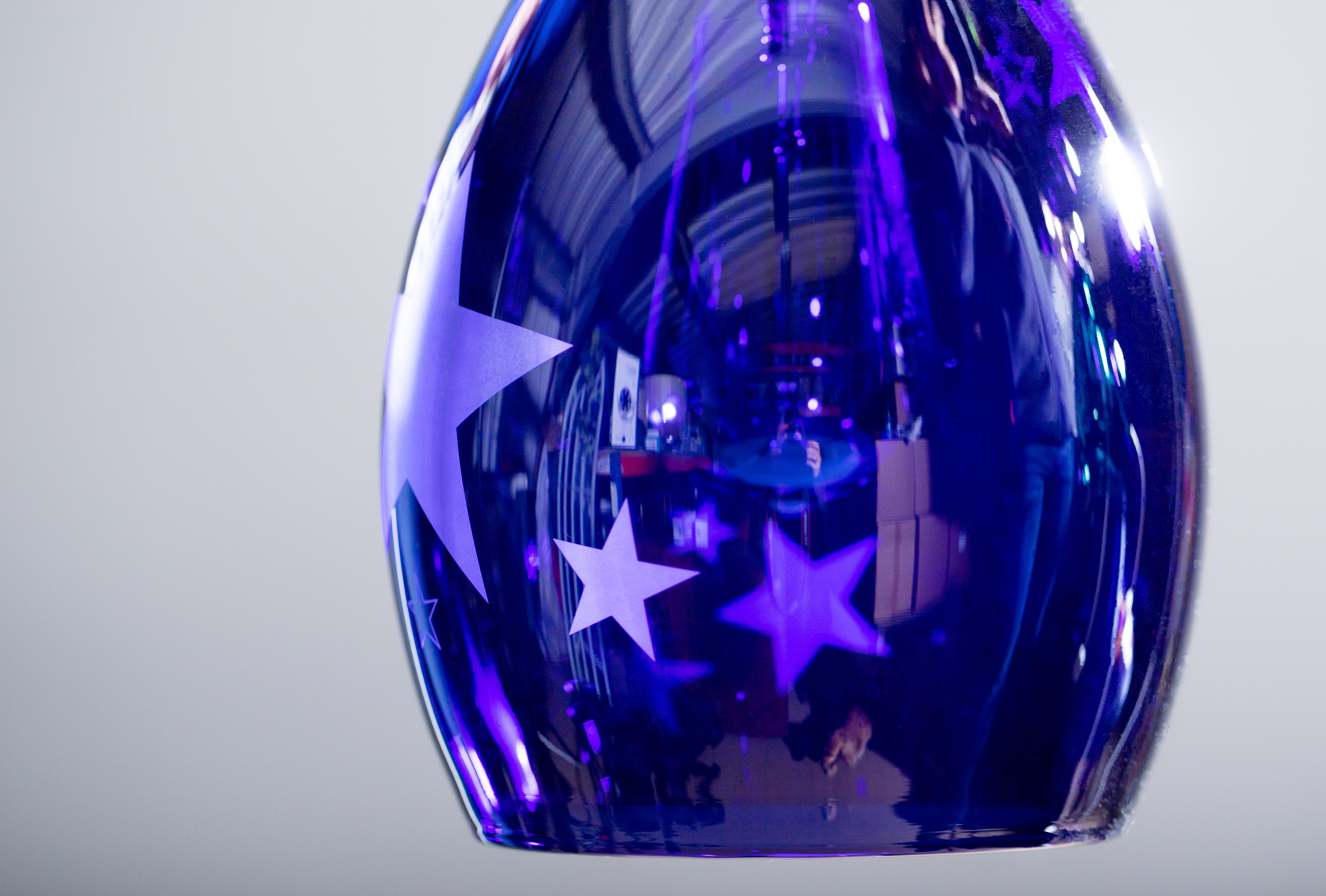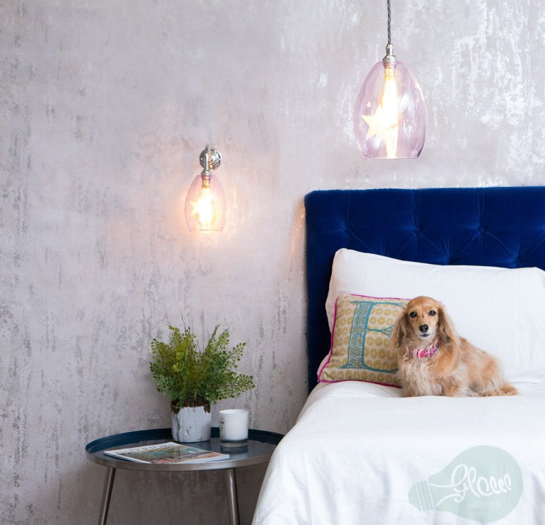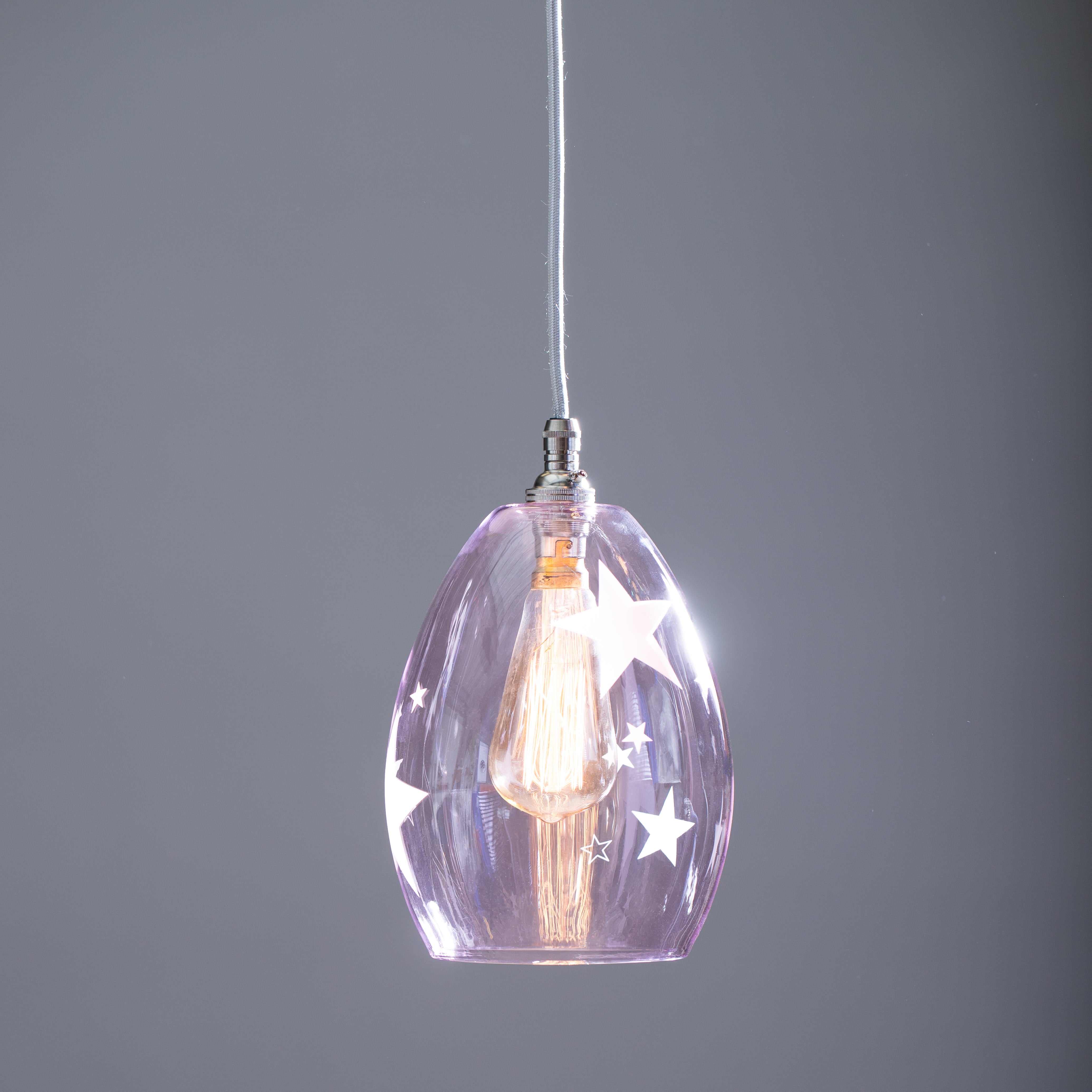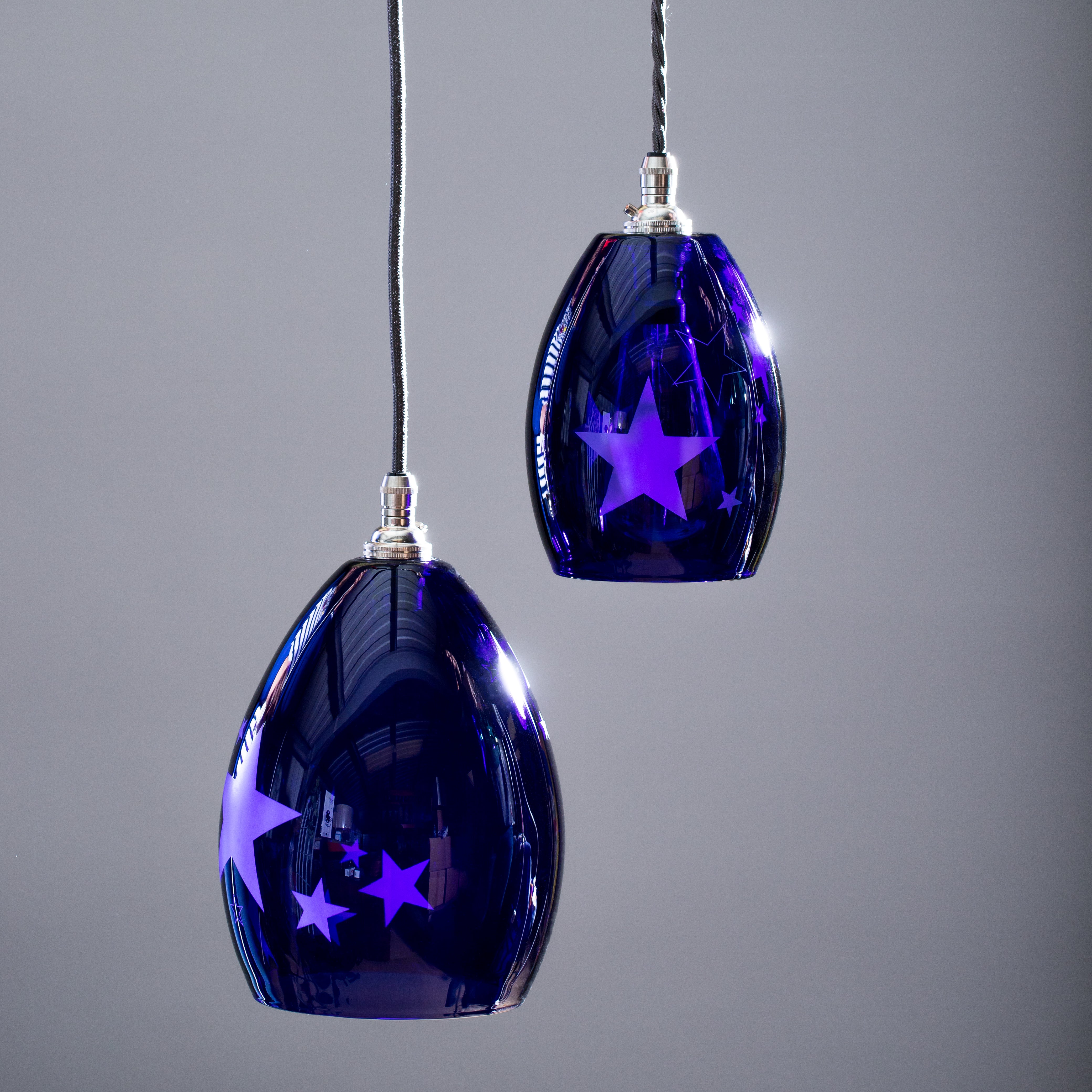 British Jules coloured glass pendant light etched with stars, these hand blown coloured glass shades etched with stars bring opulence into your home. Available in our extensive colour range.