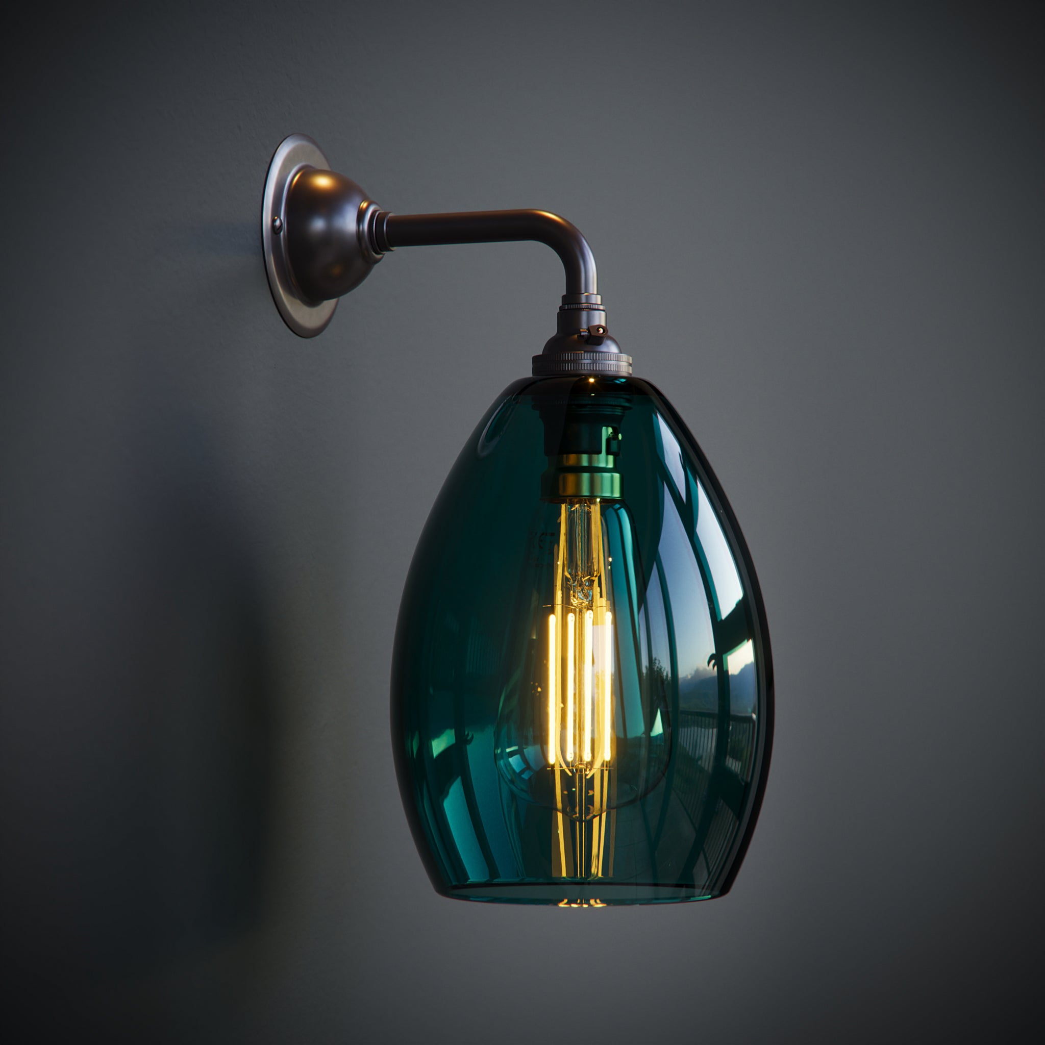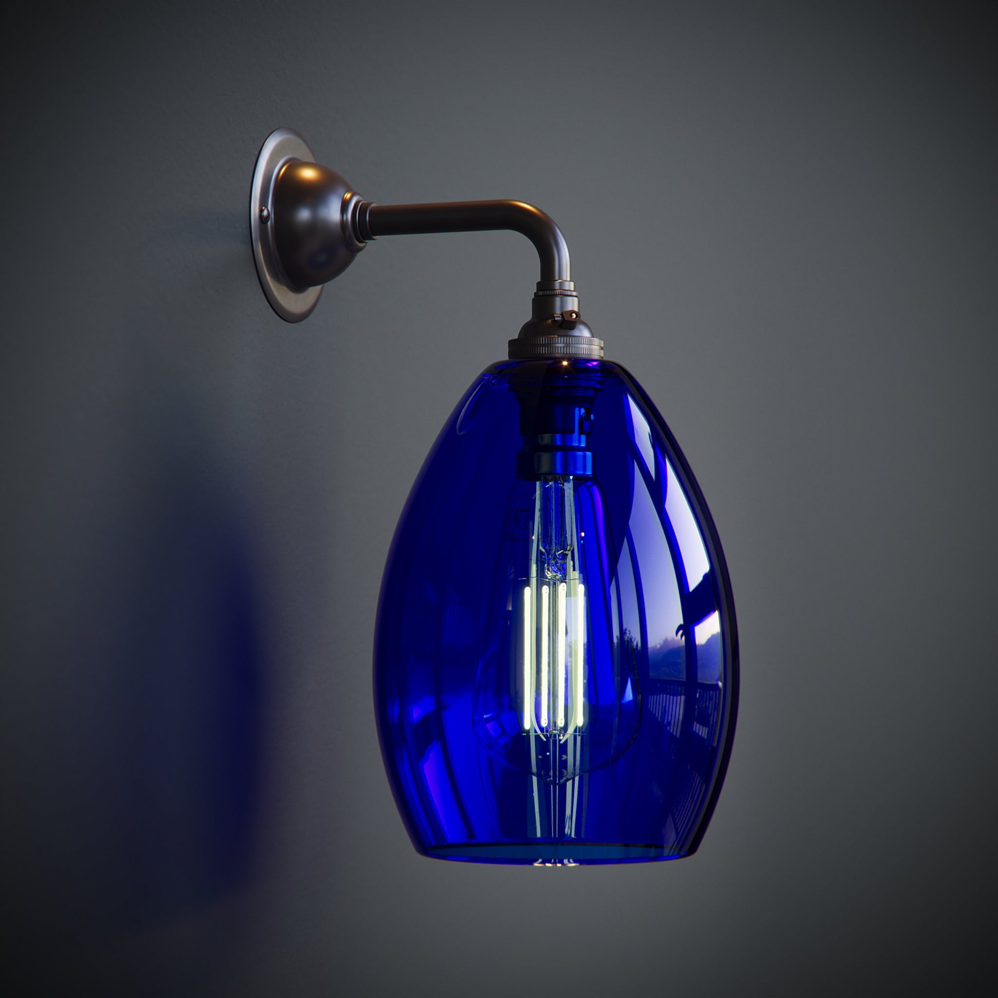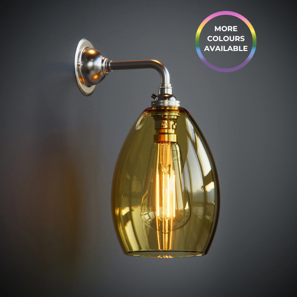 Add a touch of colour and modern elegance to your home with the Jules Contemporary Wall Light, featuring a handblown coloured glass shade and a sleek straight arm design. Crafted in our Yorkshire studio, each shade is made by hand, offering beautiful quality and a unique glow in every piece.