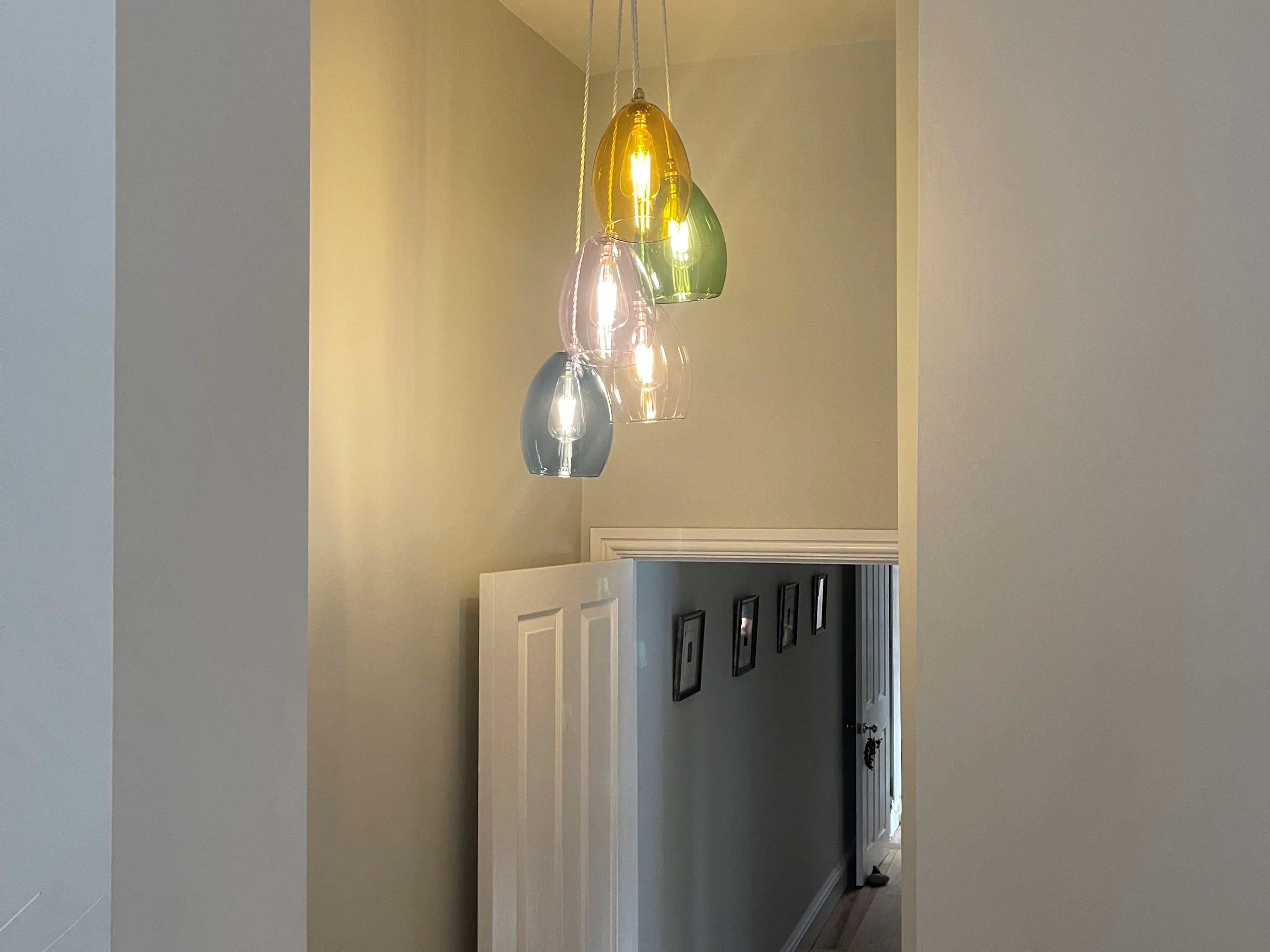 Whether you prefer bold jewel tones or softer pastel hues, the combination of colour and craftsmanship creates a striking feature that suits both contemporary and traditional interiors. The pendants can be hung at equal or staggered lengths, allowing you to tailor the design to your space. Our quality fabric cables add an additional layer of texture and detail.
