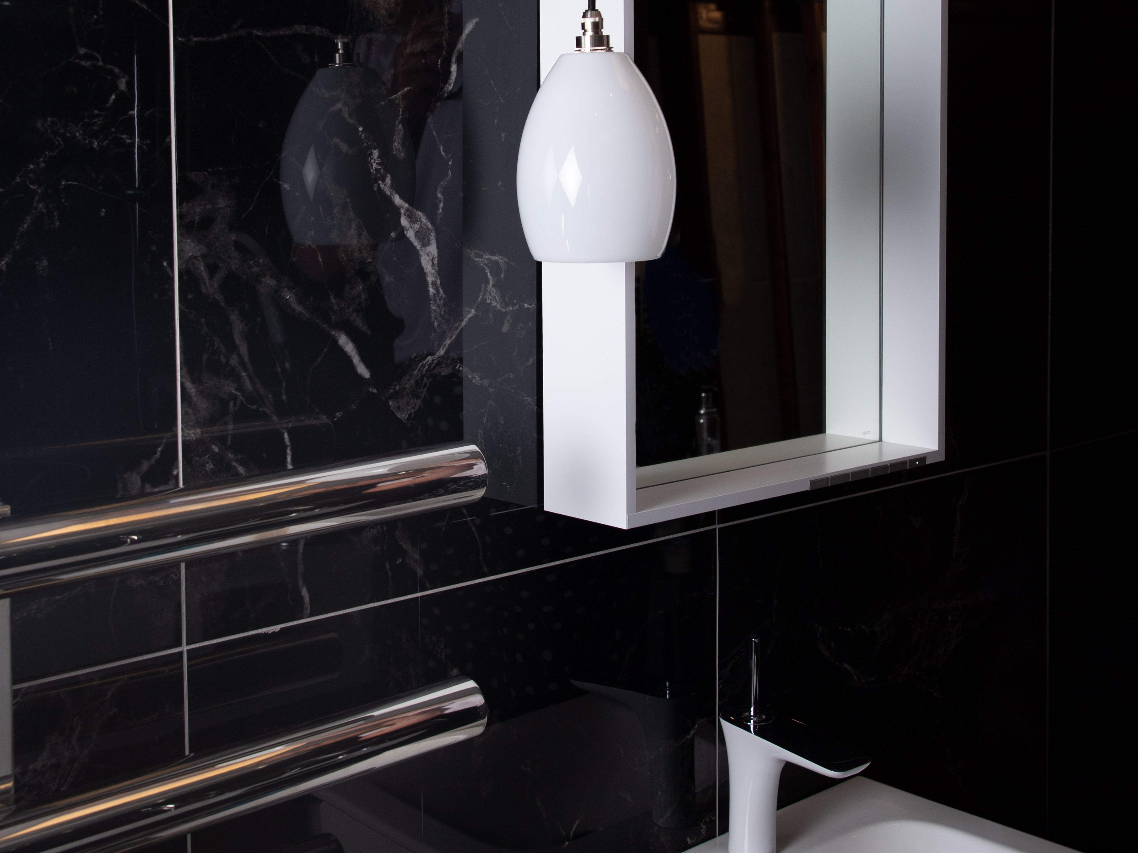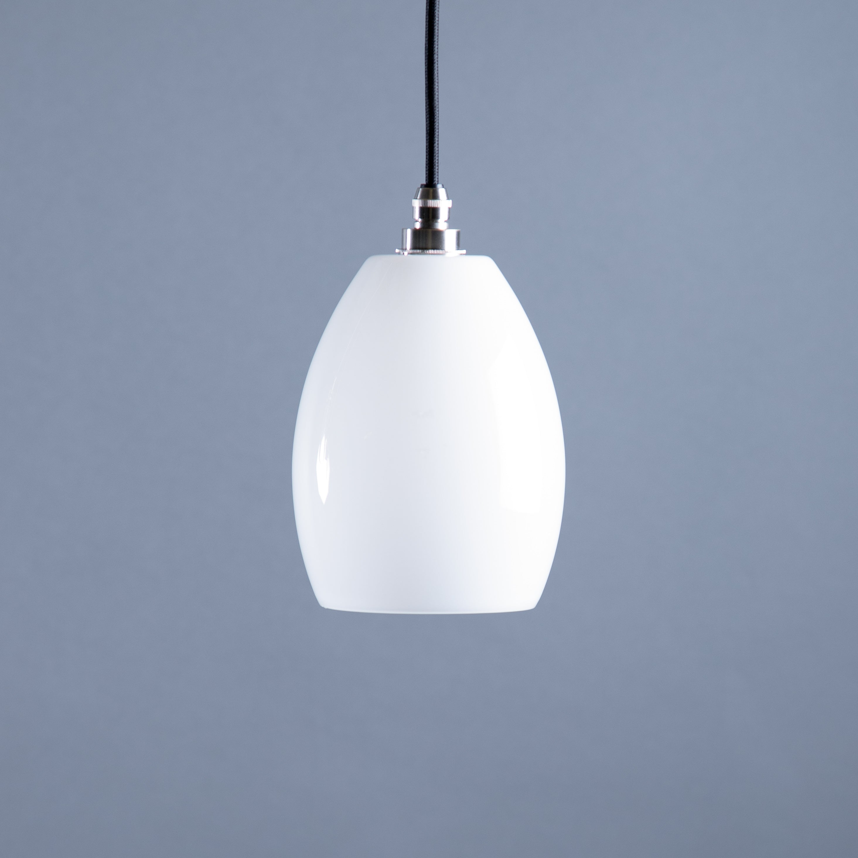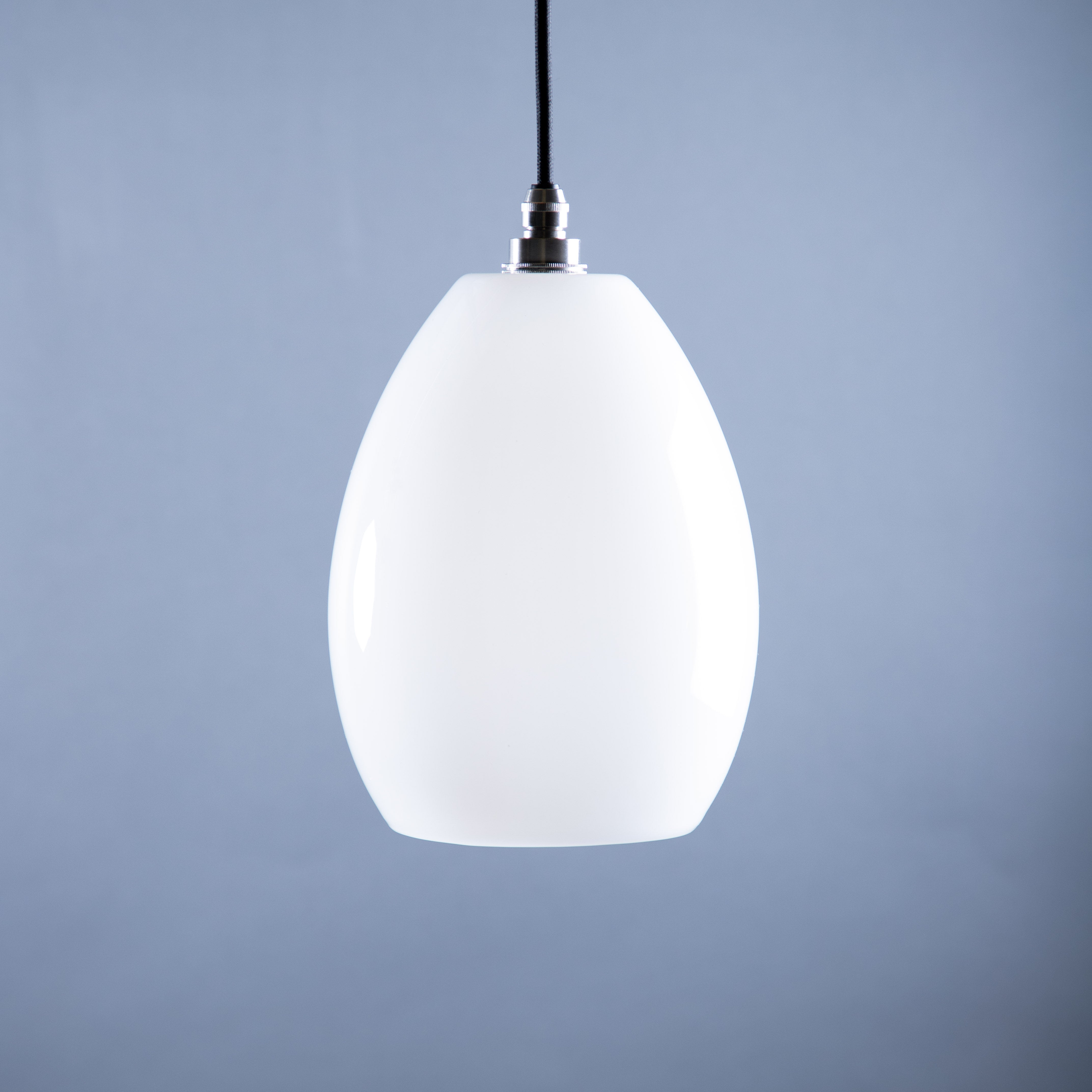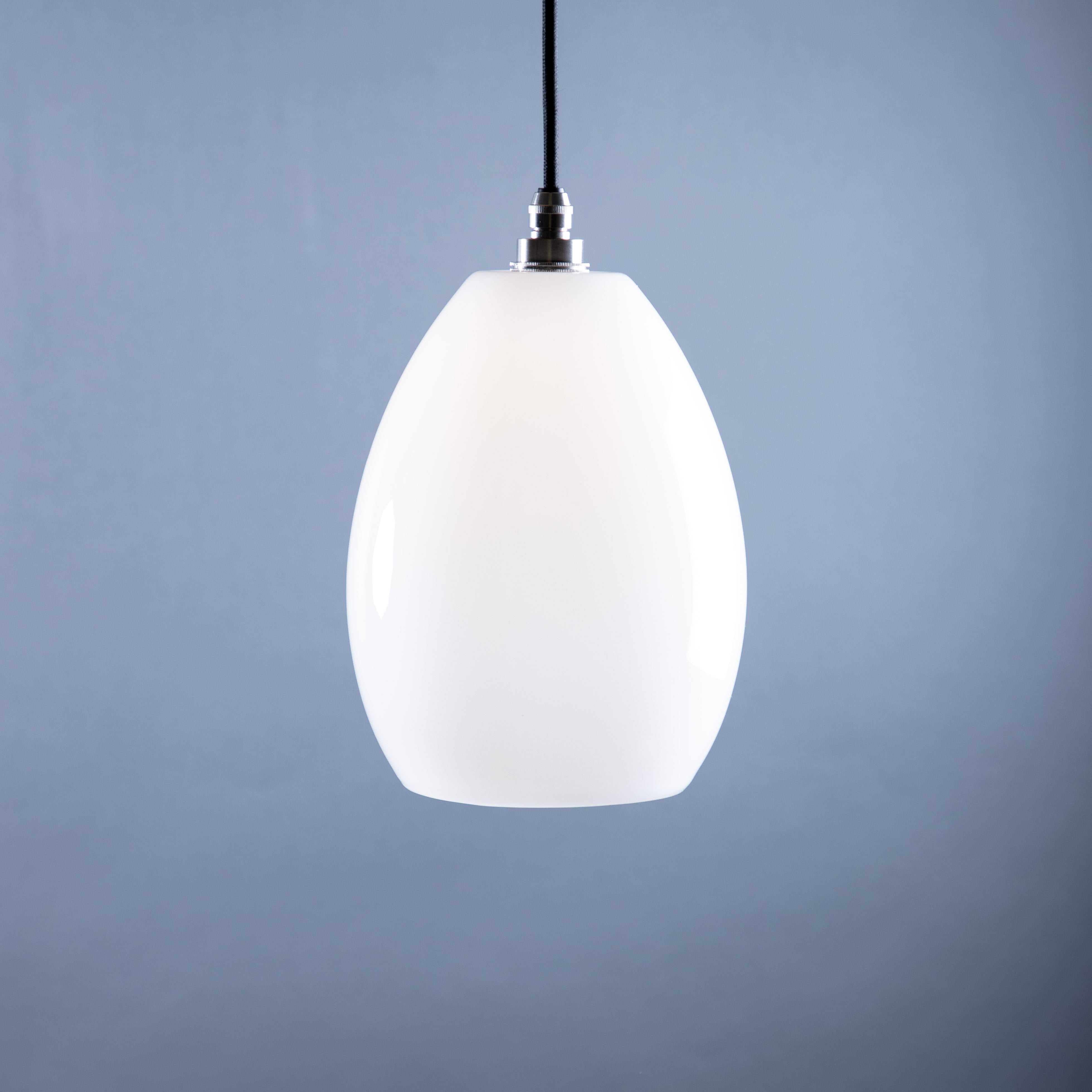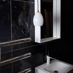 Glow designed, IP44 bathroom pendant lights. Our simple, classic semi-opaque opal white glass Jules shade creates an elegant, relaxing Glow in your bathroom. Handblown in the UK, the Jules is simply beautiful.