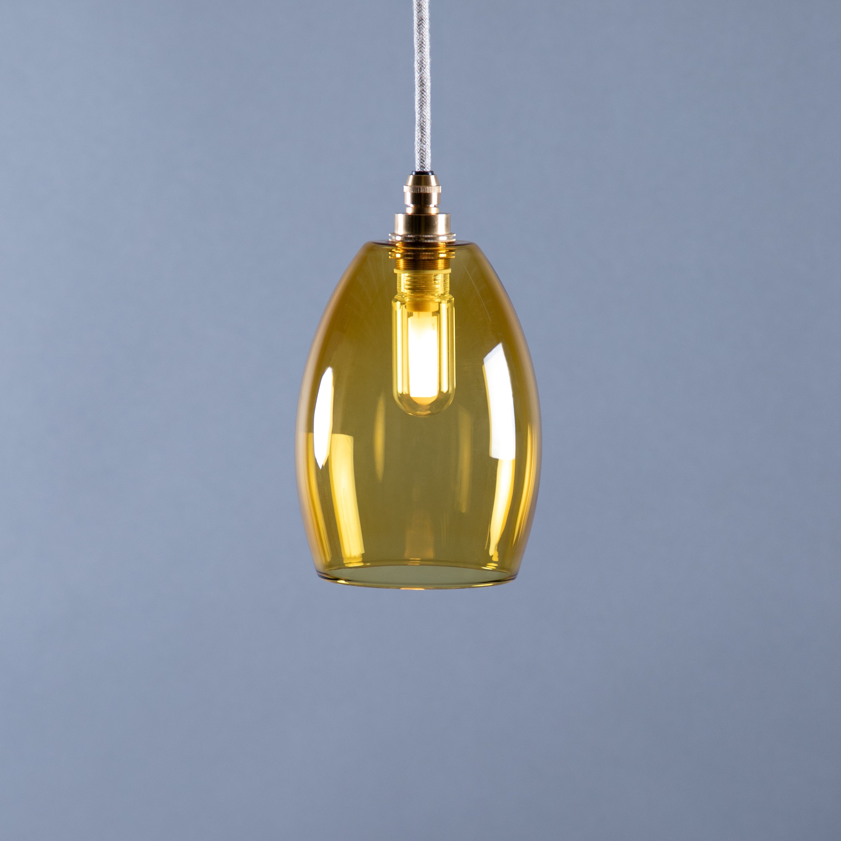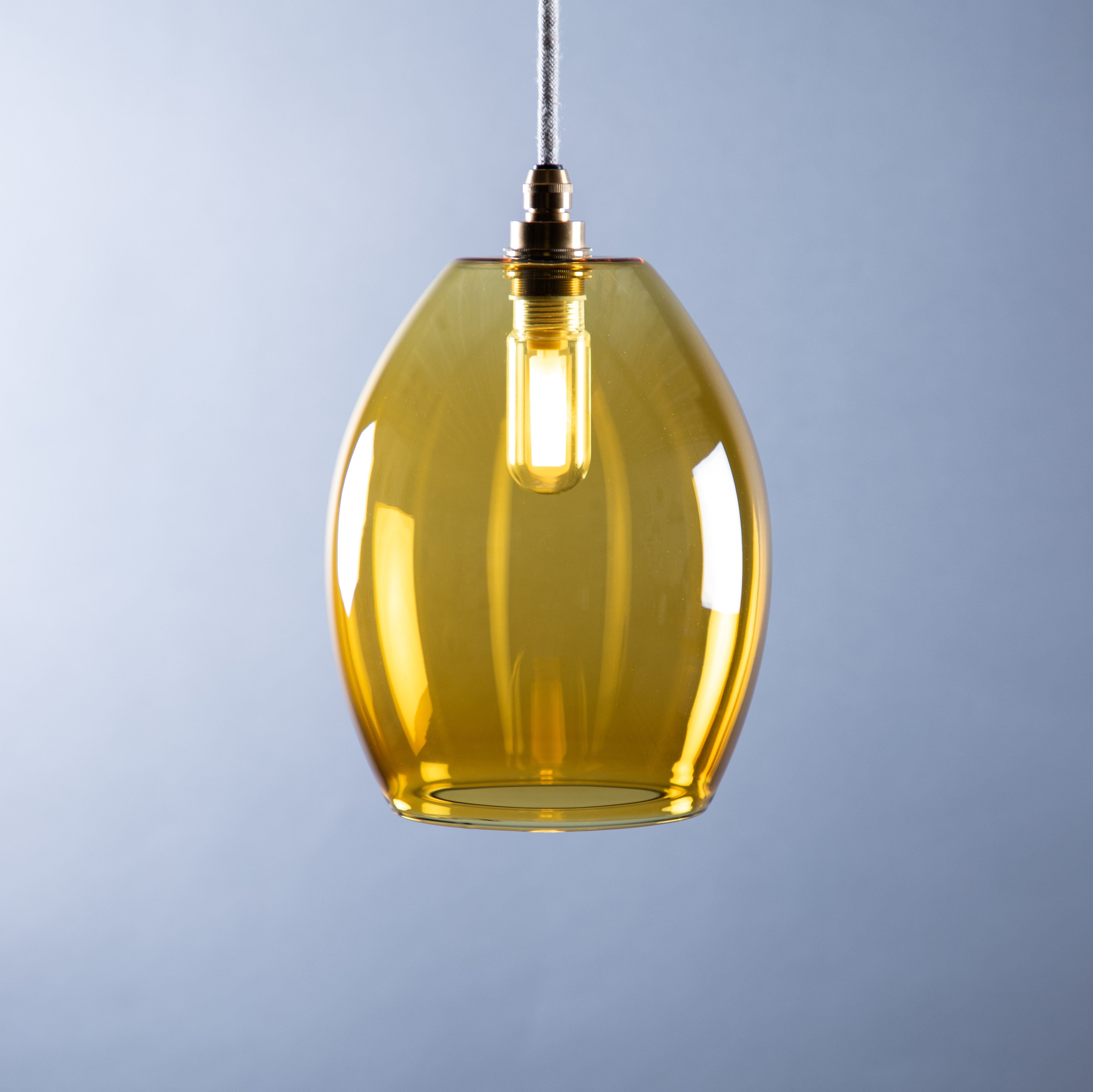 Glow designed, IP44 bathroom pendant lights. Our simple, classic yellow glass Jules shade creates an elegant, relaxing warm Glow in your bathroom. Handblown in the UK, the Jules is simply beautiful.
