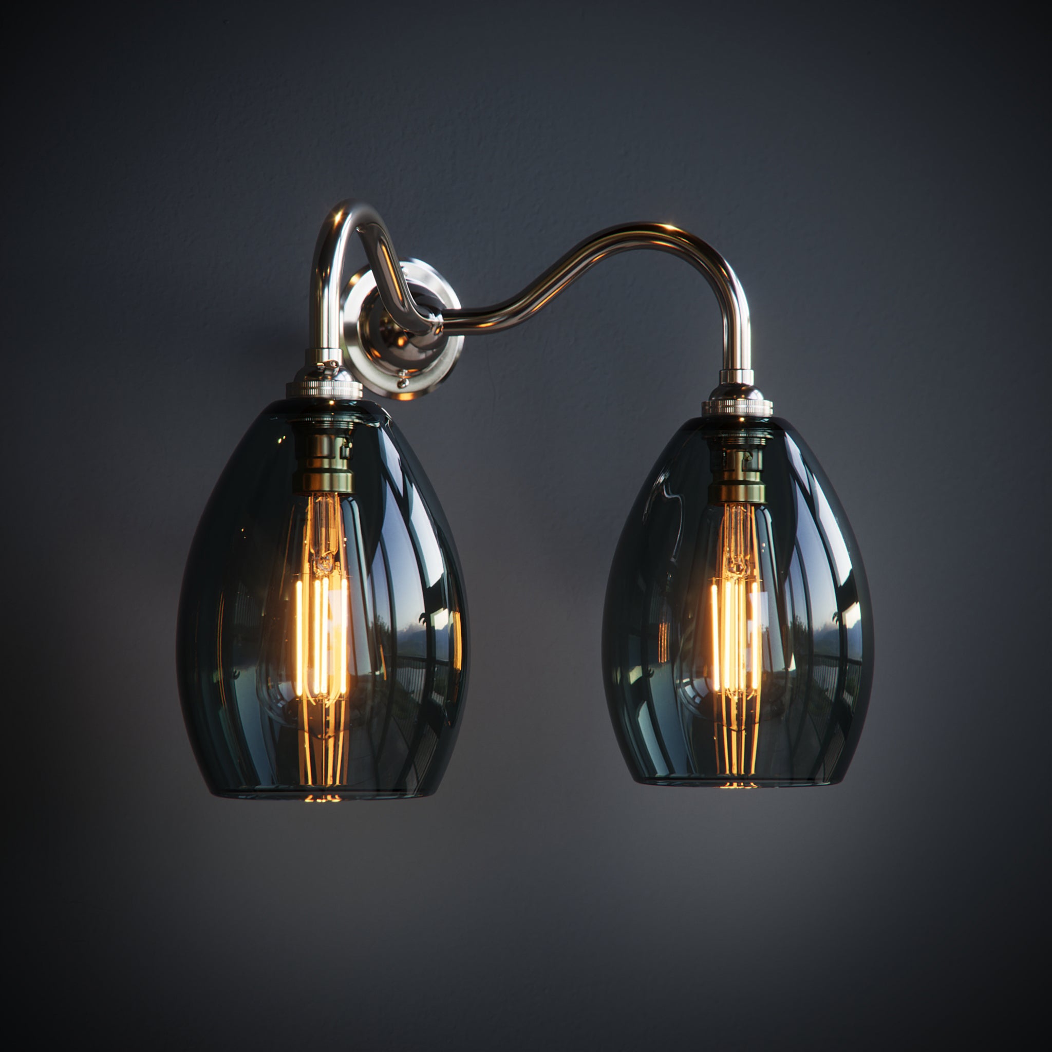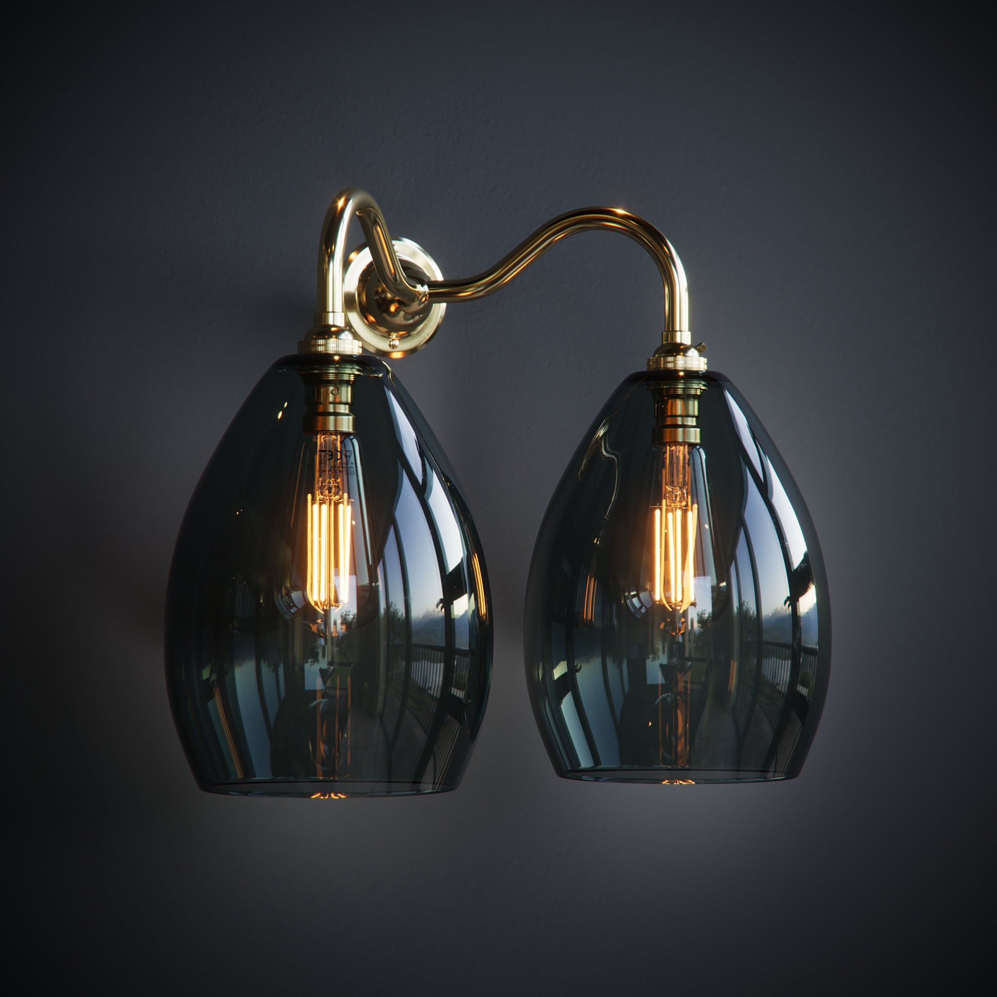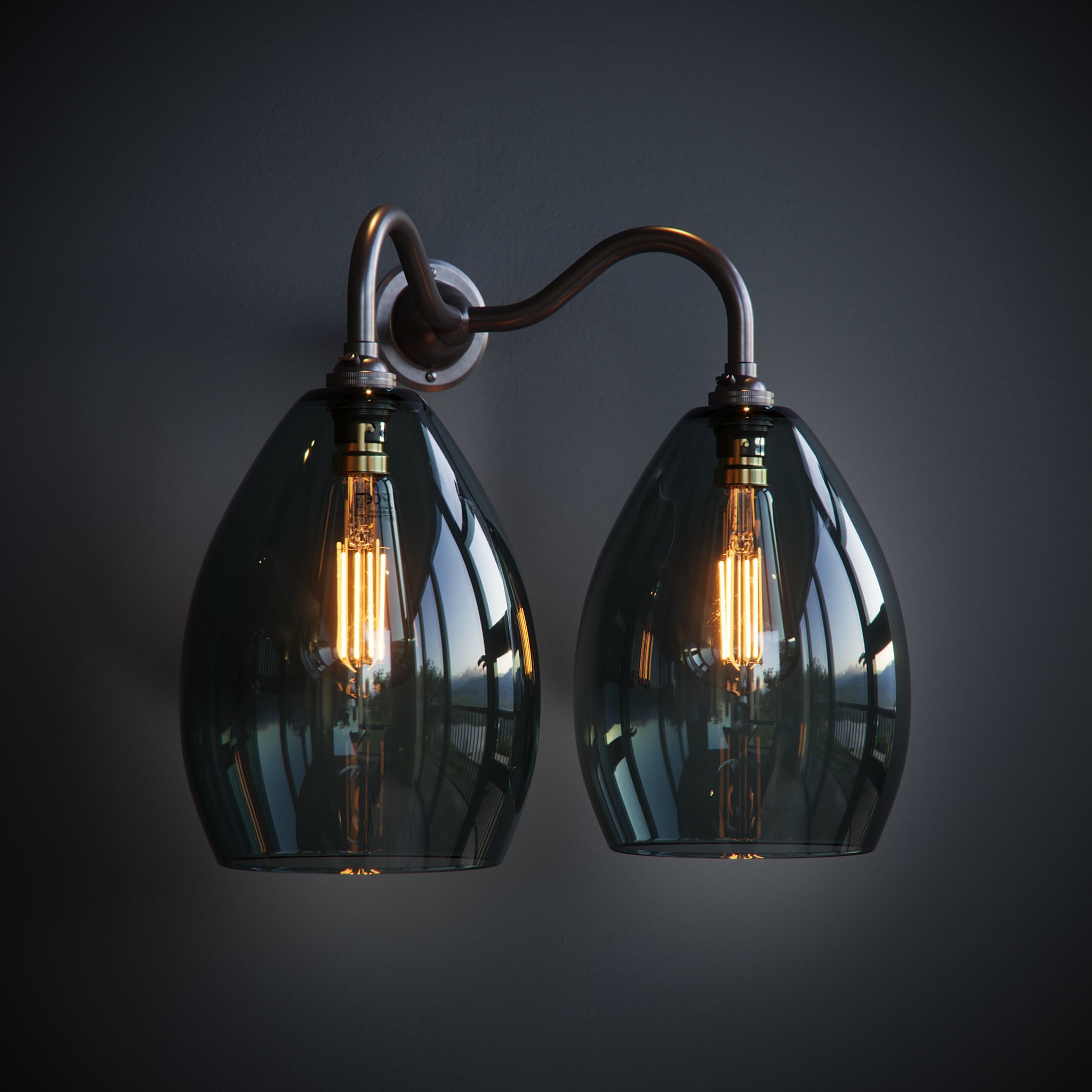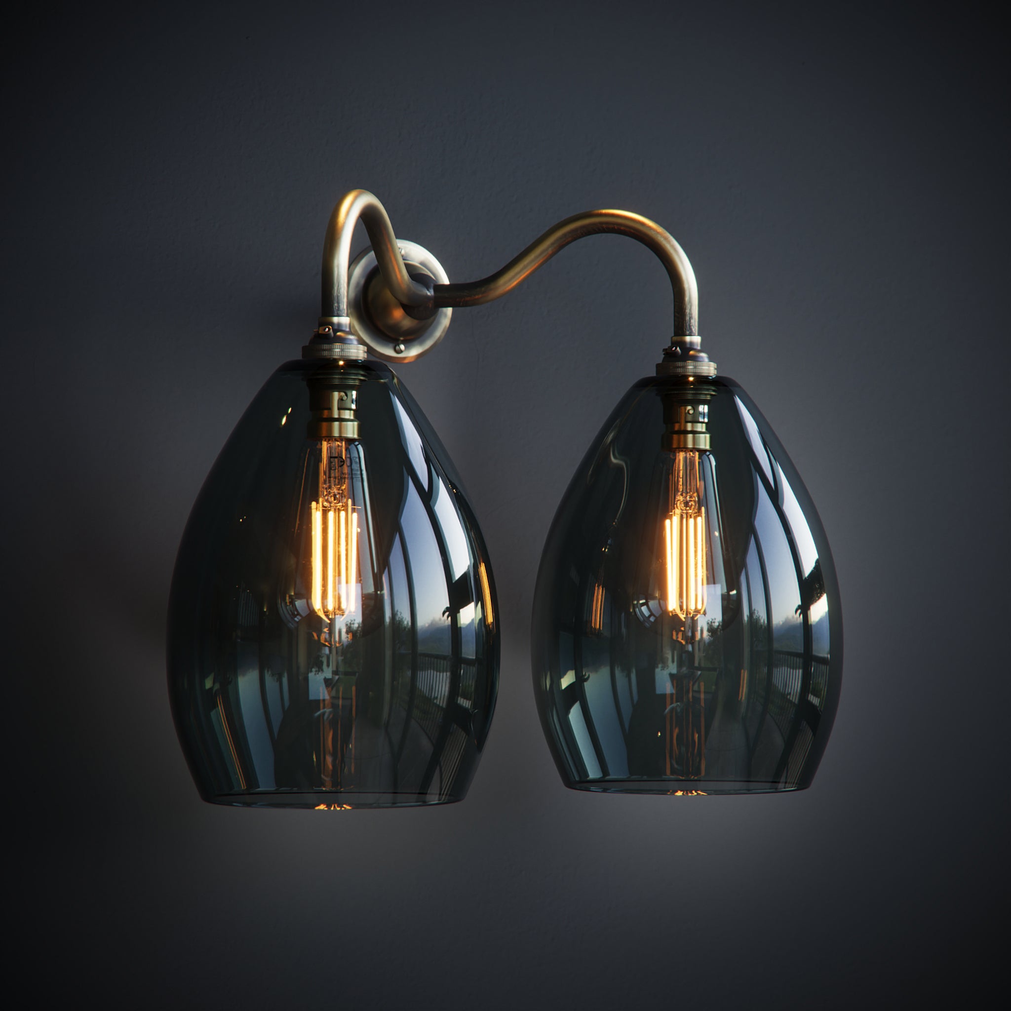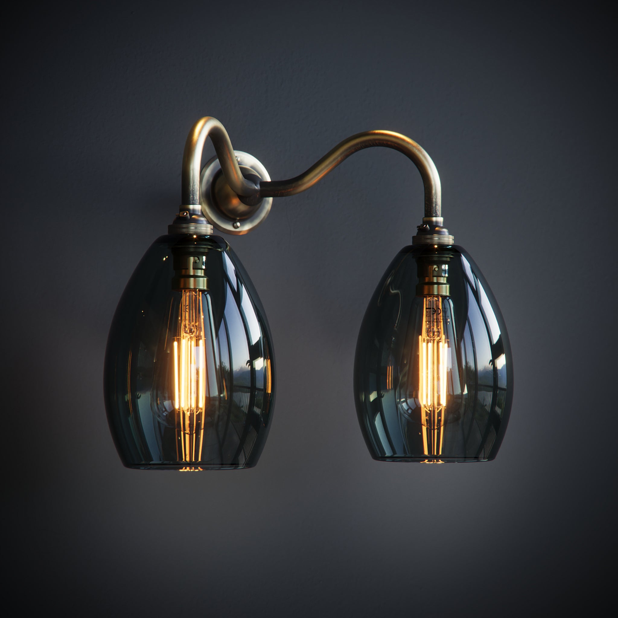 Smoked Jules Grey Glass Double Wall Lights.