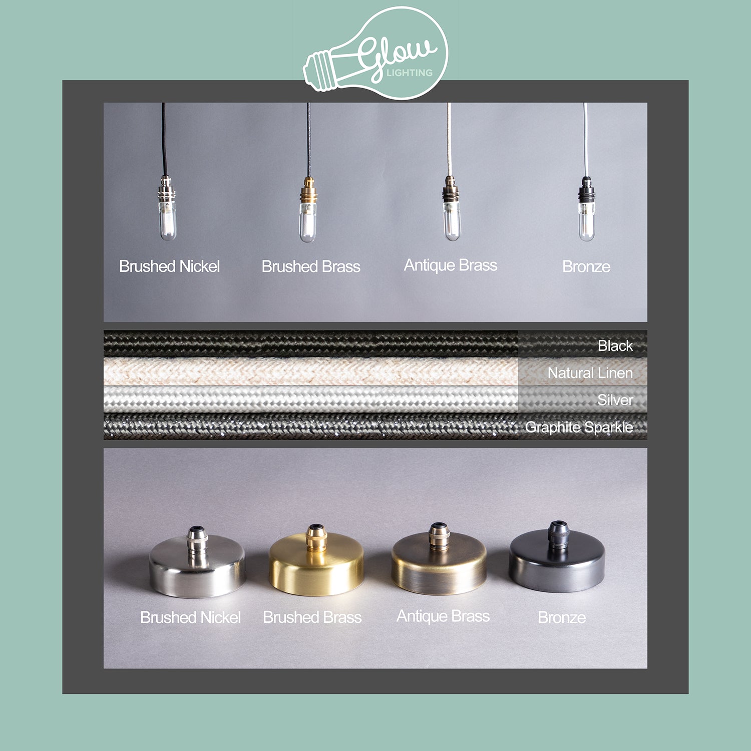 Choose from Brushed Brass, Brushed Nickel, Antique Brass or Bronze metal finishes, and a range of cable colours.
