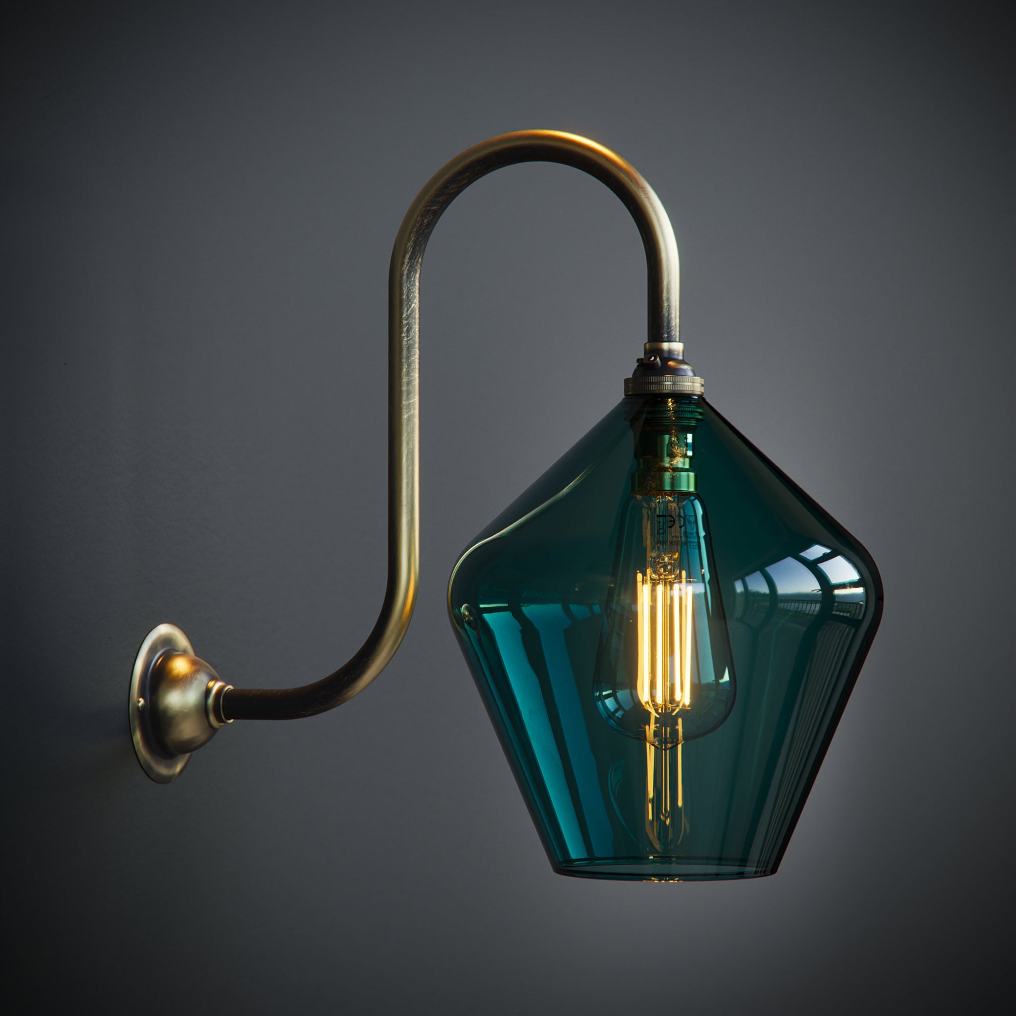 Ideal for soft mood lighting or functional illumination, the Olive Swan Arm Wall Light brings handcrafted British design and vibrant coloured glass into your home.
