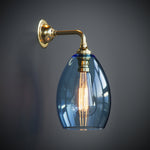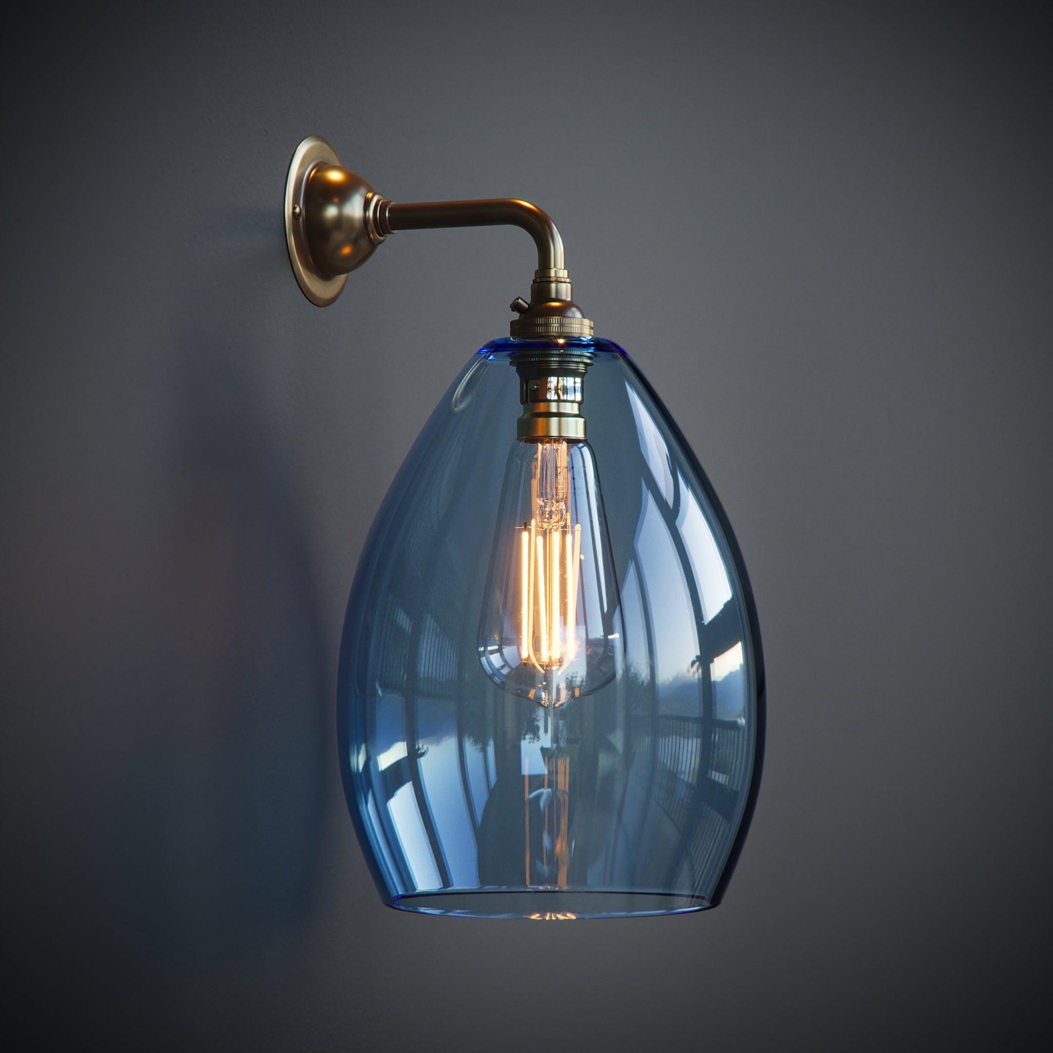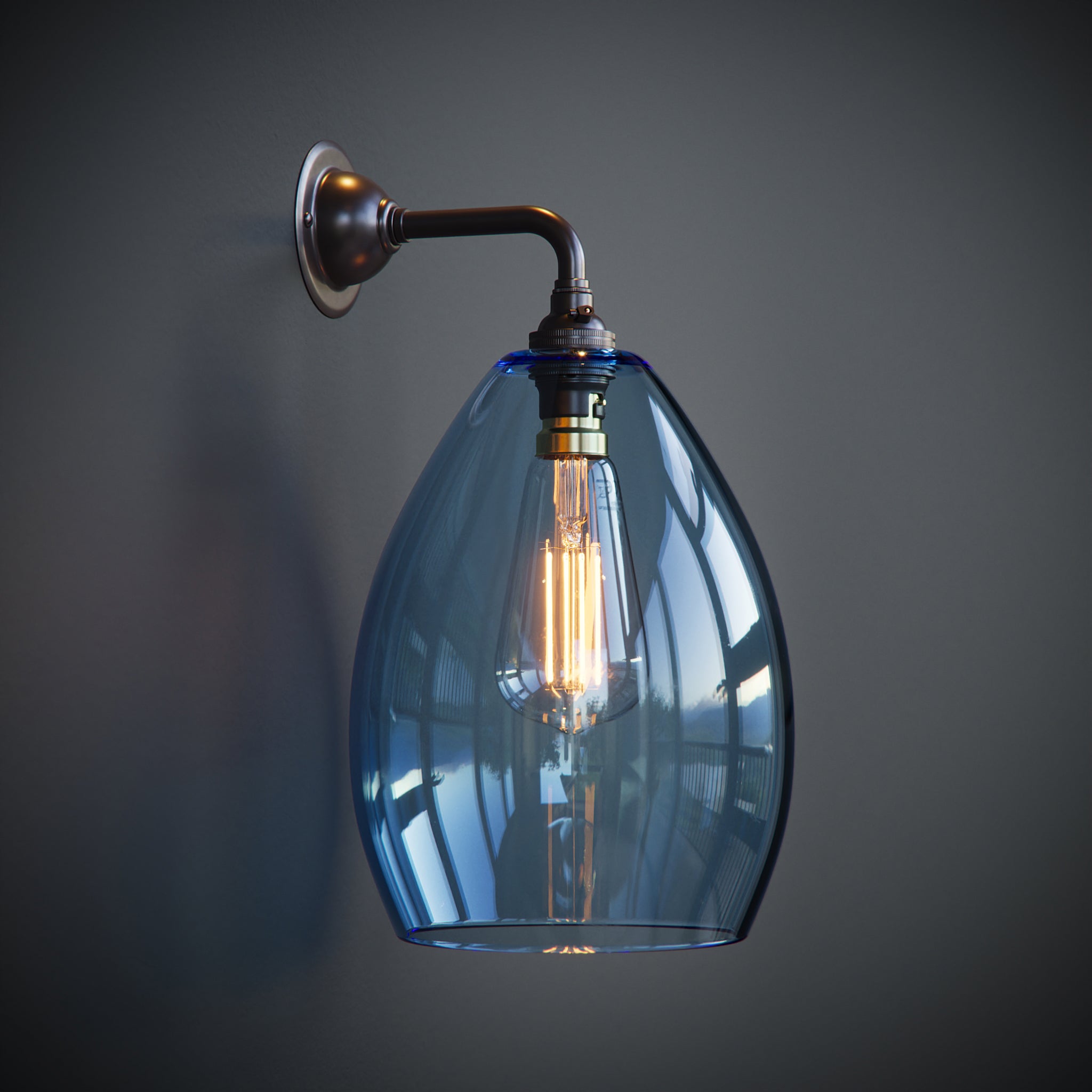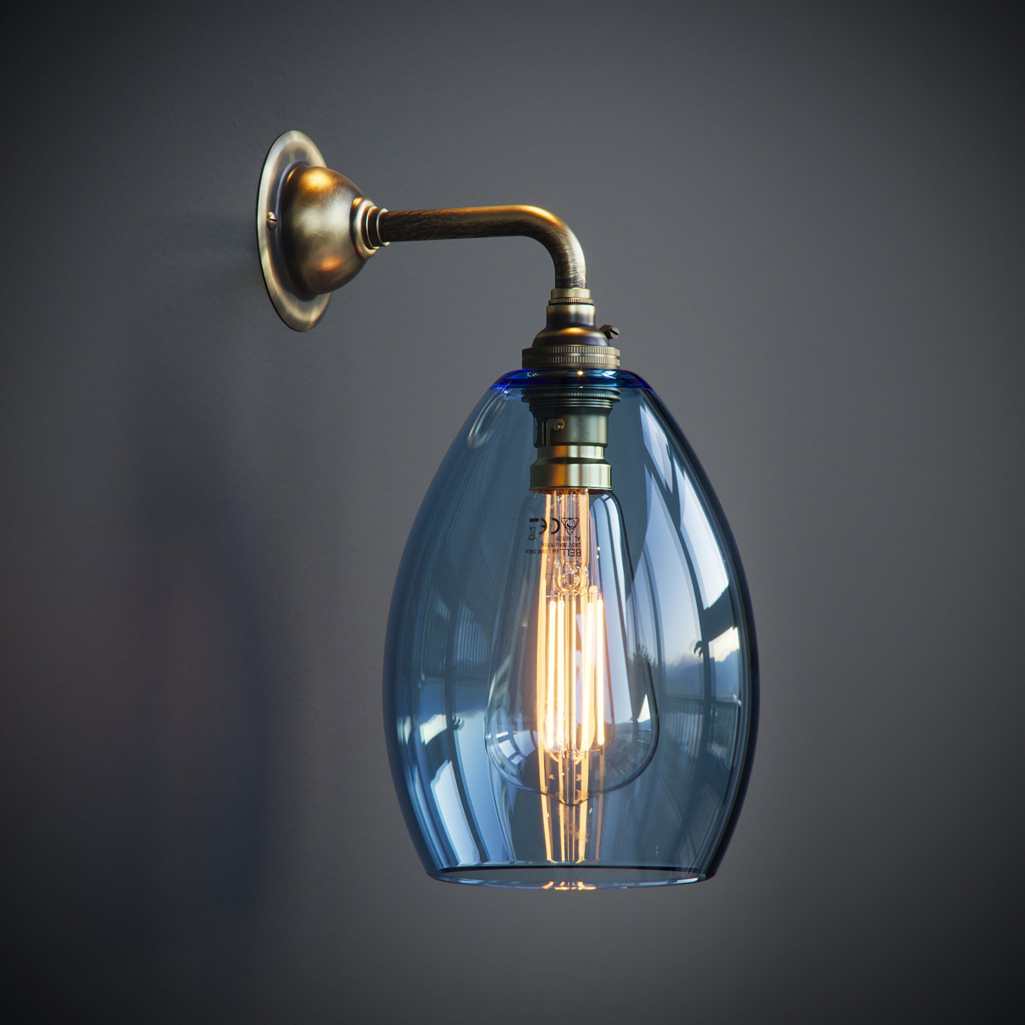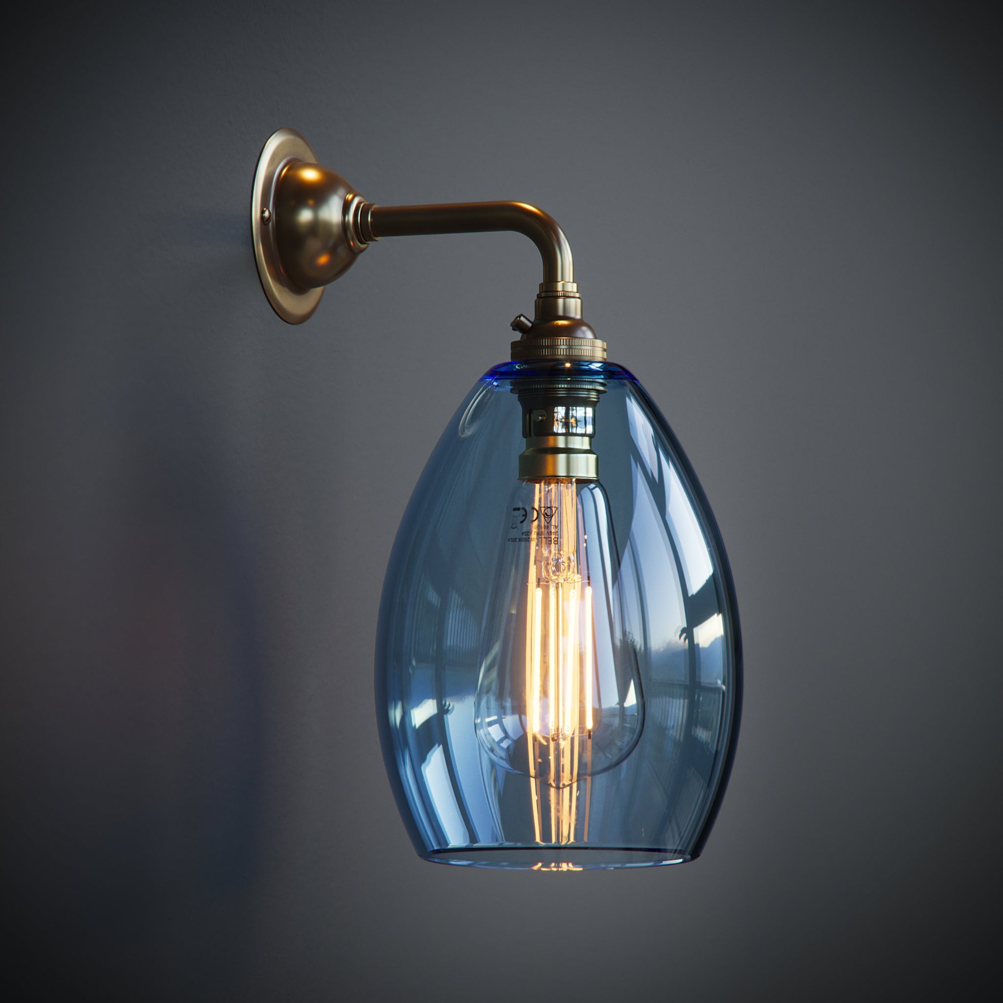 The contemporary straight arm has a shorter projection than our classic curve arm and finished with a hand blown glass shade, crafted with precision in pale blue glass, perfect to add a pop of personality to your space.