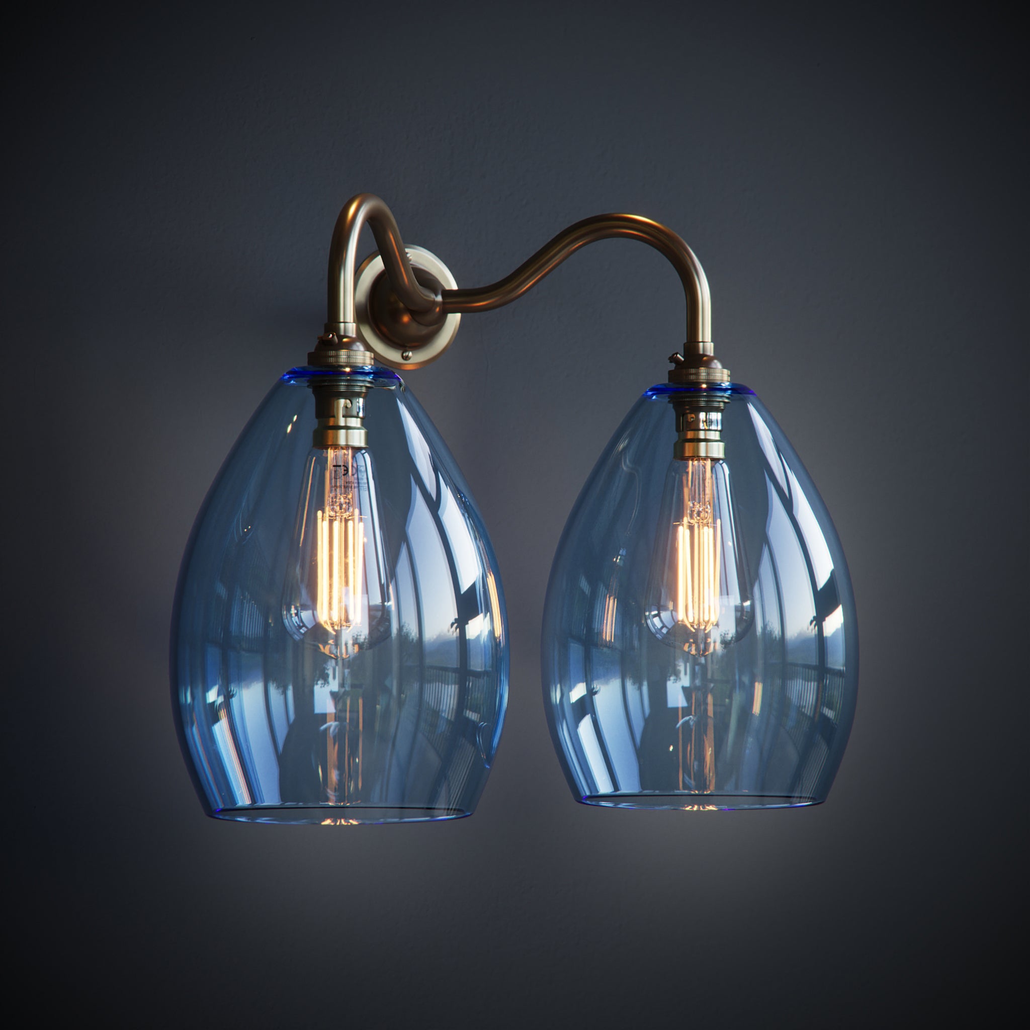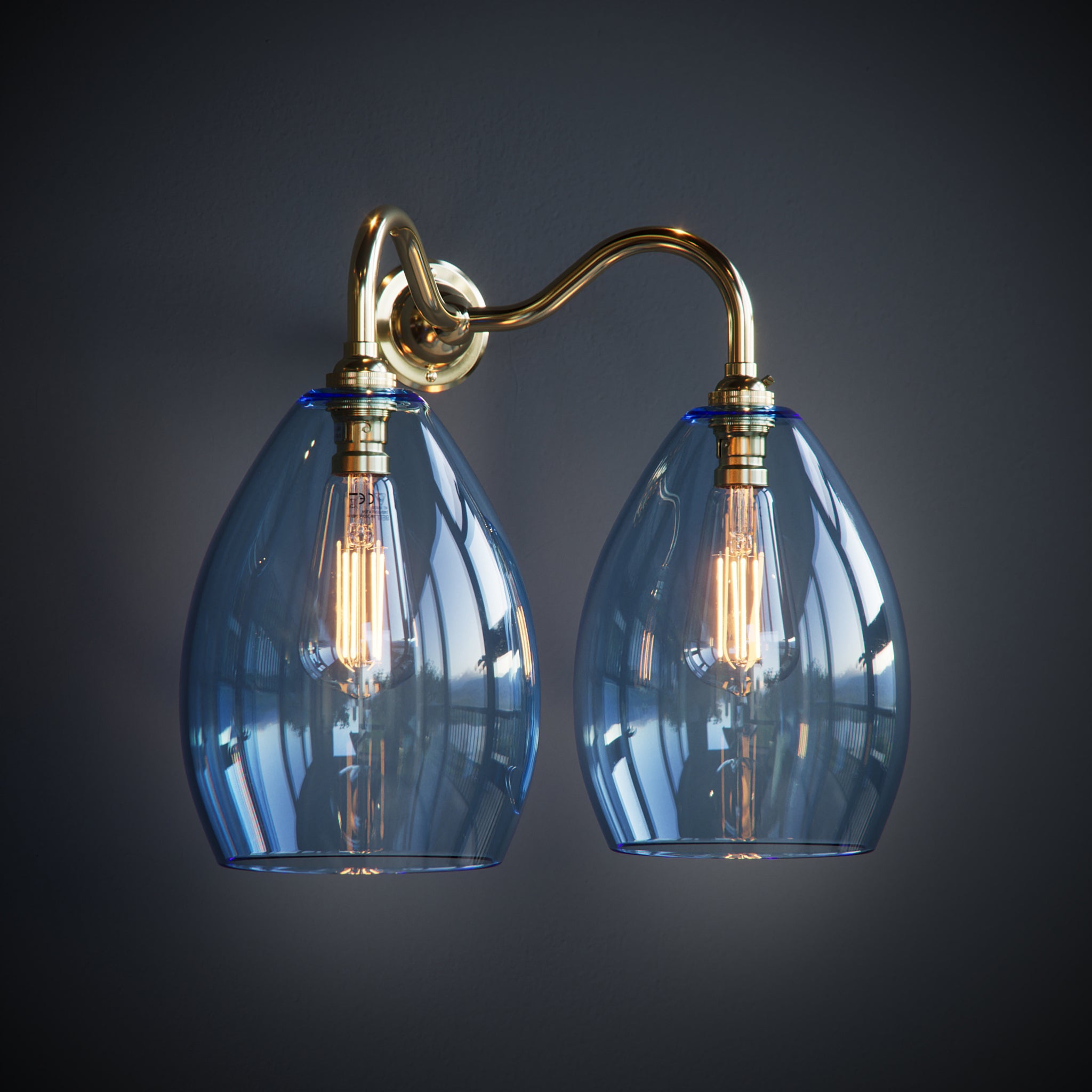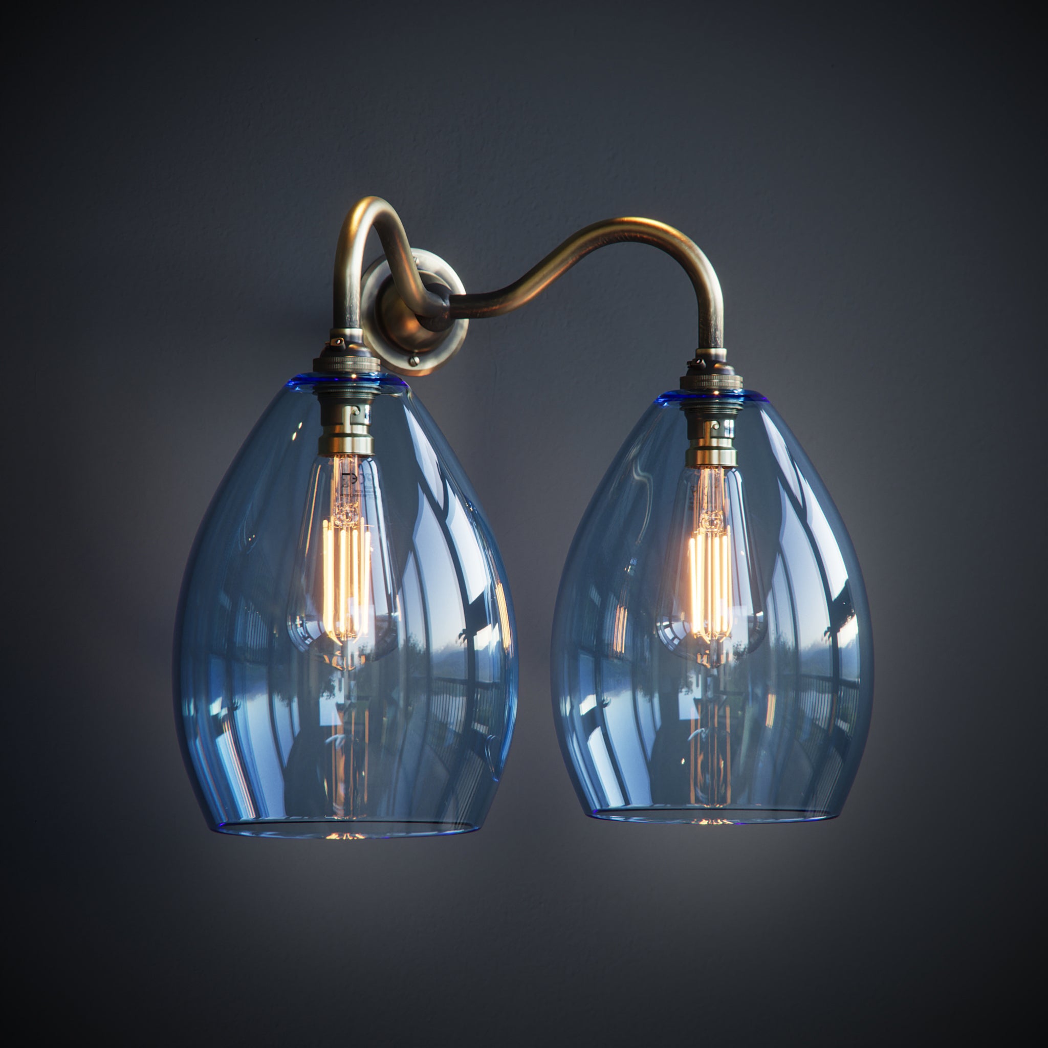 Our Jules Pale Blue Glass Double Wall Lights adds a touch of colour to your room.