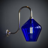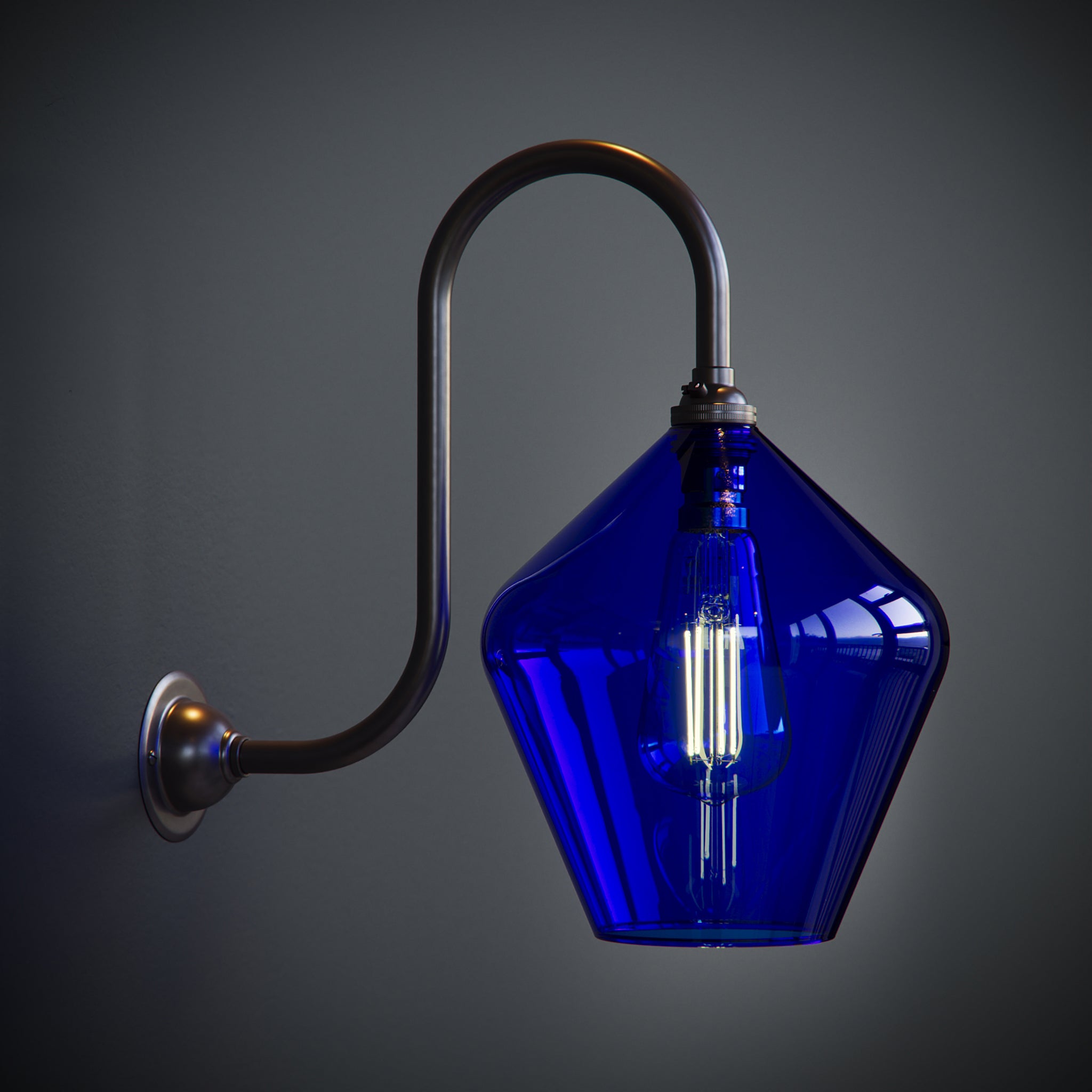 Our Swan Neck Olive Dark Blue Glass Wall Light is crafted from hand-blown dark blue glass, these lights are perfect for adding character to any space.
