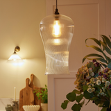 The Fine Ribbed Ned pendant light adds gentle texture and warmth to your space. Handblown in North Yorkshire, the fine ribbed glass catches the light beautifully, creating a soft, diffused glow that works perfectly in kitchens, dining areas and living spaces.