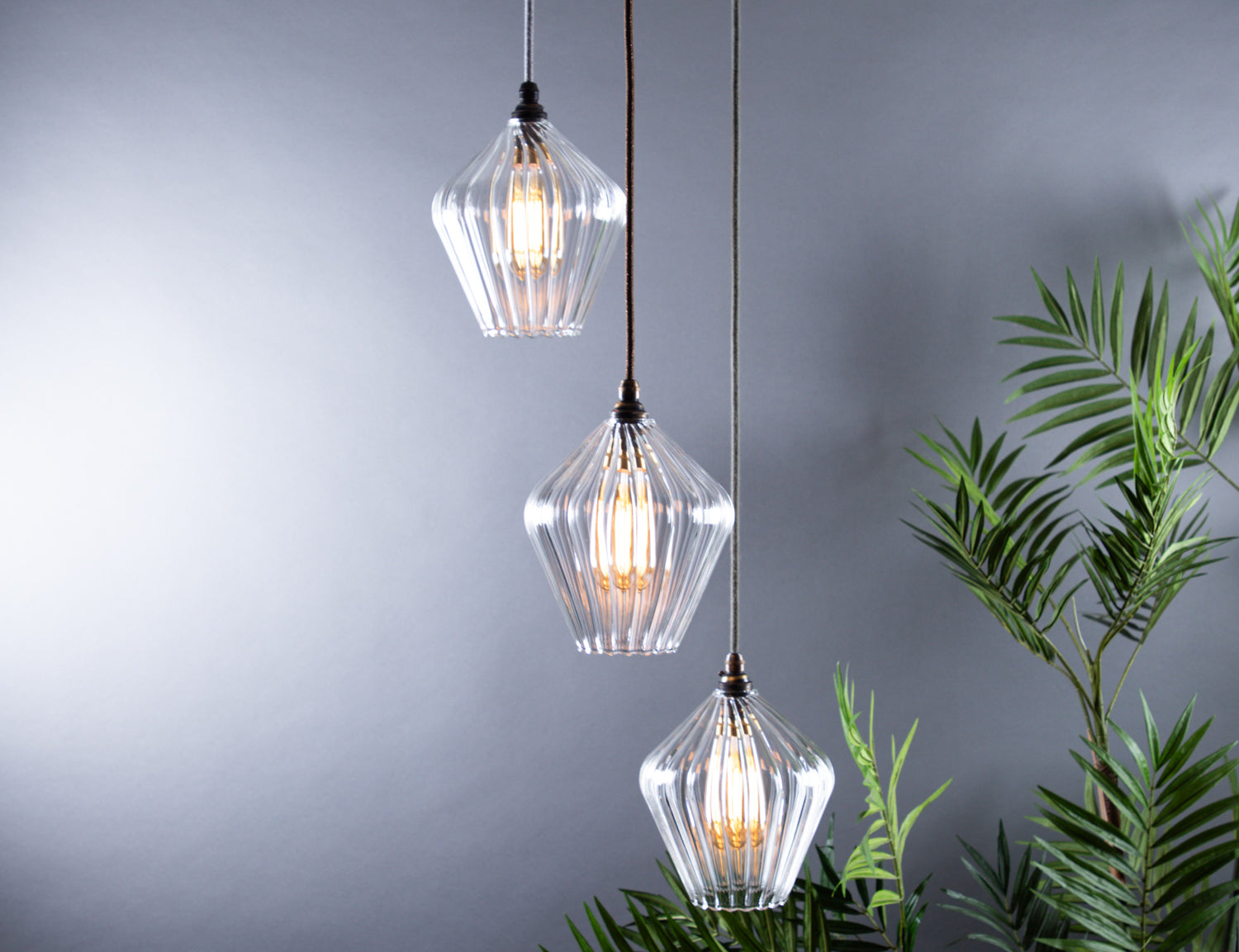 Elevate your interiors with Glow Lighting’s Clear Ribbed Glass Pendant collection, where timeless craftsmanship meets modern elegance. Each pendant is meticulously handblown in Britain, combining ribbed glass texture with contemporary silhouettes for a striking lighting statement.
