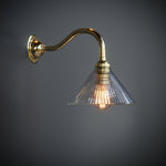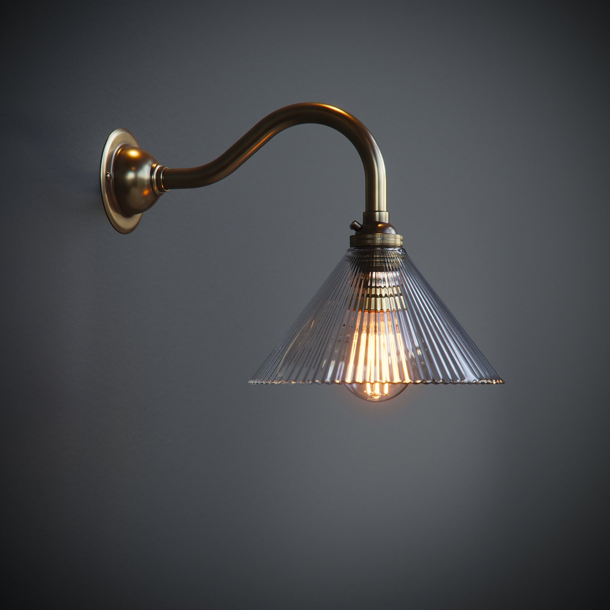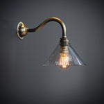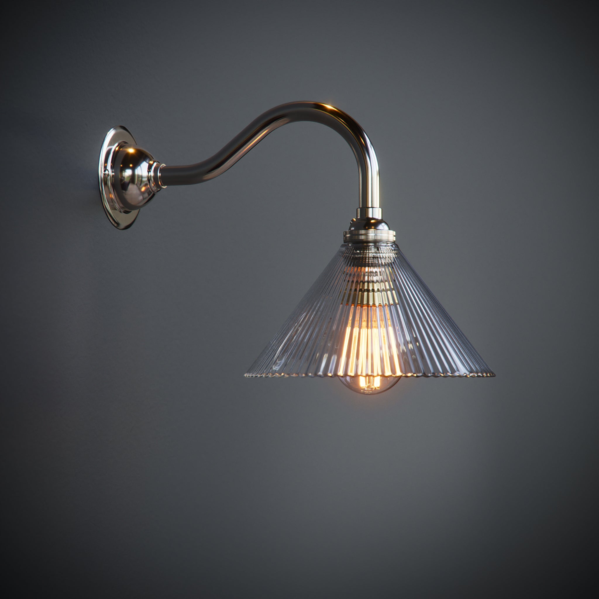 Introduce classic style to your home with the Grace wall light, featuring a fine ribbed clear glass coolie shade on a timeless curved arm bracket. Each shade is handblown in Britain with care, giving every piece character and quality.
