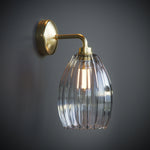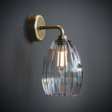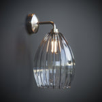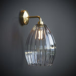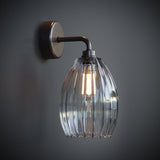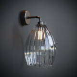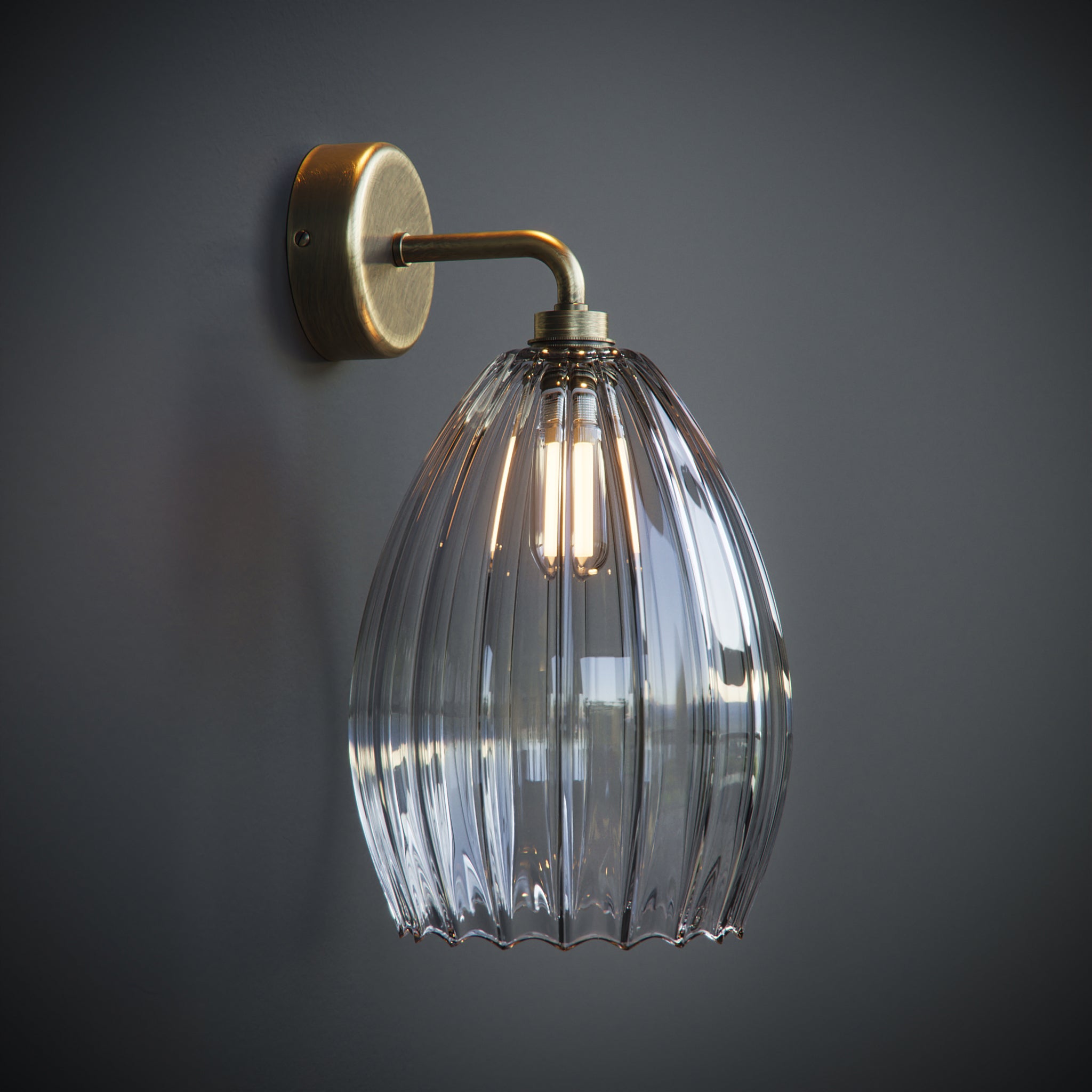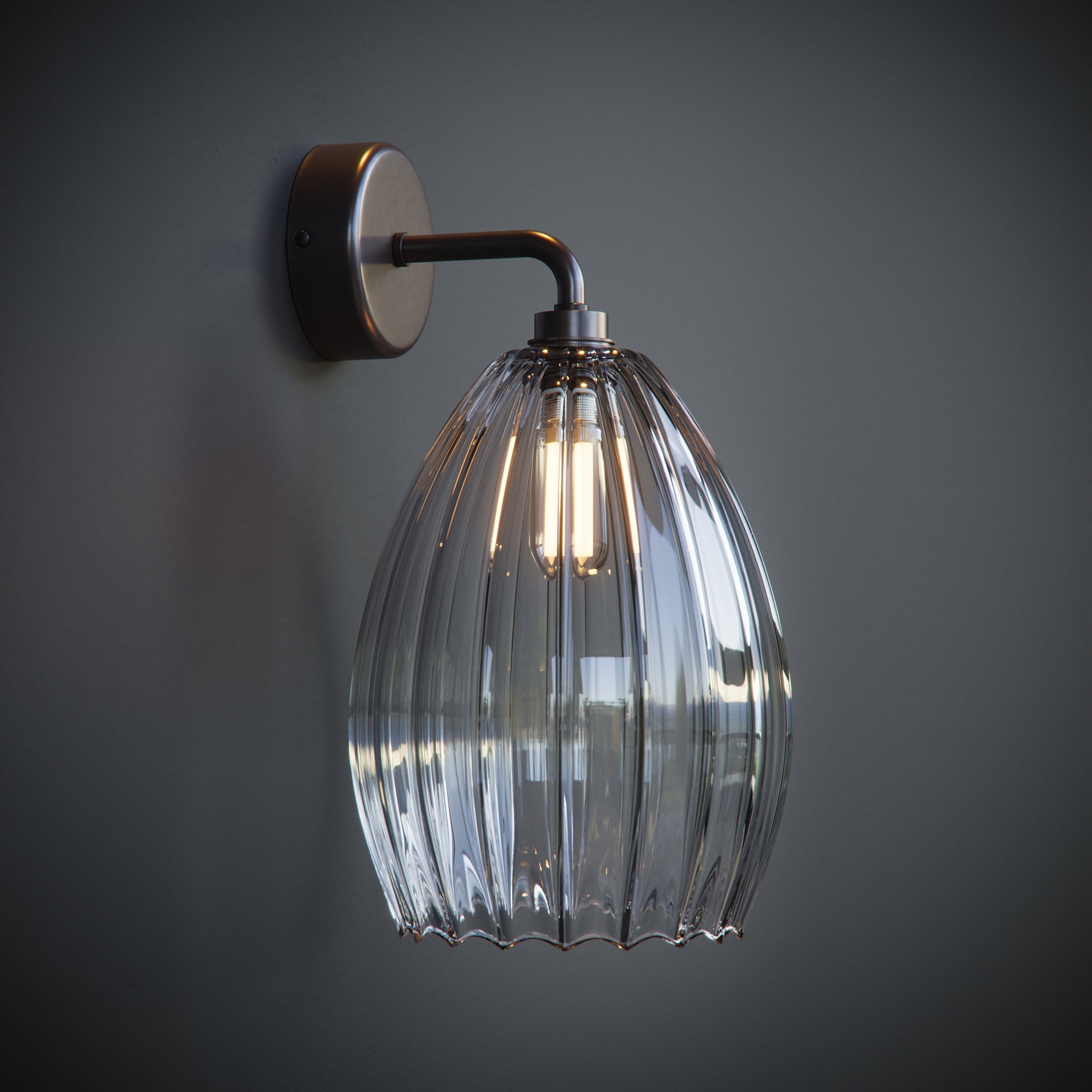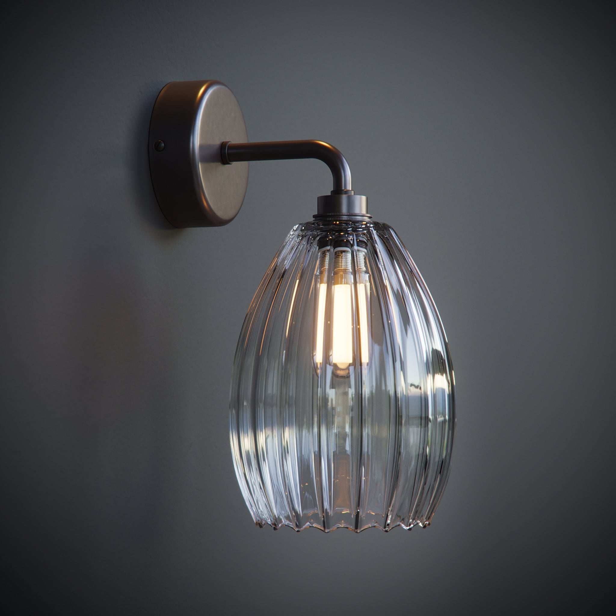 Glow designed, IP44 bathroom wall lights. Our Jules ribbed clear glass shade is handblown in the UK.