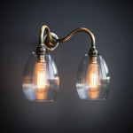 With two elegant glass shades set on a traditional curved arm design, this wall light offers double the brightness, ideal for larger walls, generous spaces, or rooms that need an extra touch of light.