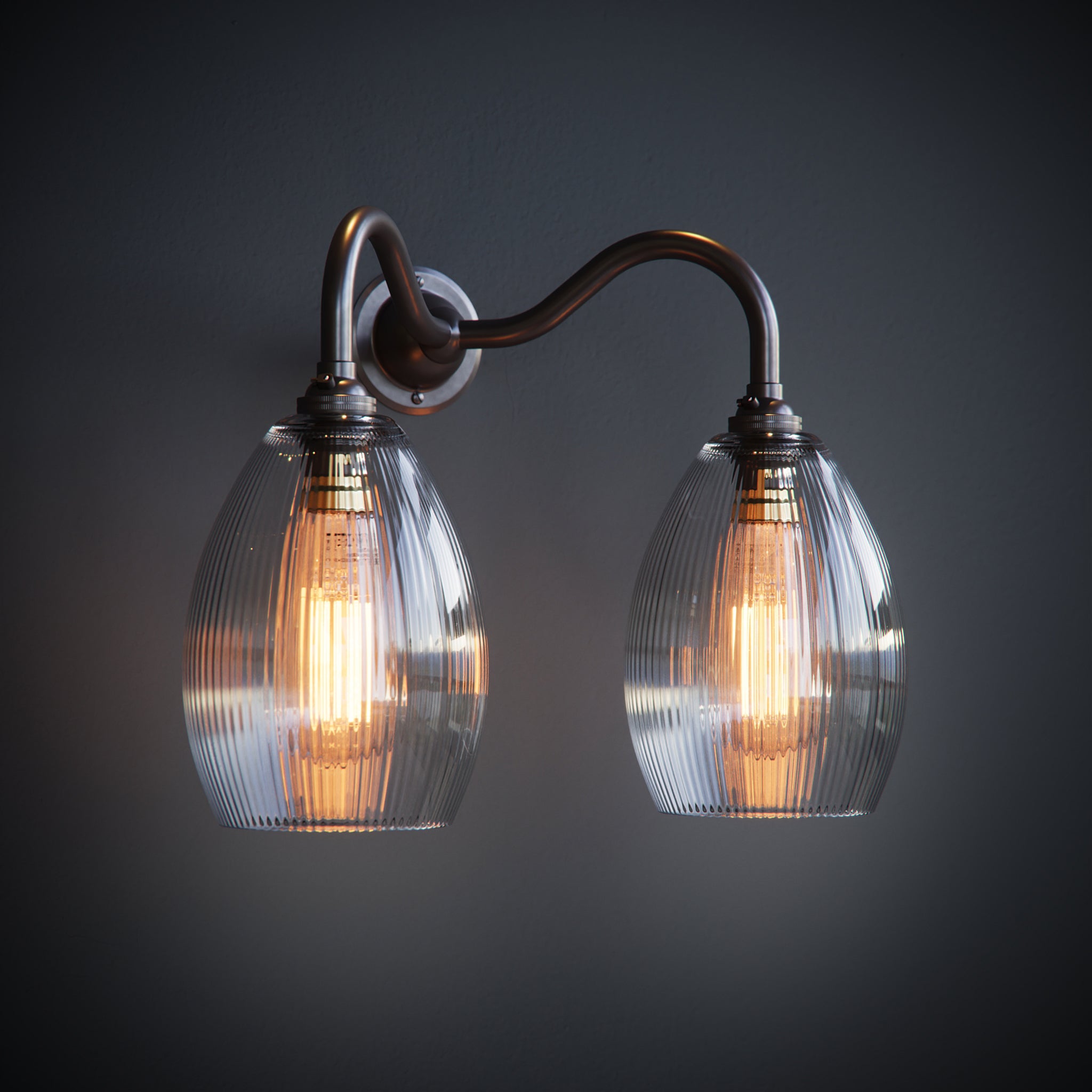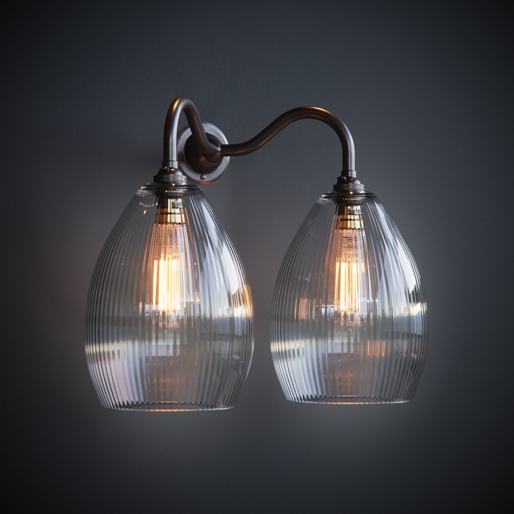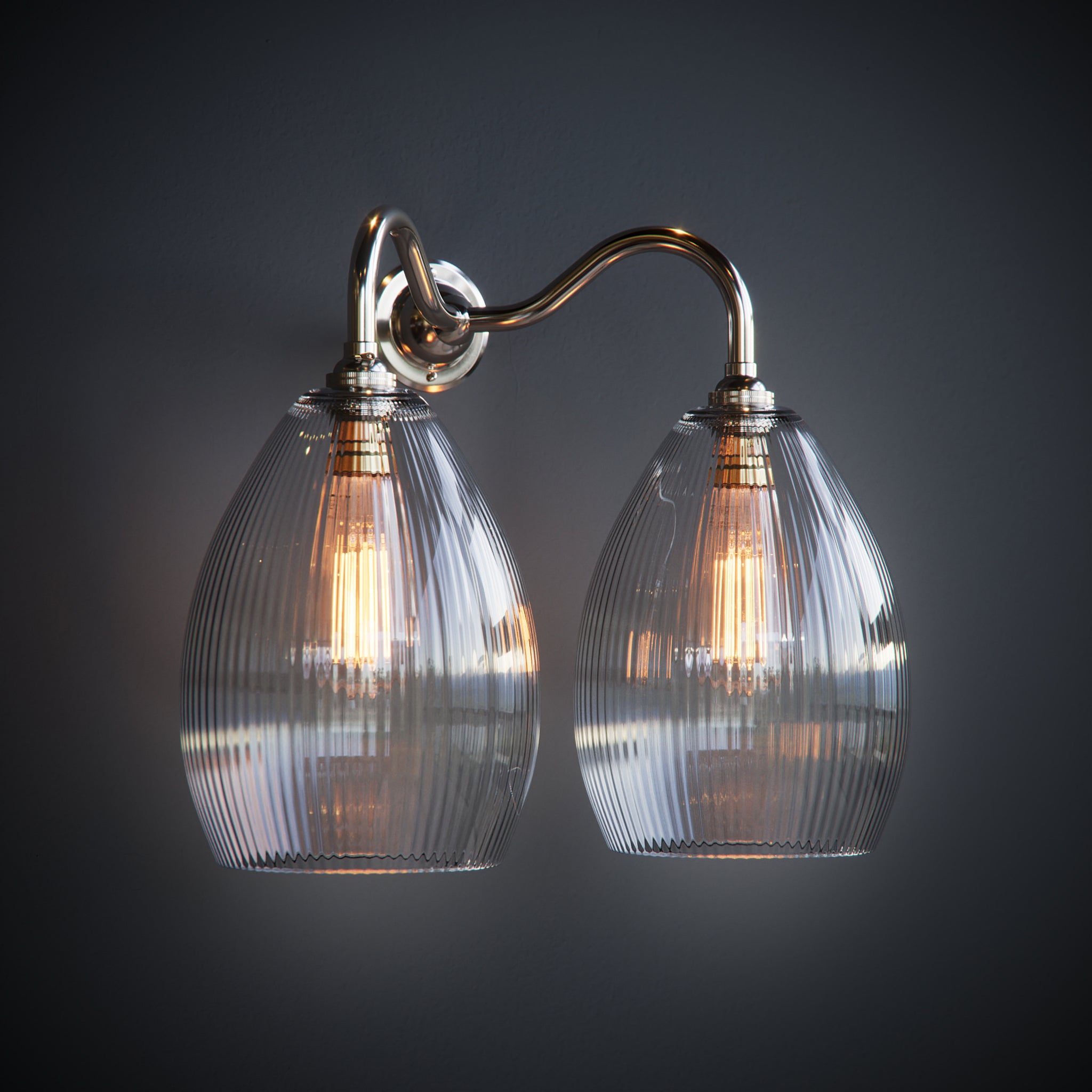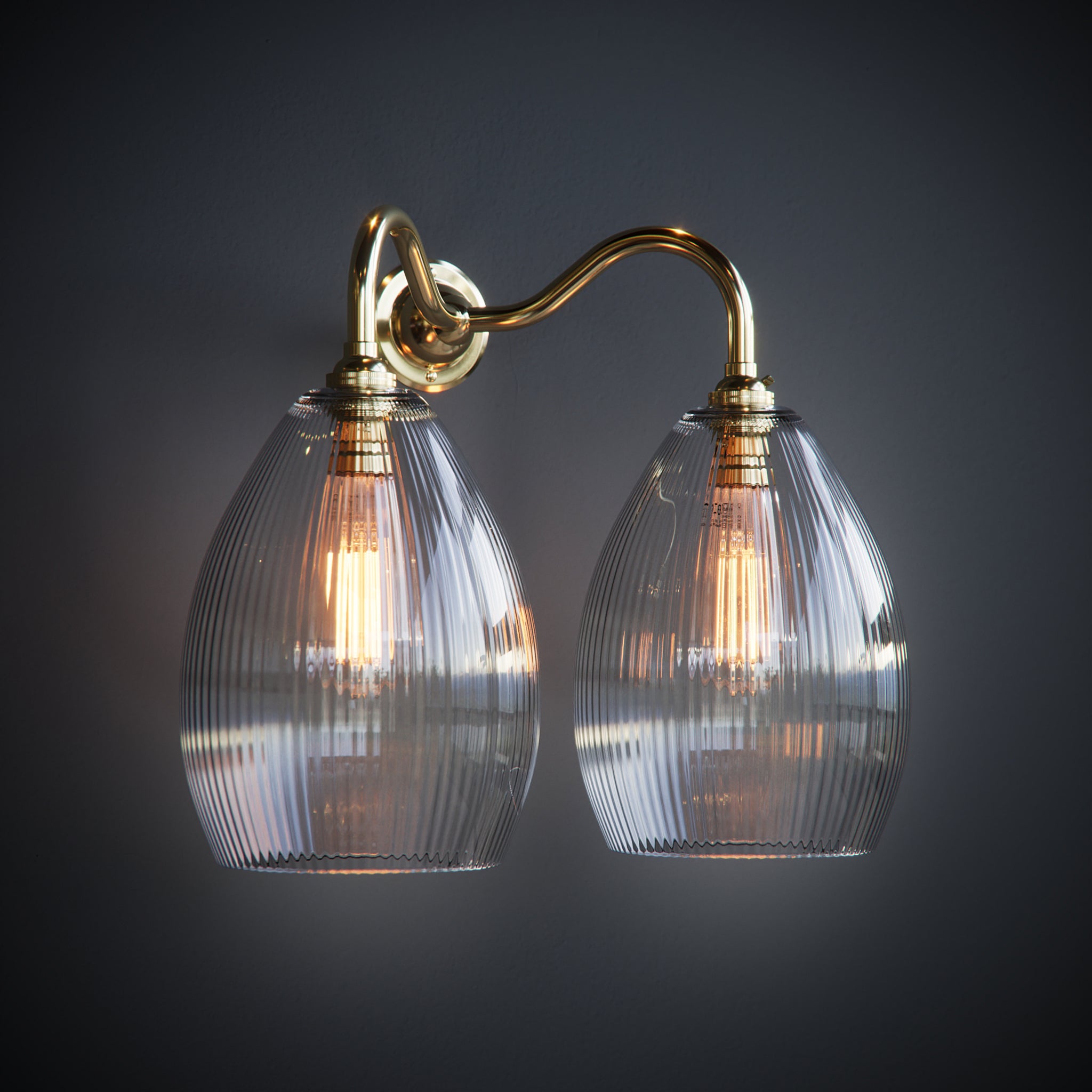 Bring classic style and subtle texture to your home with the Jules Fine Ribbed Glass Double Wall Light. Handblown in our Yorkshire studio, each ribbed glass shade is individually crafted, giving every piece its own character.