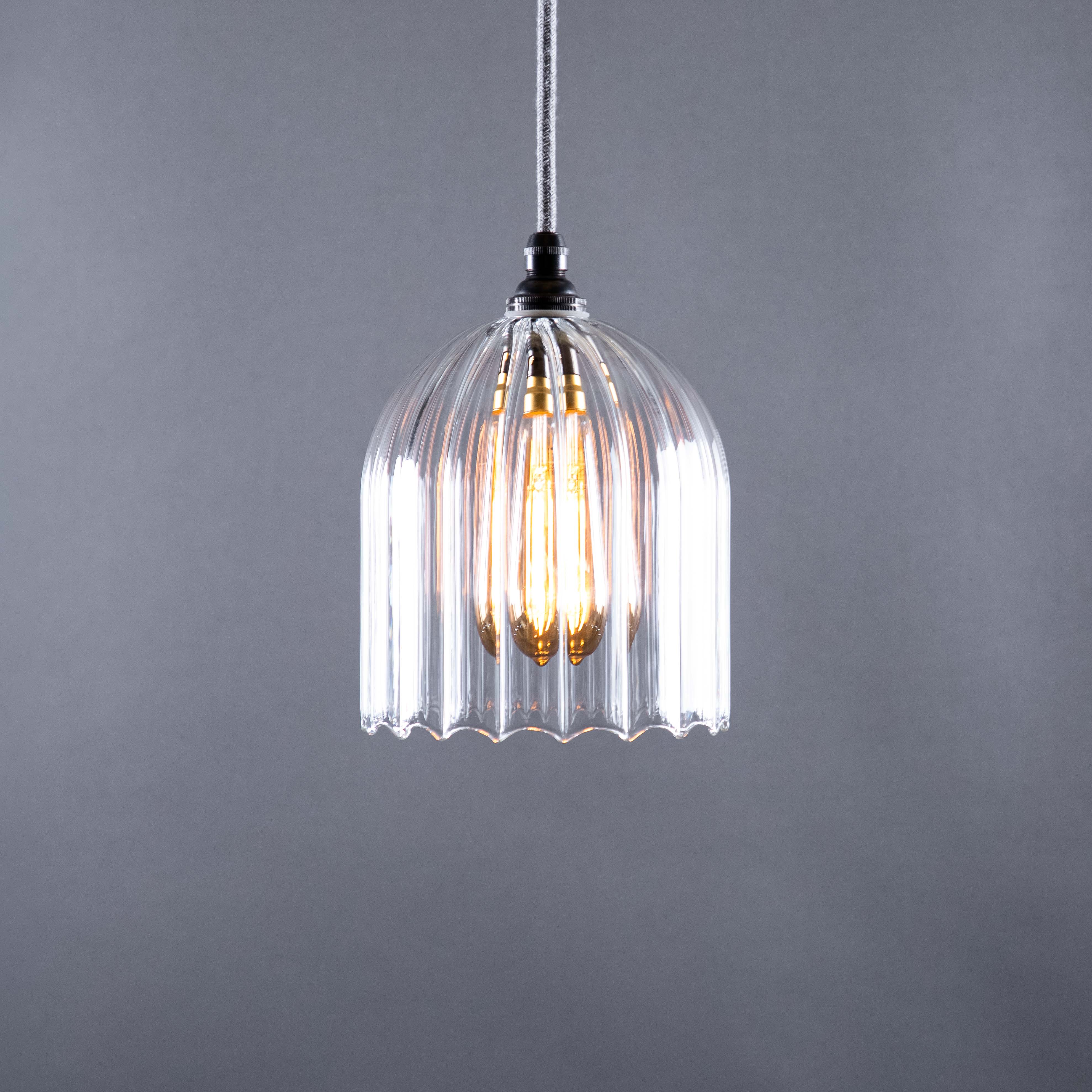 Our Frieda Clear Ribbed Pendant Light is not just a light source; it infuses your space with elegance and playfulness.