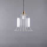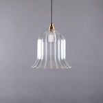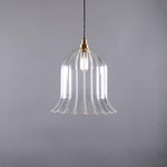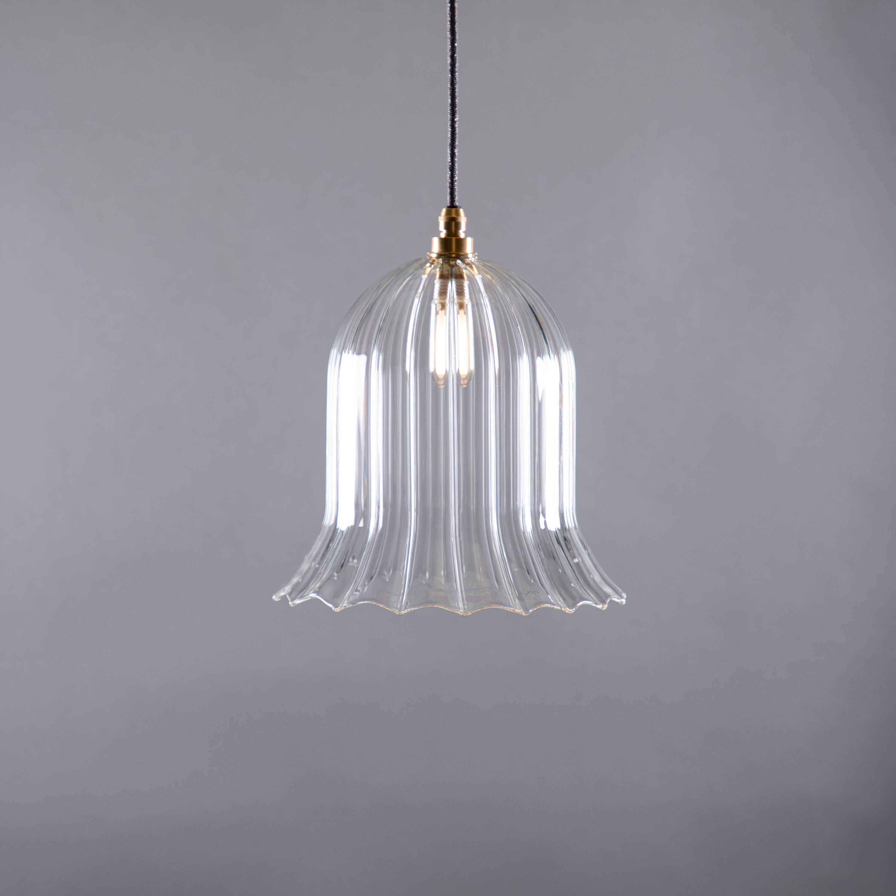 Glow designed, IP44 bathroom pendant light. Our Large Humphrey, with it's trumpet clear ribbed glass shape, is a delightful nod to the traditional, yet the lines are clean and simple enough to work equally in a contemporary interior. Create an elegant, relaxing Glow in your bathroom with our unique lighting. Available in brushed brass and brushed nickel, with a 1m length of cable, available in a choice of four colours.