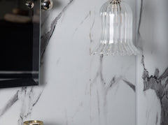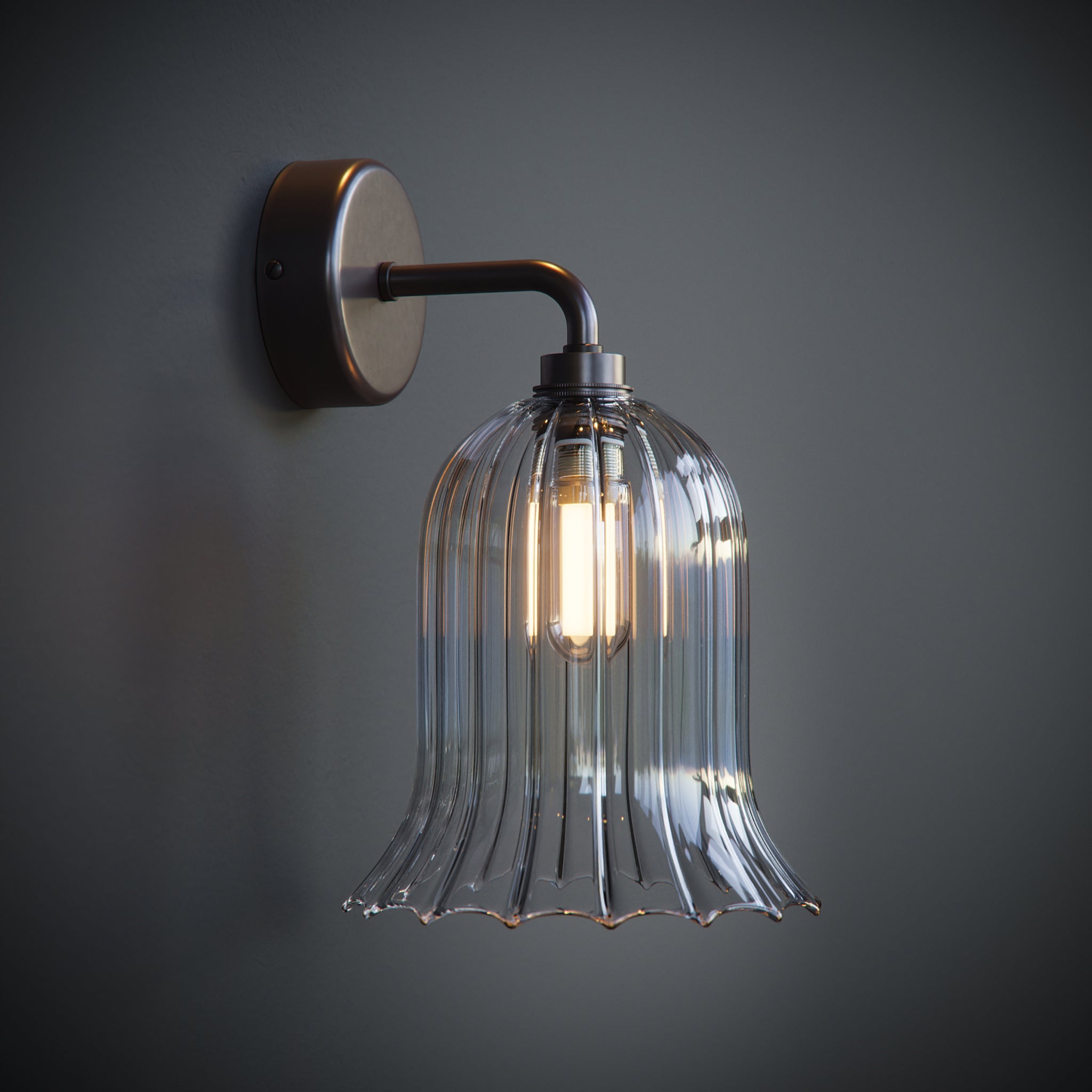 Bring timeless style to your bathroom with the Humphrey IP44 Bathroom Wall Light, featuring a handblown clear ribbed glass trumpet shade crafted in our Yorkshire studio. Designed by Glow, this bathroom wall light combines classic elegance with clean, modern lines – perfect for placing either side of a bathroom mirror or adding soft, ambient lighting to your space.
