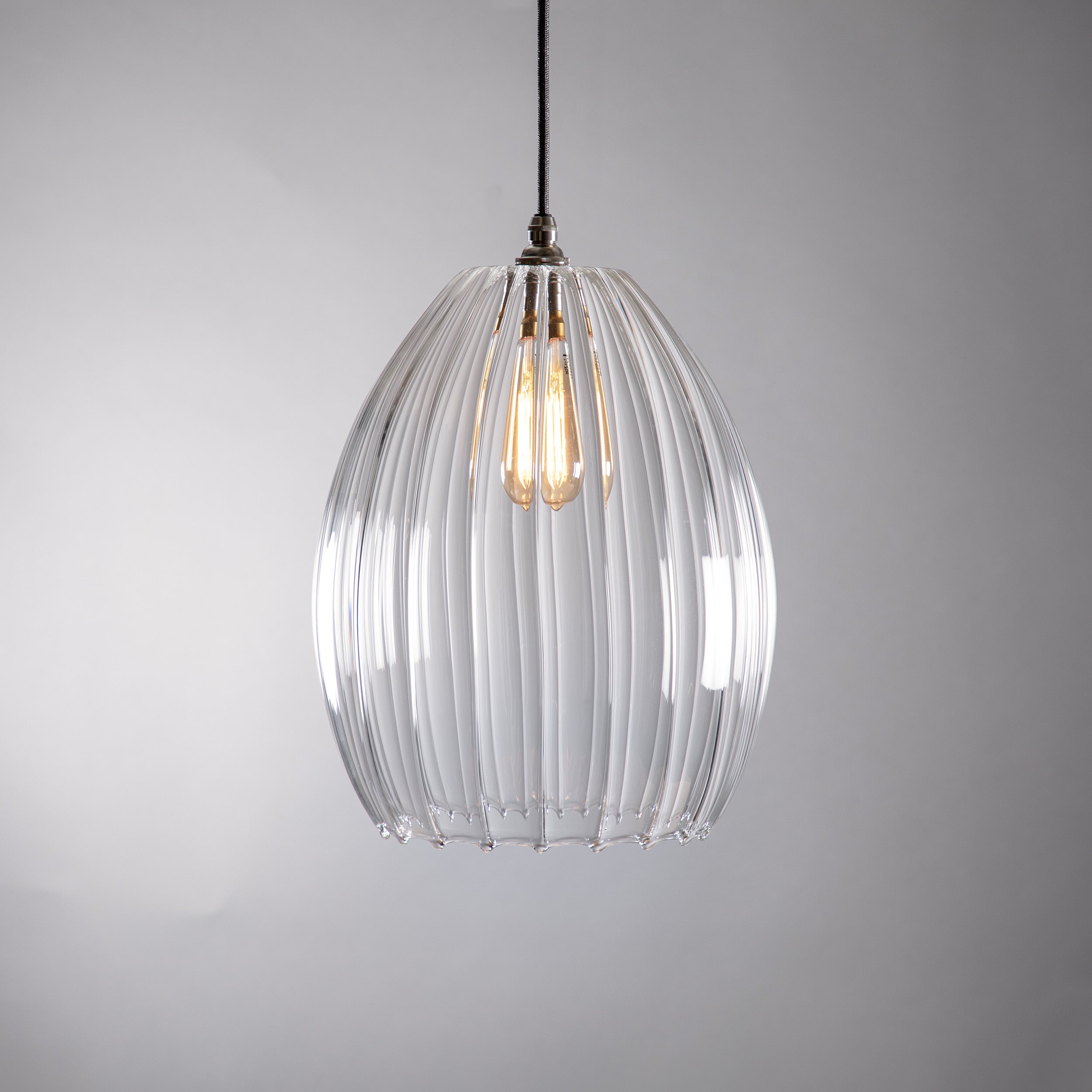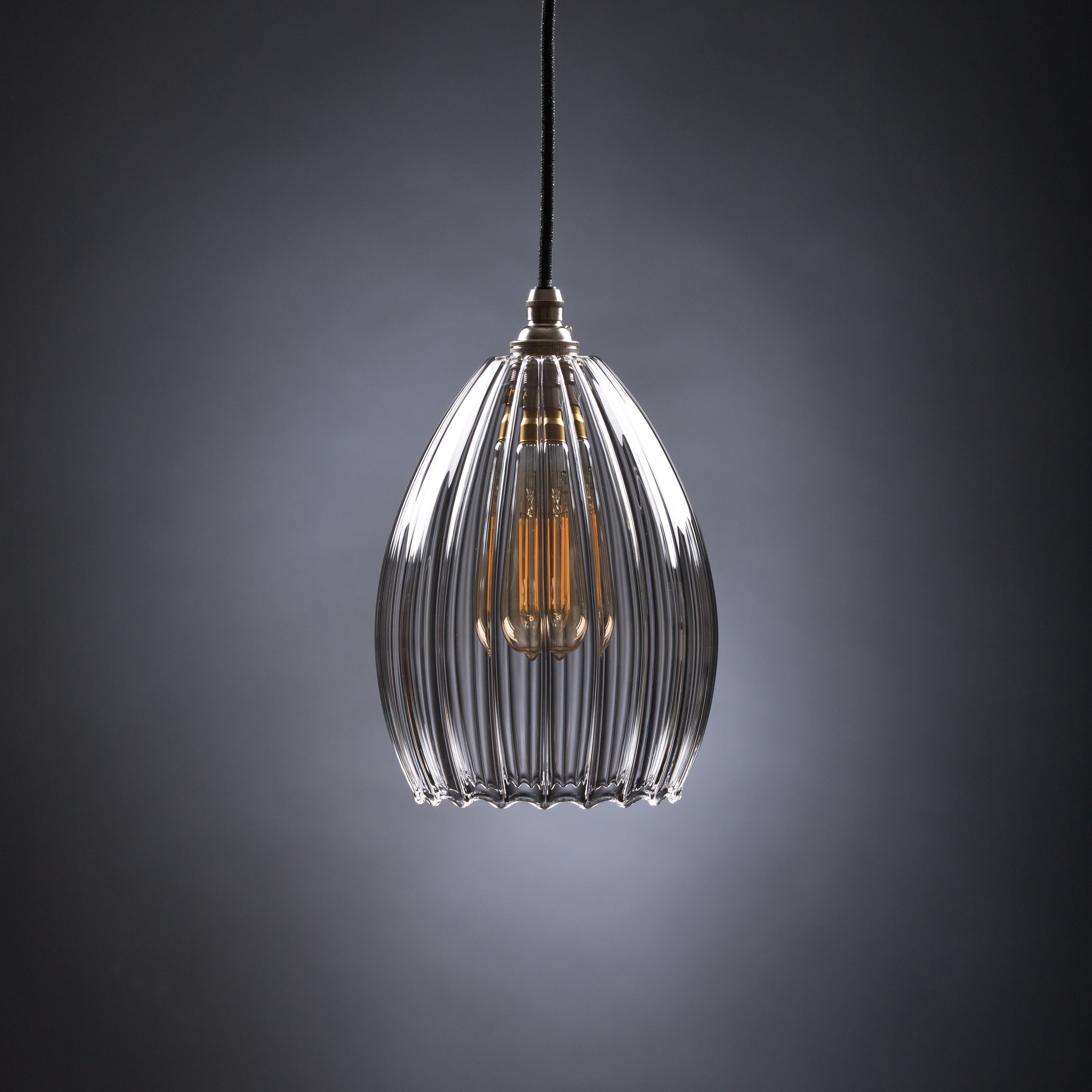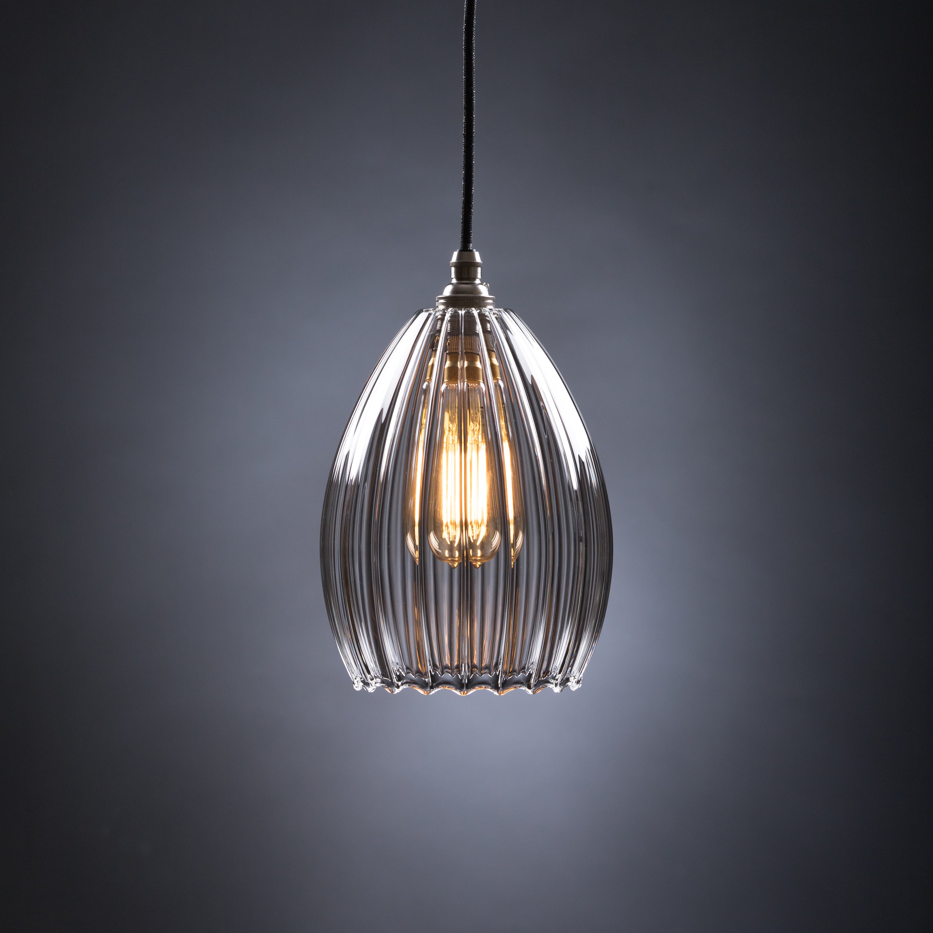Jules Ribbed Clear Glass Pendant Light – Handblown in Britain