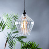Olive Clear Ribbed Pendant Light