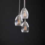 With their softly curved form and subtle ribbed texture, the shades suit both contemporary and traditional interiors. Perfect for hallways, staircases, kitchen islands, and cosy corners, this compact chandelier creates a warm, layered glow and adds a touch of artisan charm to any space.