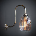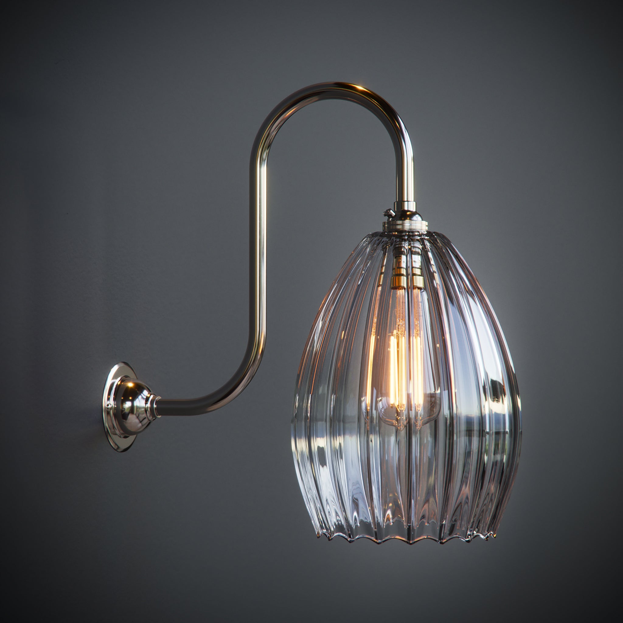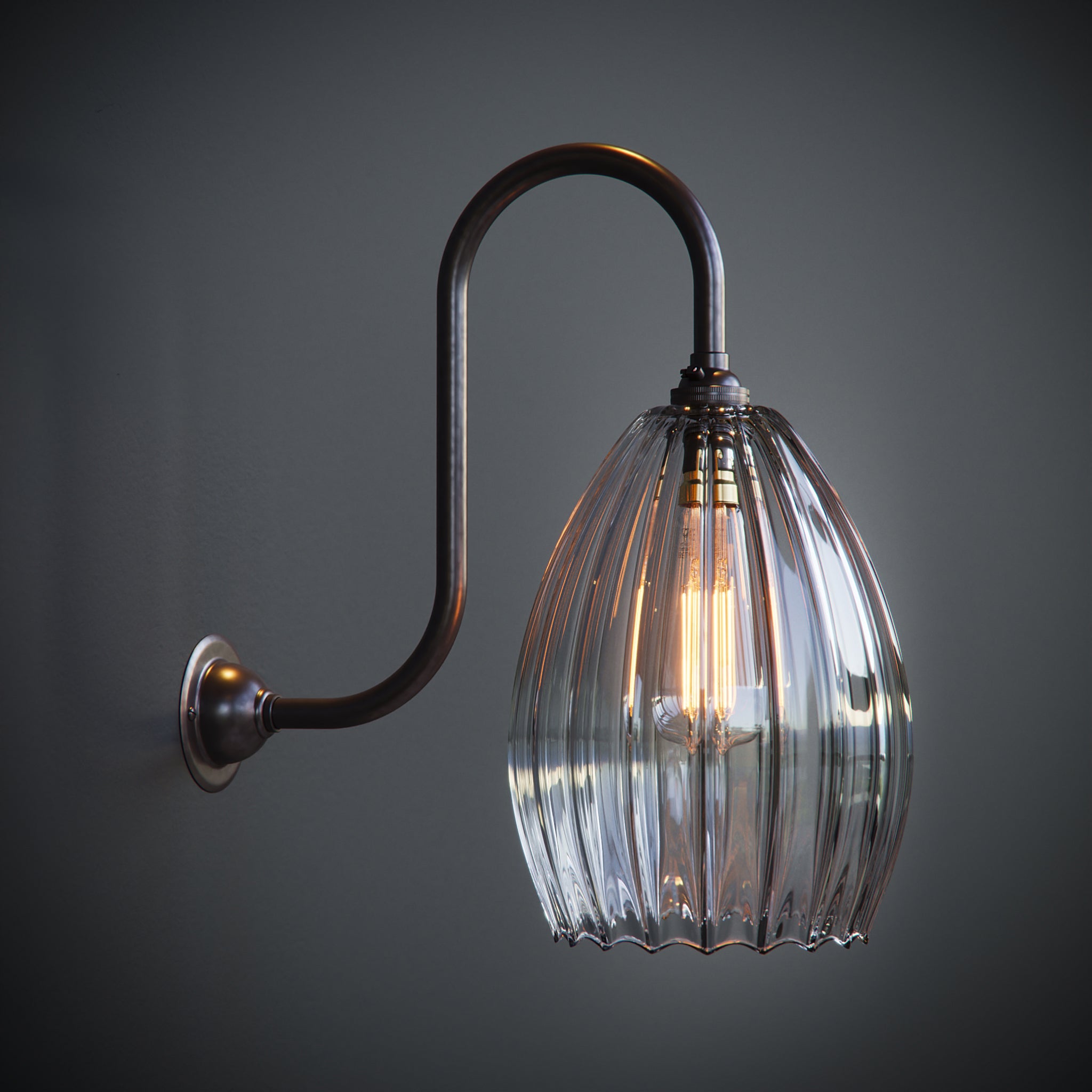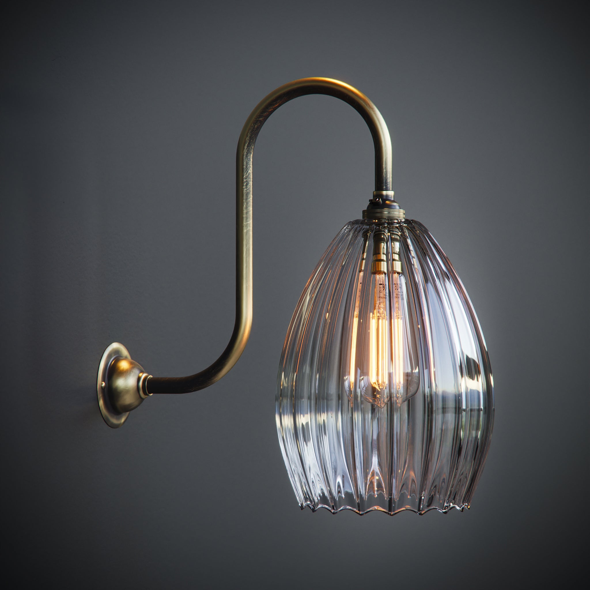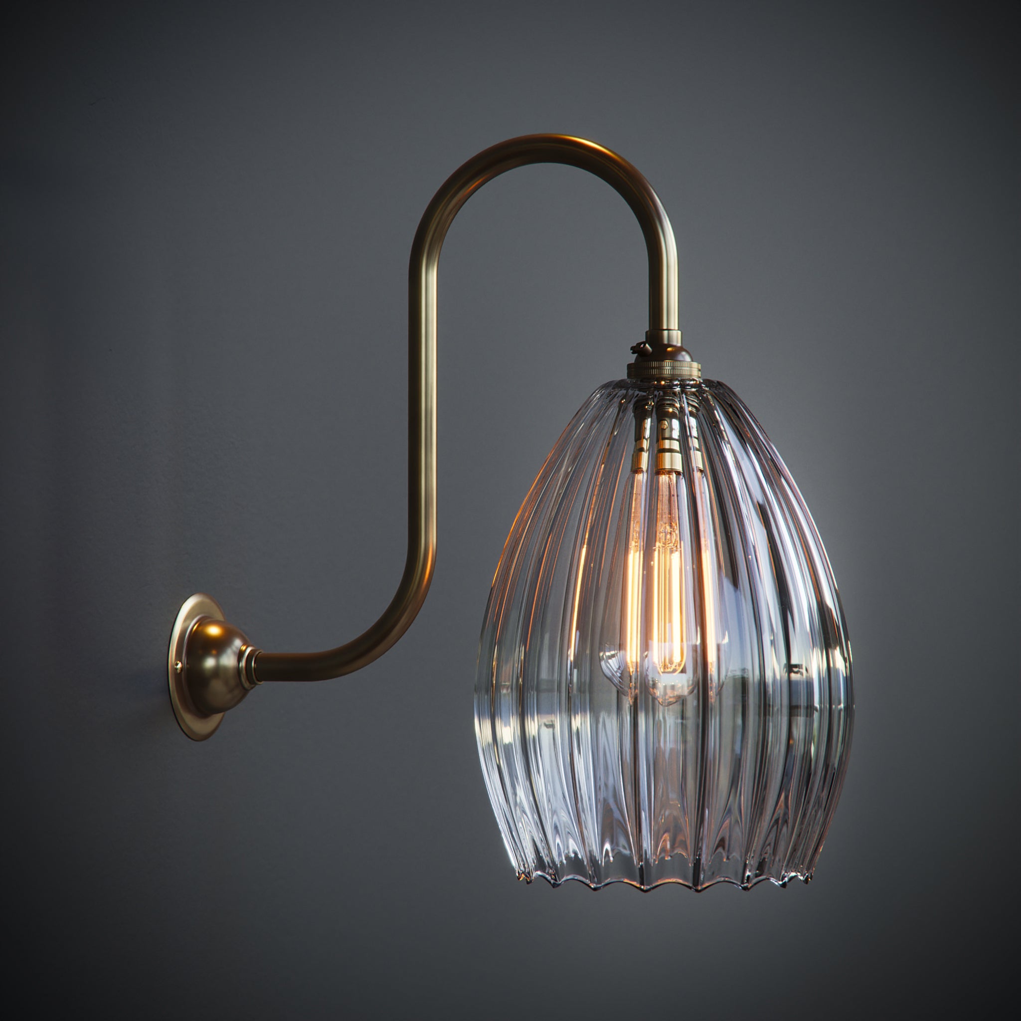 The Jules Swan Neck Wall Light is handcrafted in our Yorkshire studio and finished with a ribbed glass shade that adds gentle texture and detail. Set on a curved swan neck arm, it has a classic look that feels at home in both traditional and modern interiors.