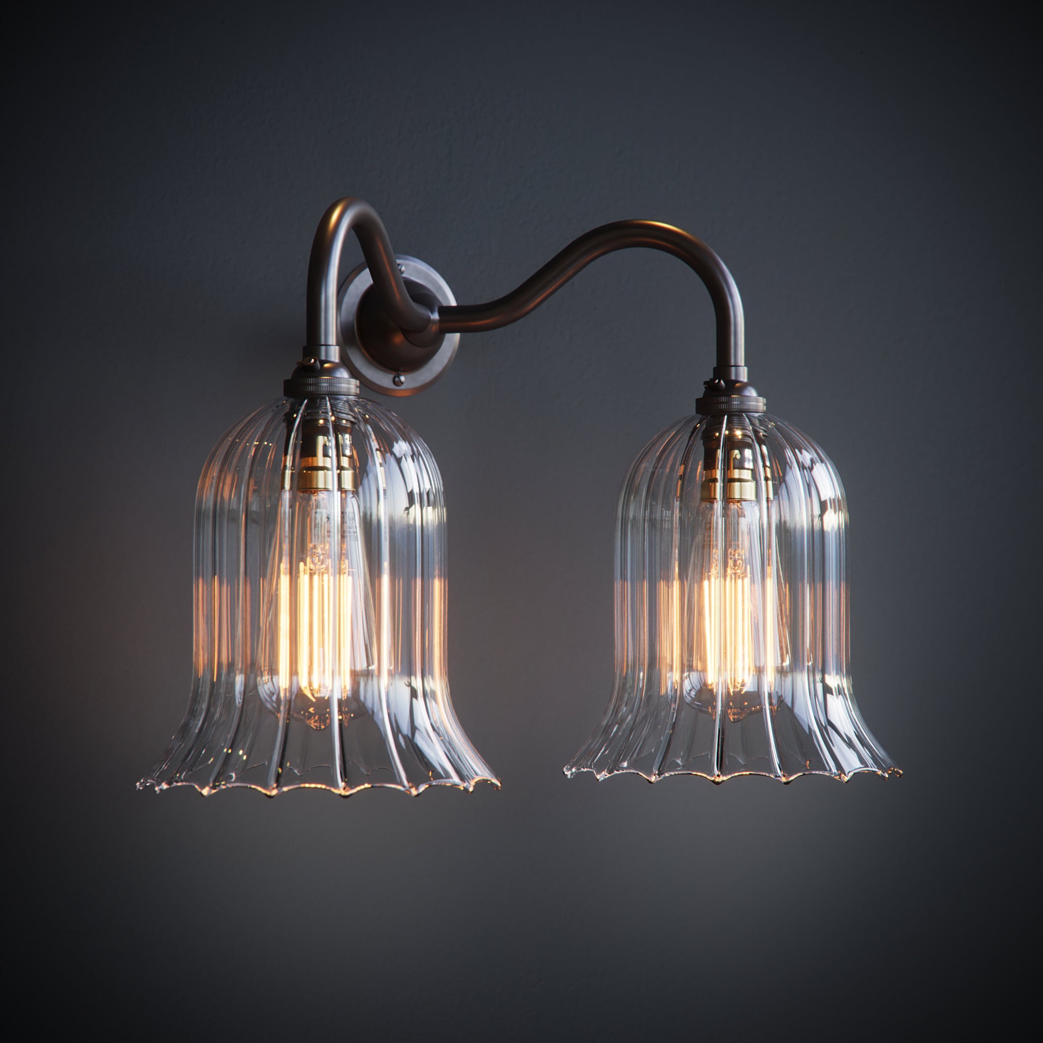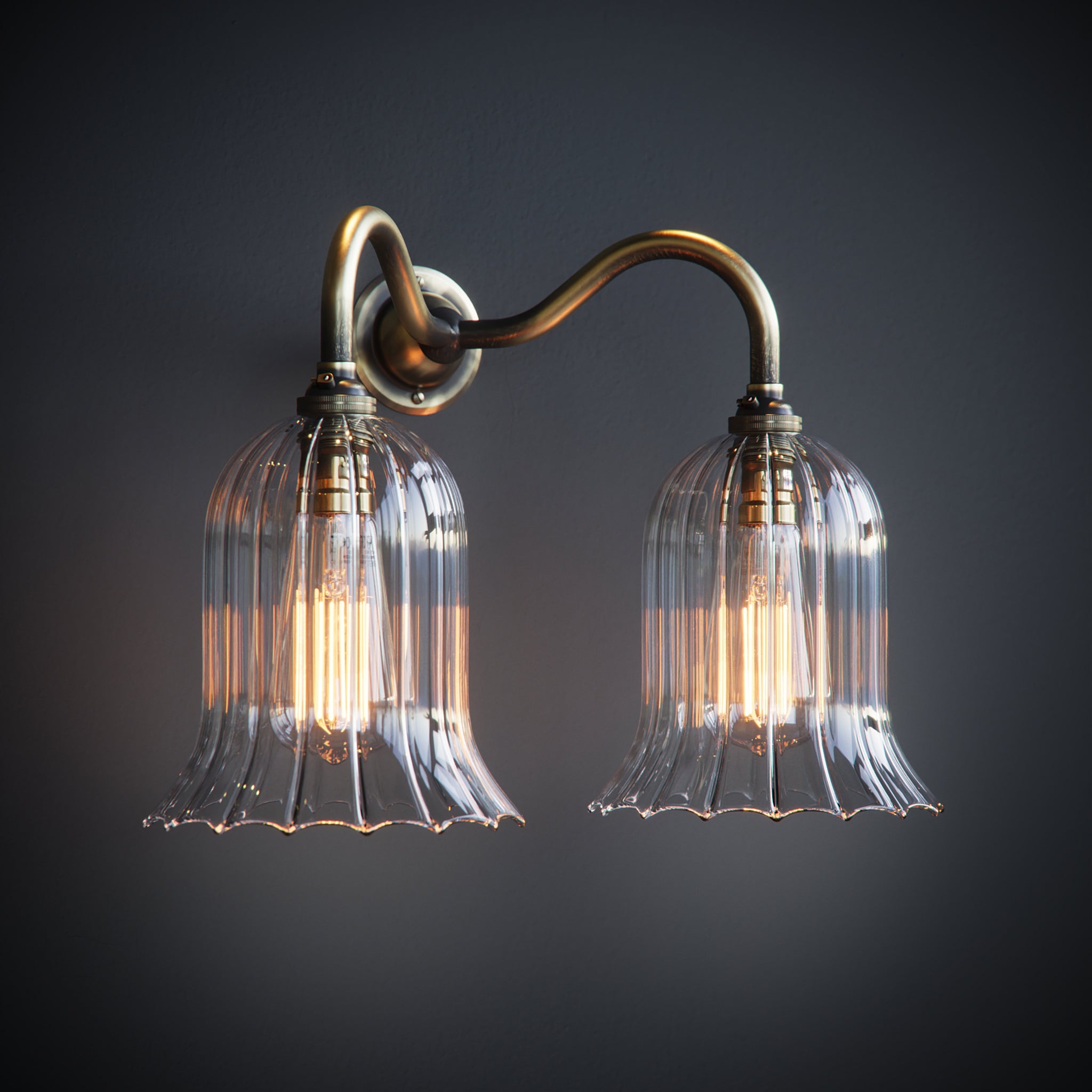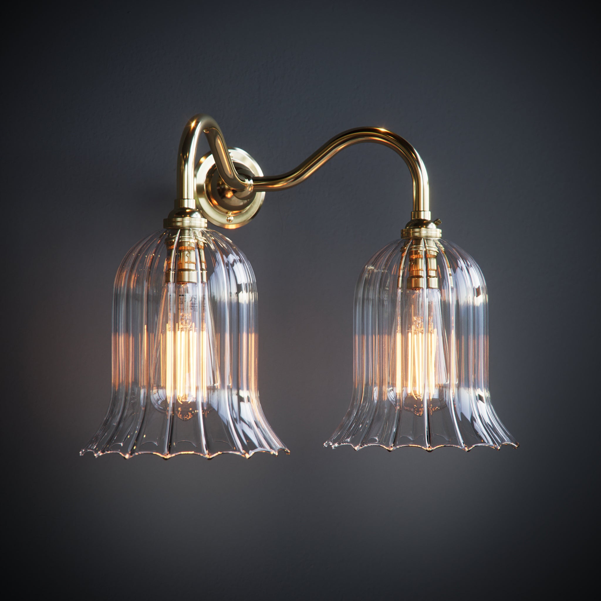 Introduce a burst of classic beauty to your home with our stunning Humphrey Clear Ribbed Fluted Bottom Glass Double Wall Lights.