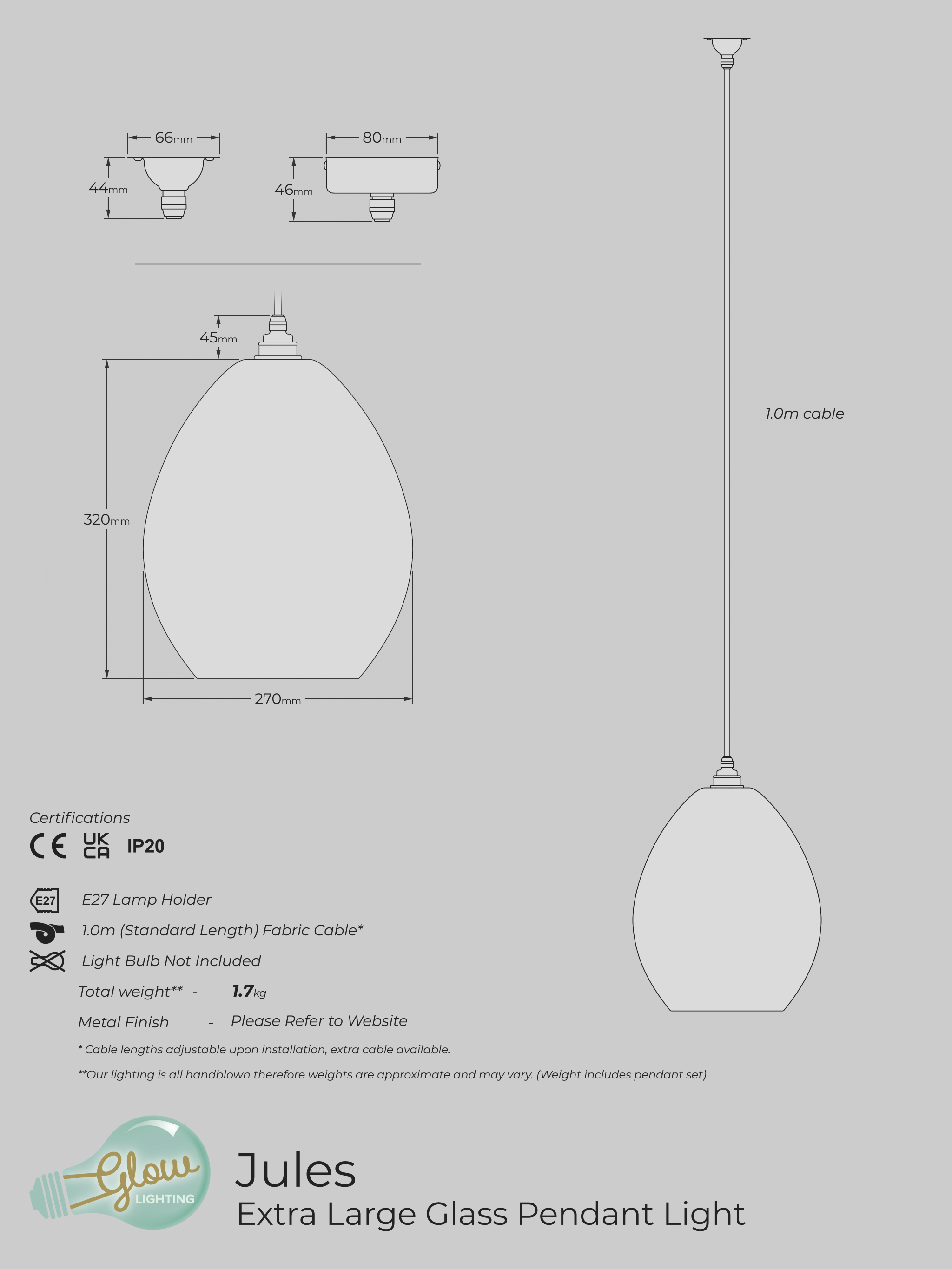 Customise your light with a choice of metal finishes, cable colours, and drop lengths to suit your space. Supplied with 1 metre of cable as standard – longer lengths available at checkout.