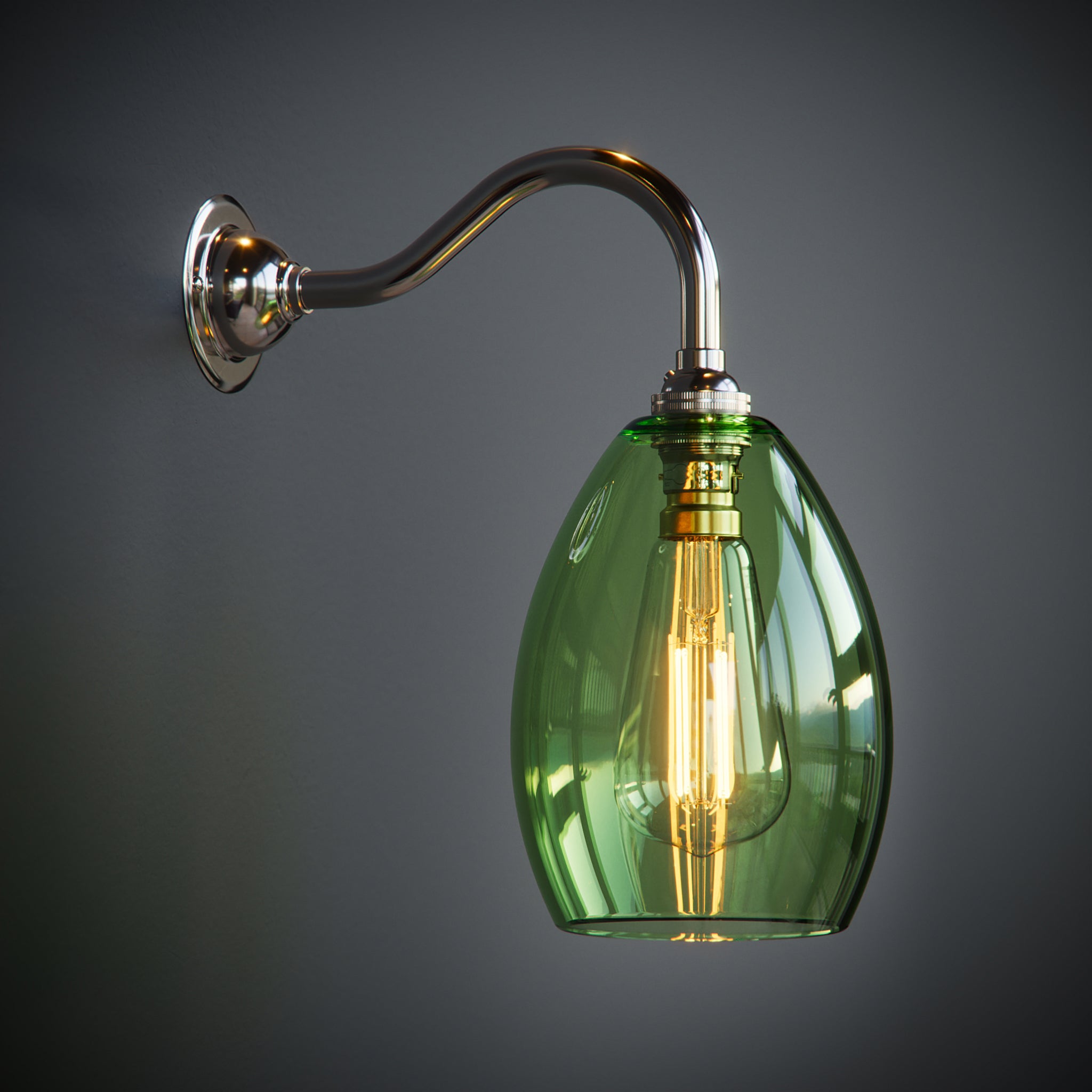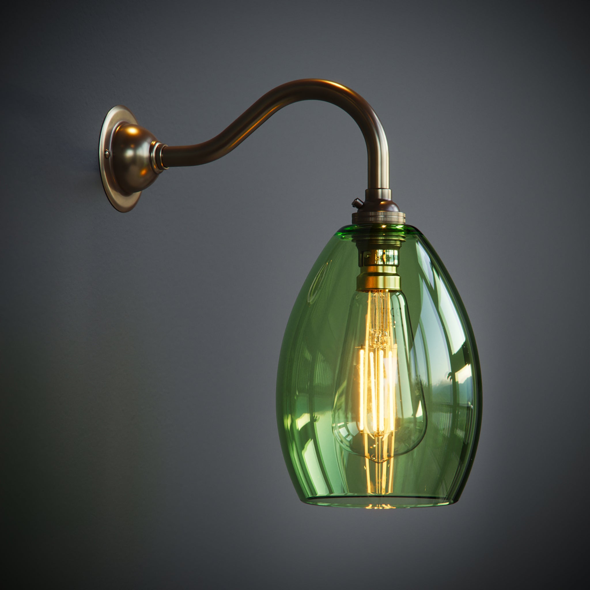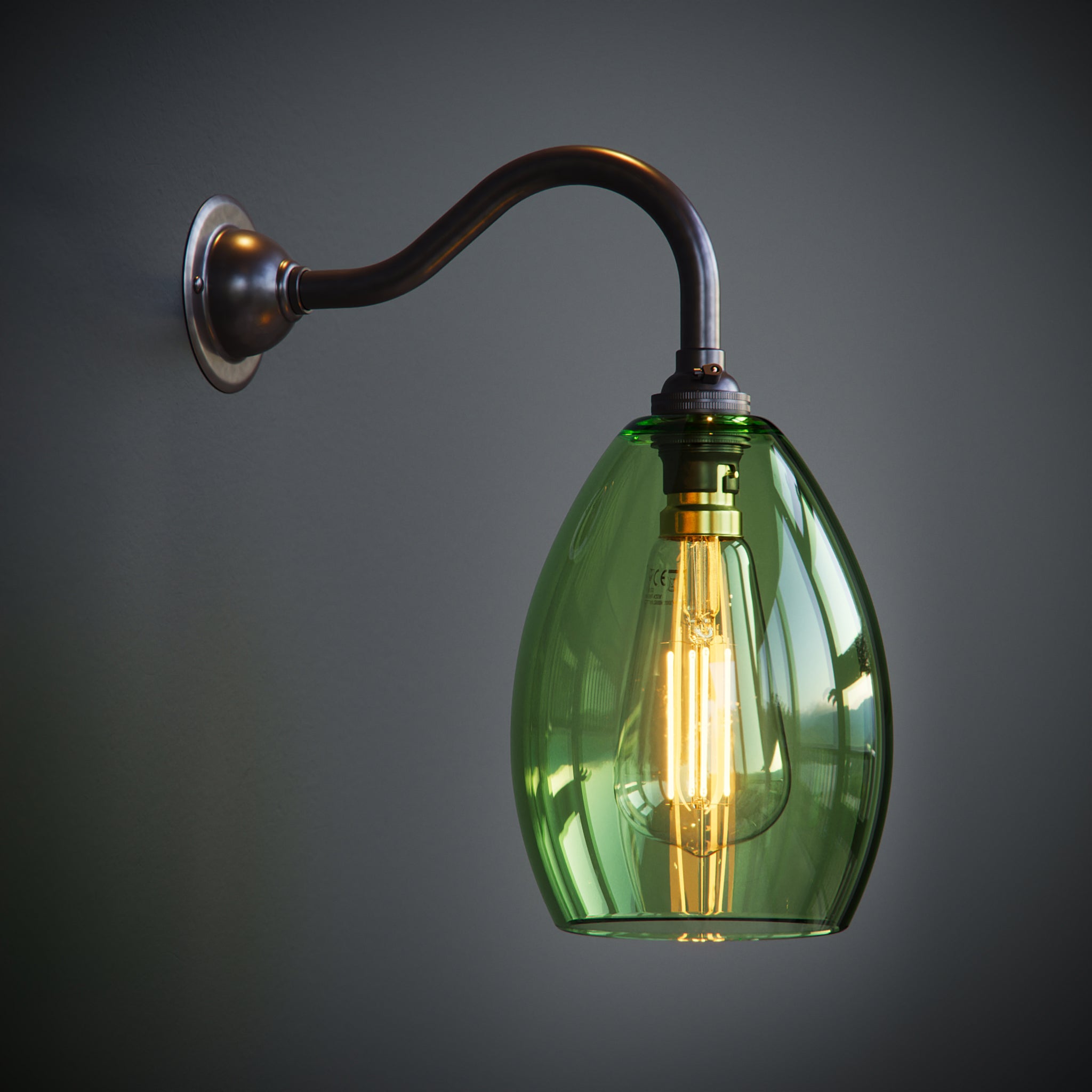 The Jules wall light features a handblown lime green glass shade on a classic curved arm bracket. Available in small or medium, the fresh lime tone brings a lively pop of colour to any space.