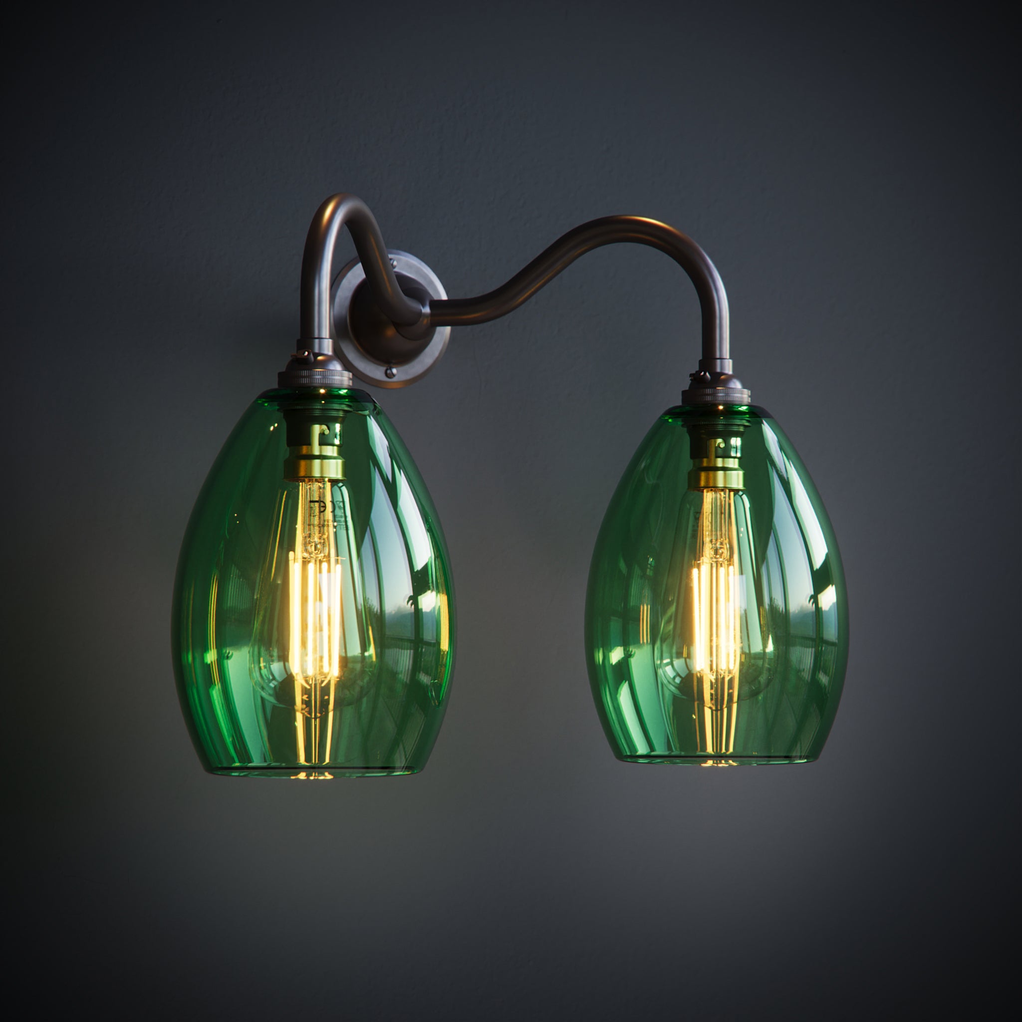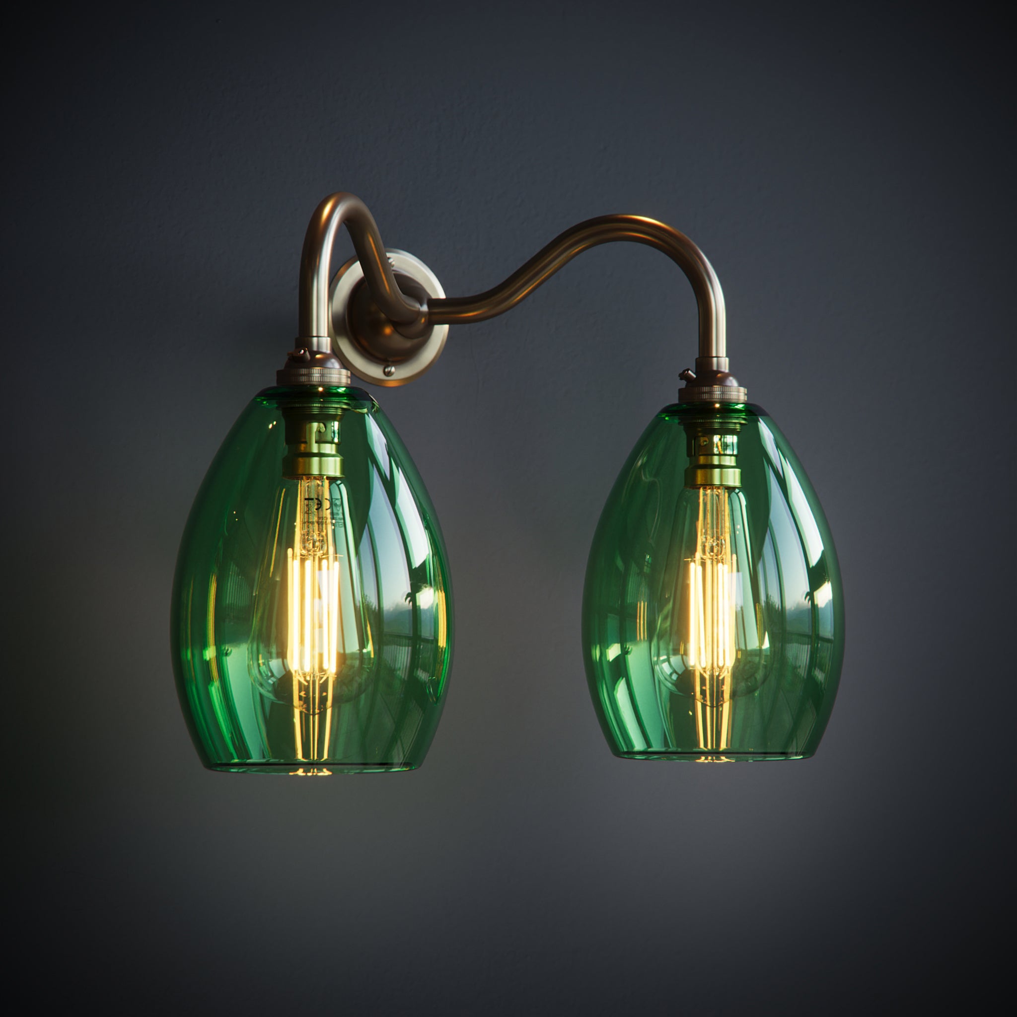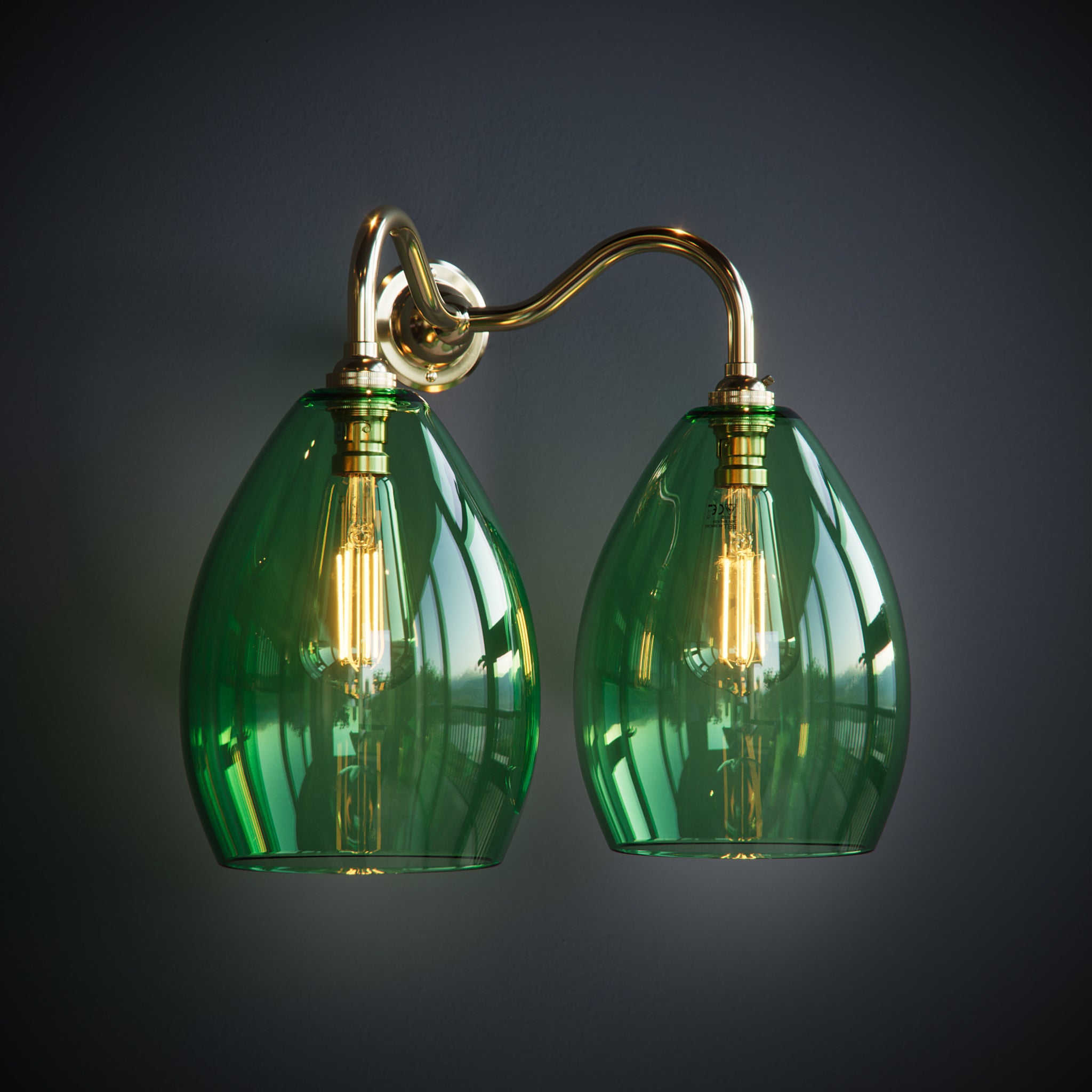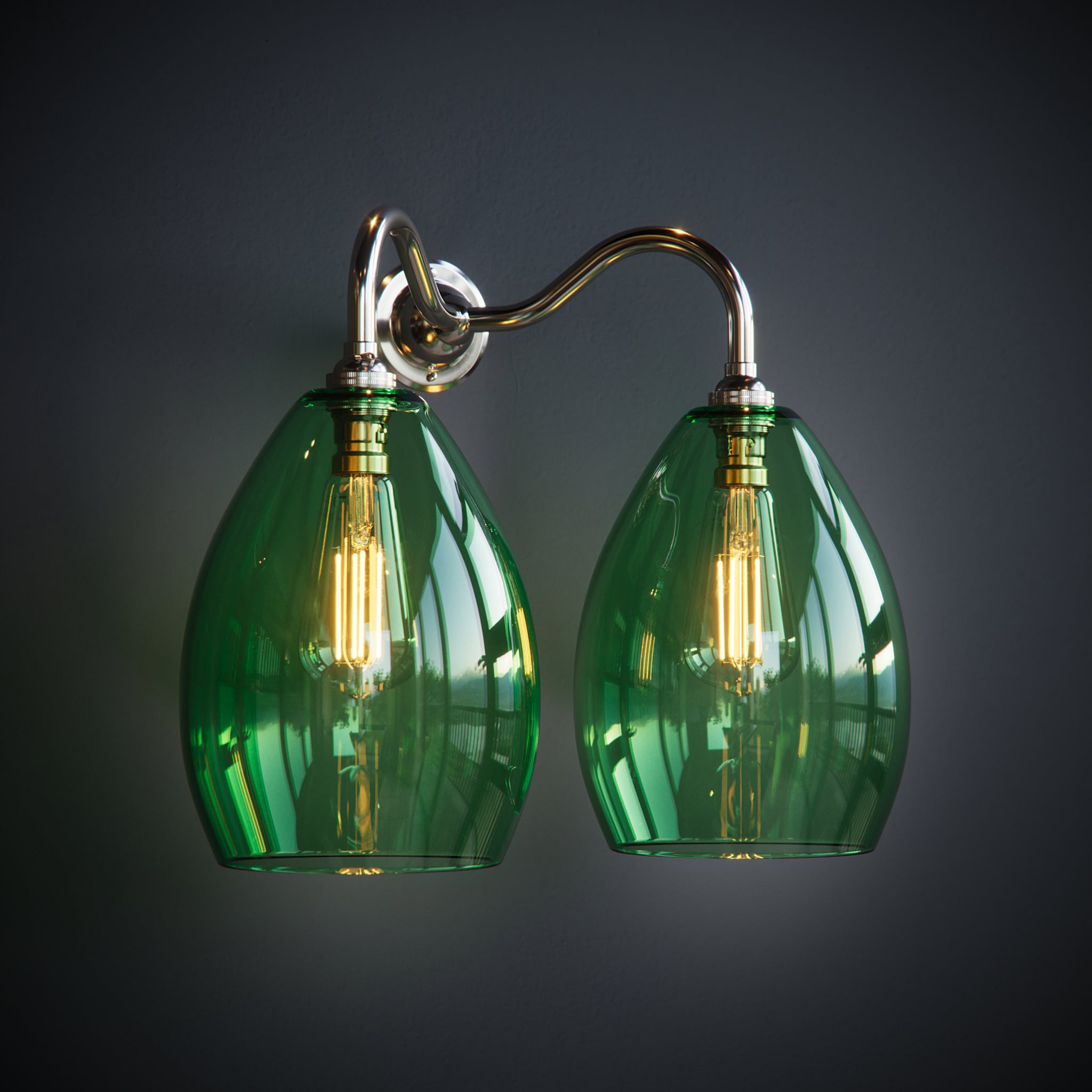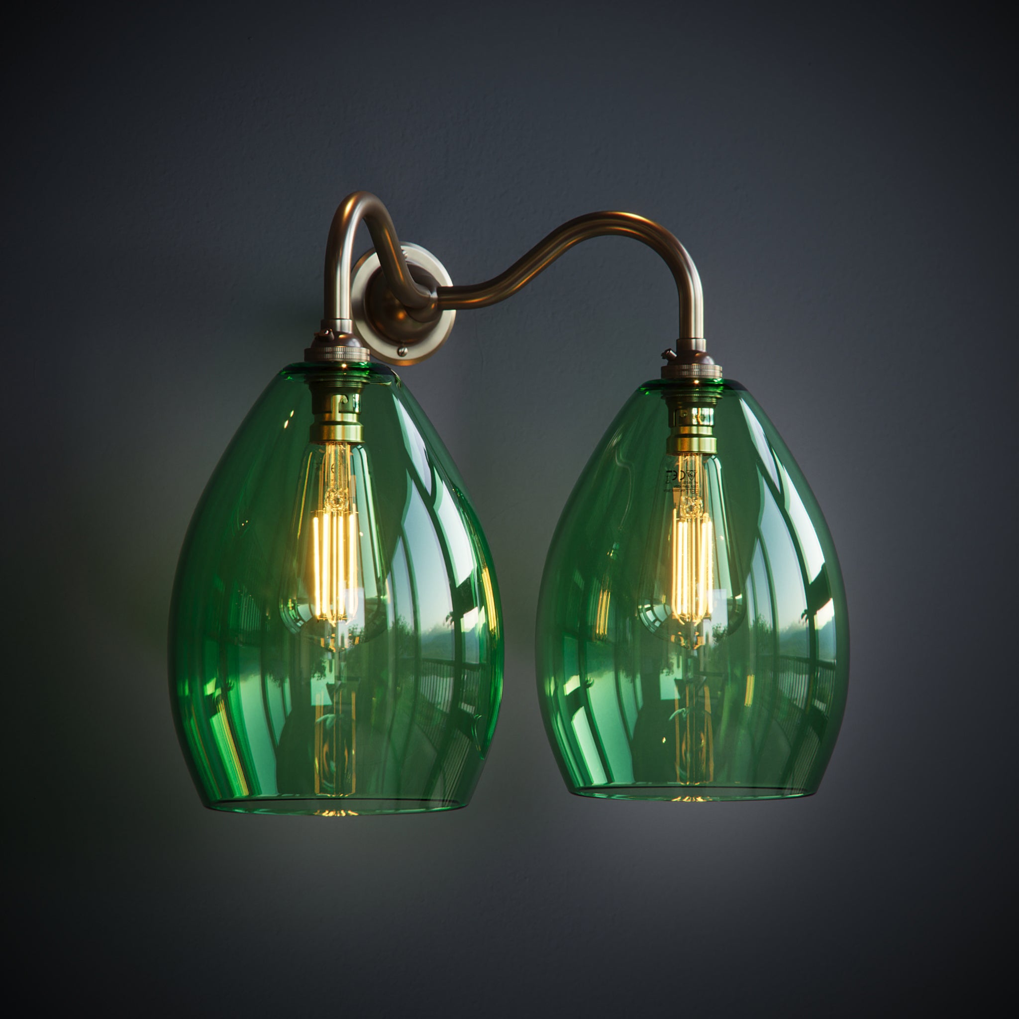 Bring the outdoors in with our Green Glass Double Wall Lights.