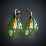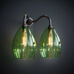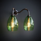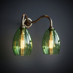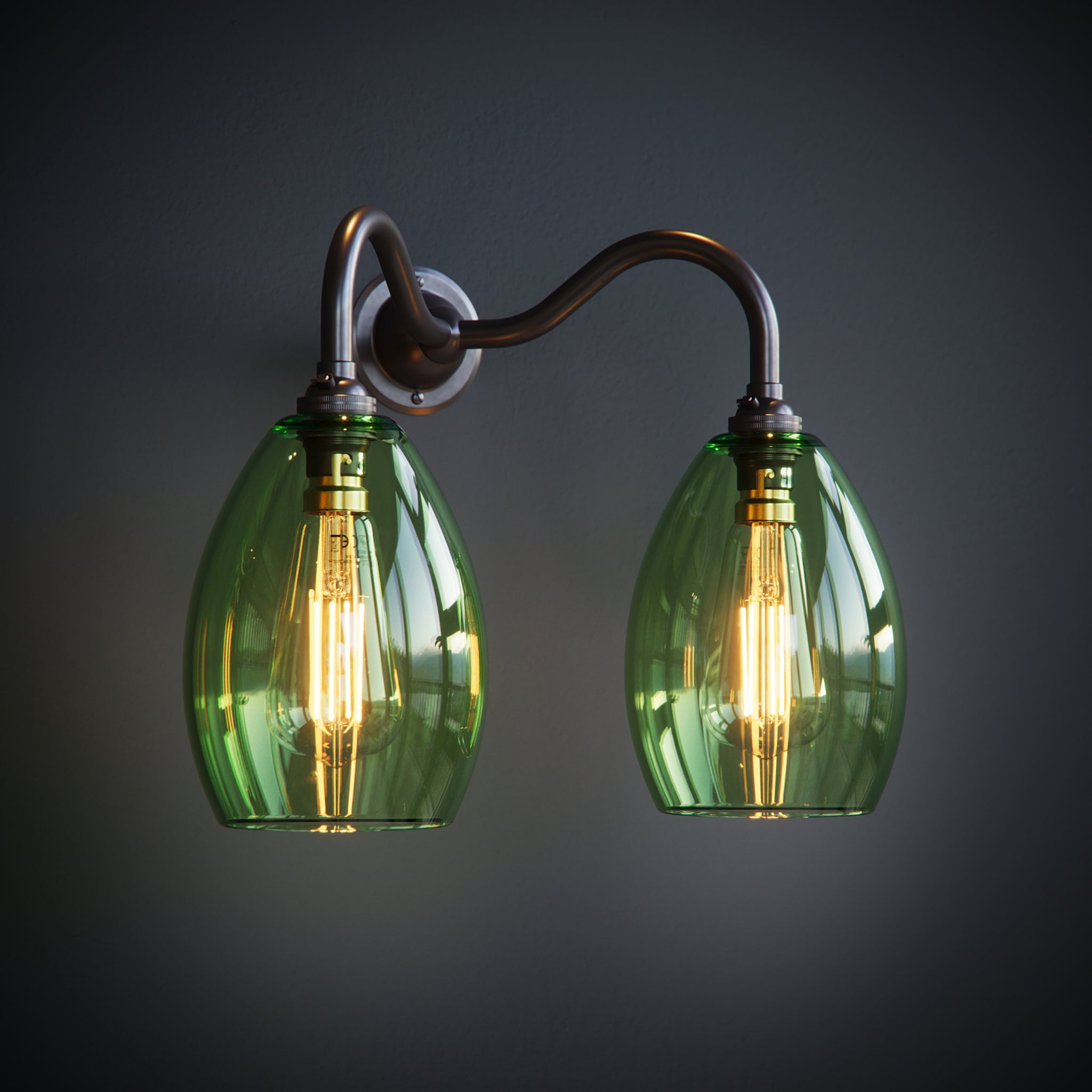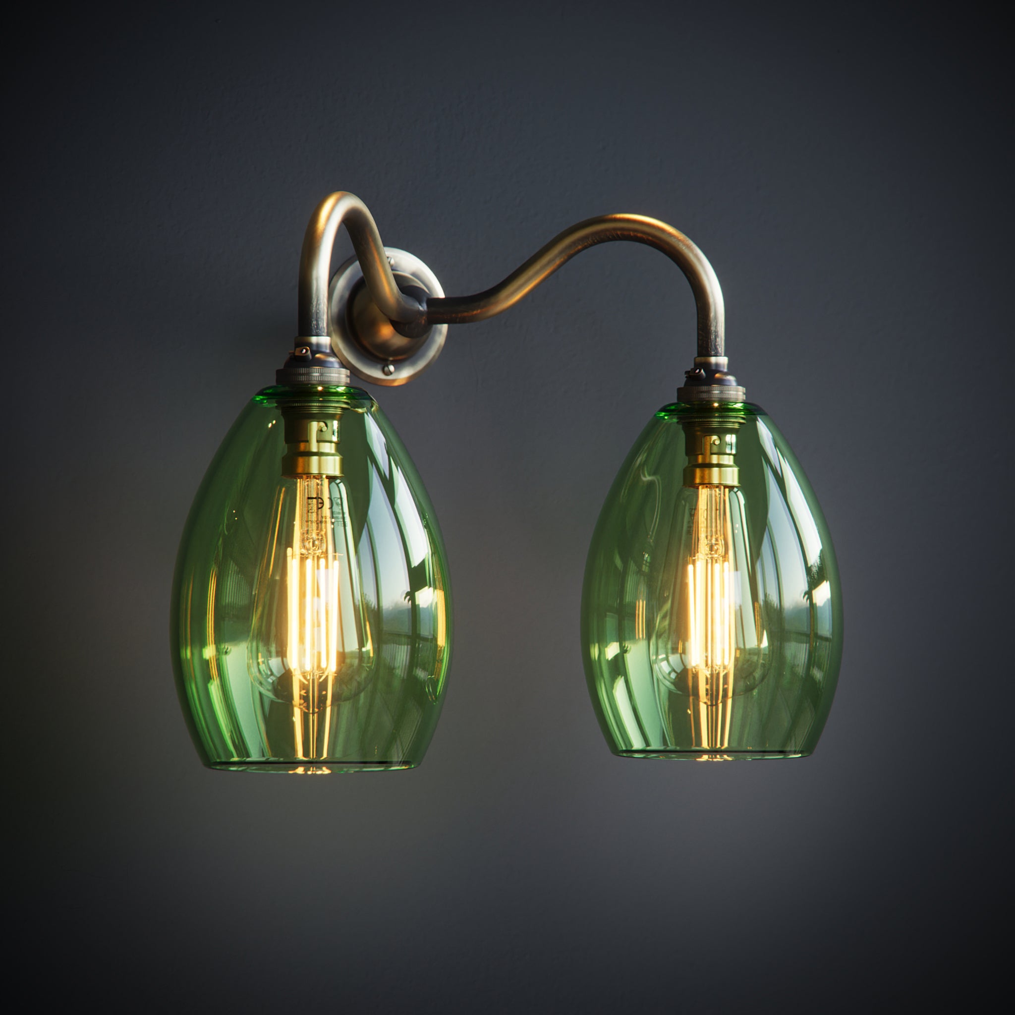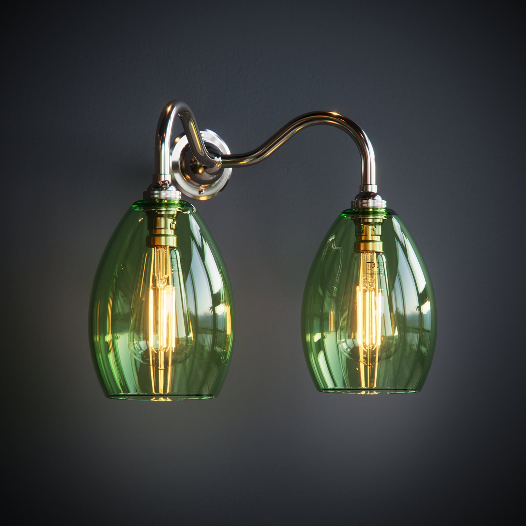Add bold colour and beauty to your home with the Jules Double Wall Light in lime green glass. Handblown in our Yorkshire studio, each shade is crafted with precision and mounted on a classic curved double-arm design, bringing both symmetry and style.