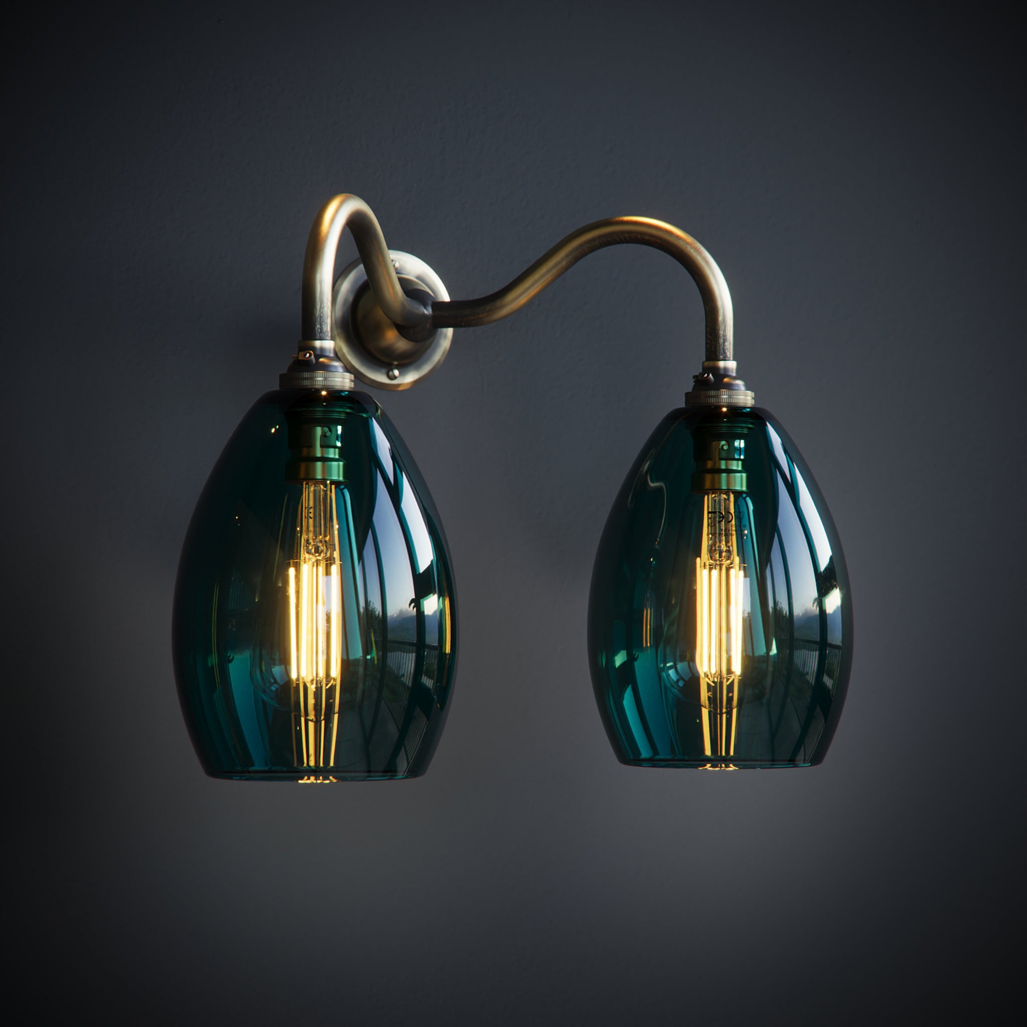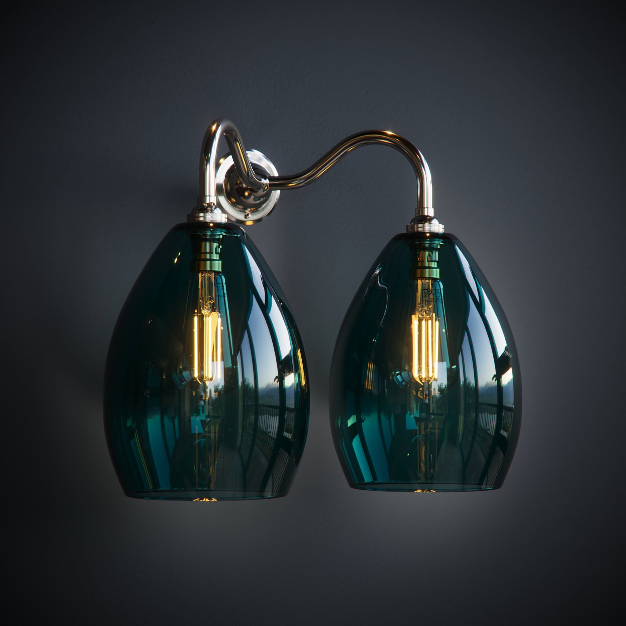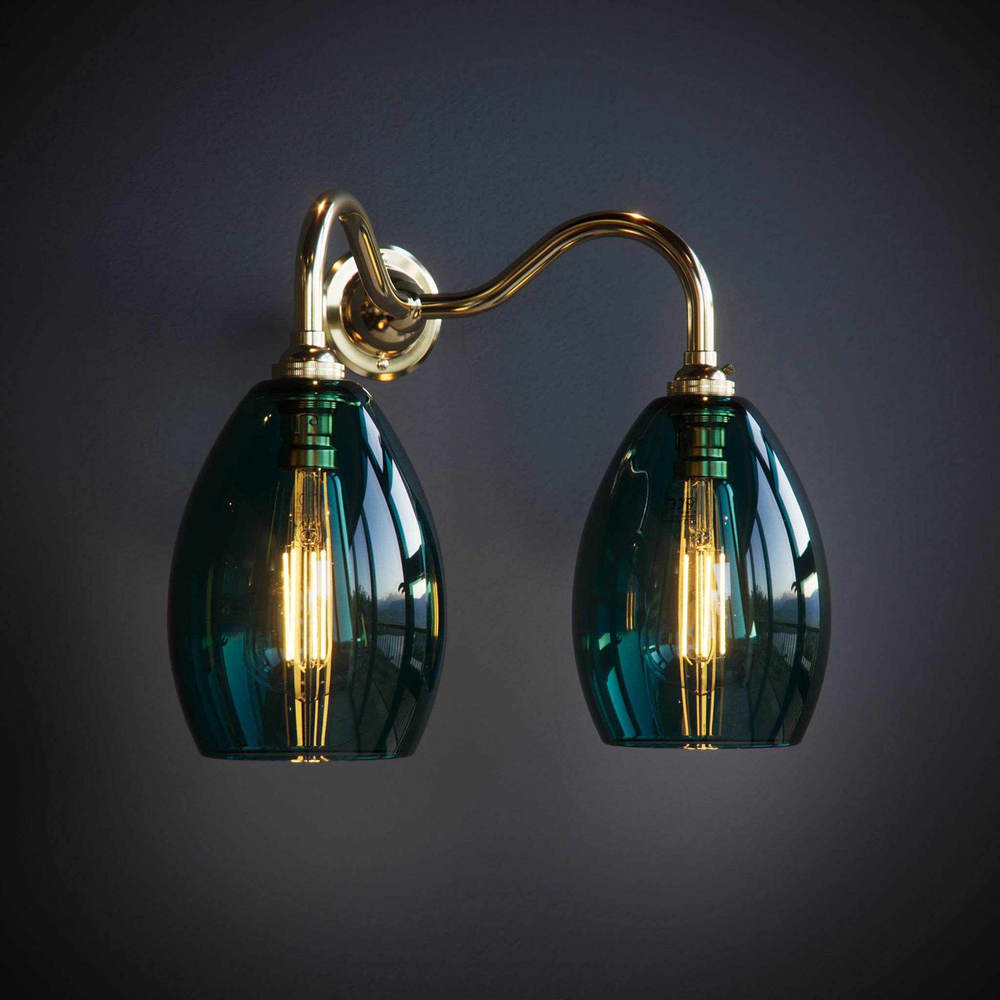 Introduce a burst of classic beauty to your home with our stunning Jules Teal Glass Double Wall Lights.