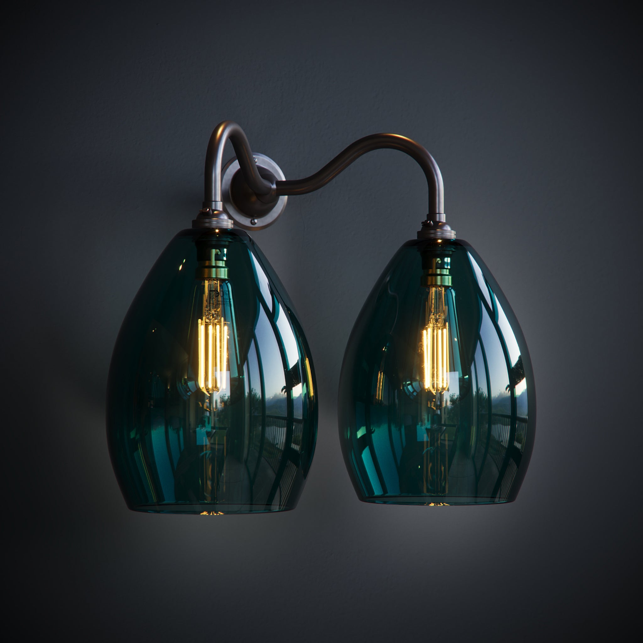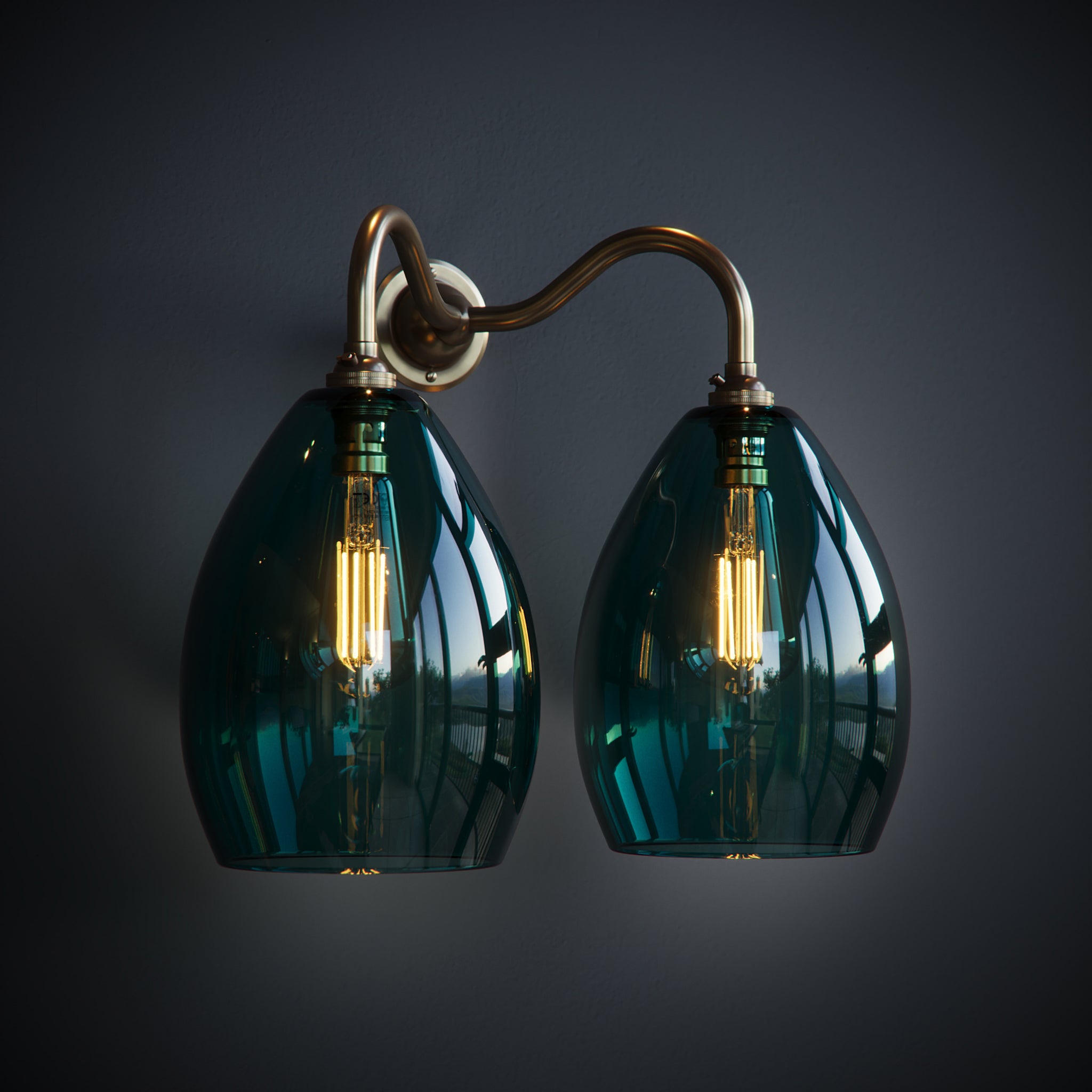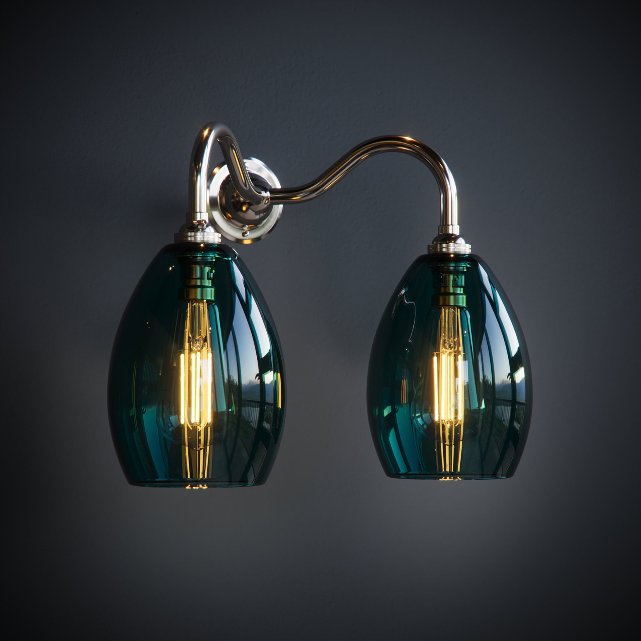 Introduce a burst of classic beauty to your home with our stunning Jules Teal Glass Double Wall Lights.