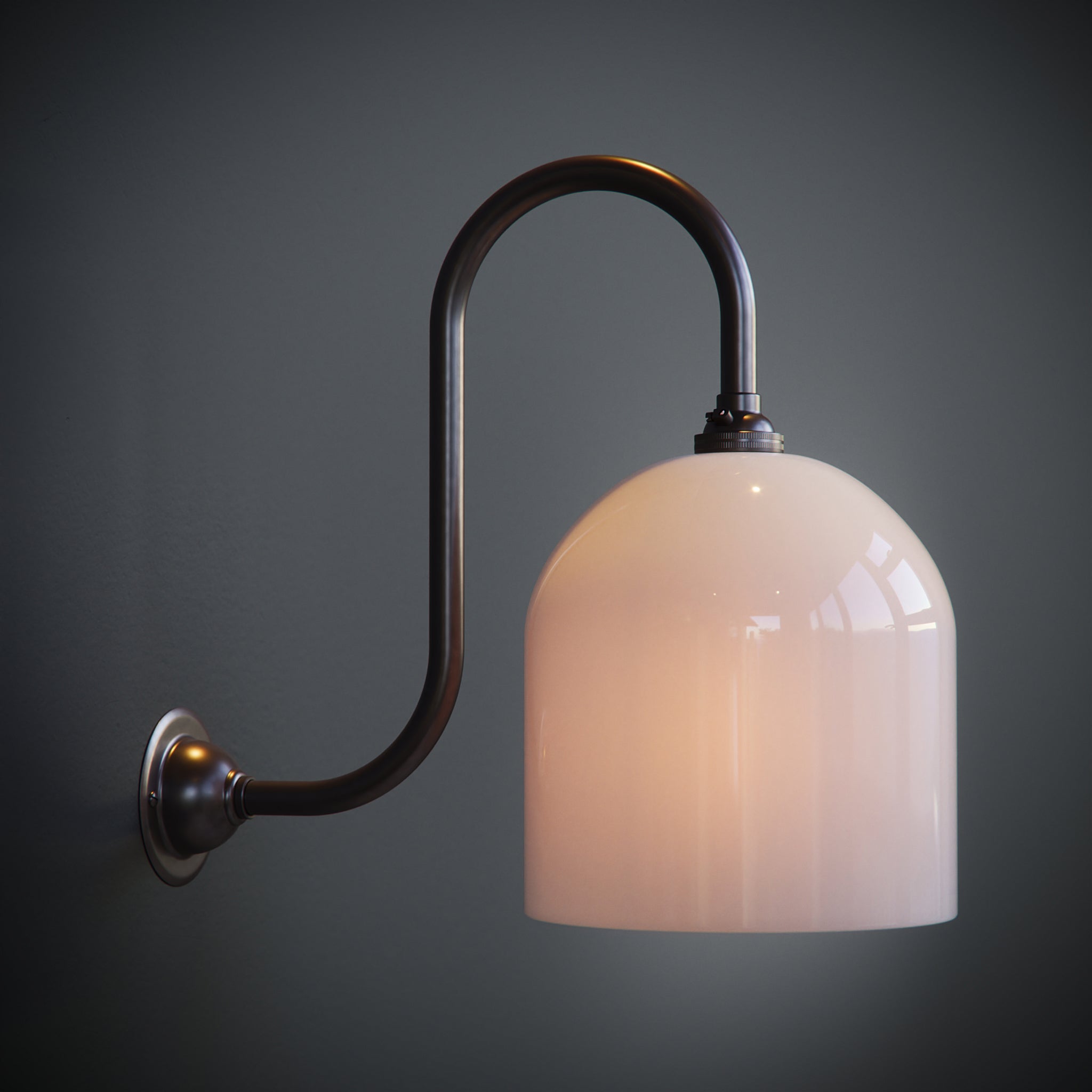 The elegant swan neck bracket is available in a choice of artisan metal finishes: Polished Nickel, Brushed Nickel, Polished Brass, Antique Brass, Old English Brass, or Bronze – allowing you to tailor the light to your décor.