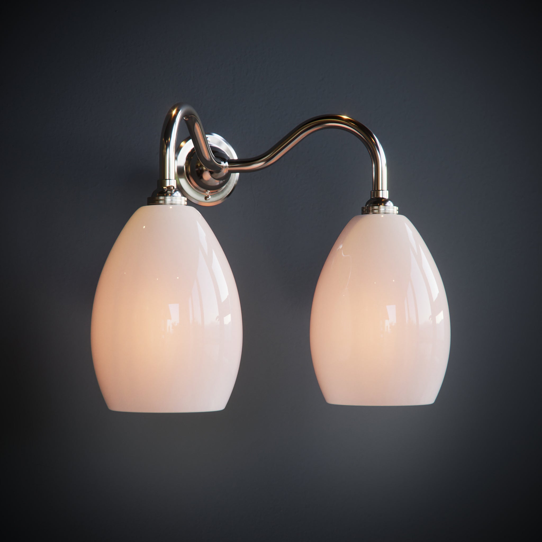 Each glass shade is crafted by hand in our North Yorkshire studio, with every component proudly made in the UK. The classic swan neck arms and backplate are available in your choice of artisan metal finishes, including Polished Nickel, Polished Brass, Antique Brass, Old English Brass, and Bronze, allowing you to fully tailor the look to suit your décor.