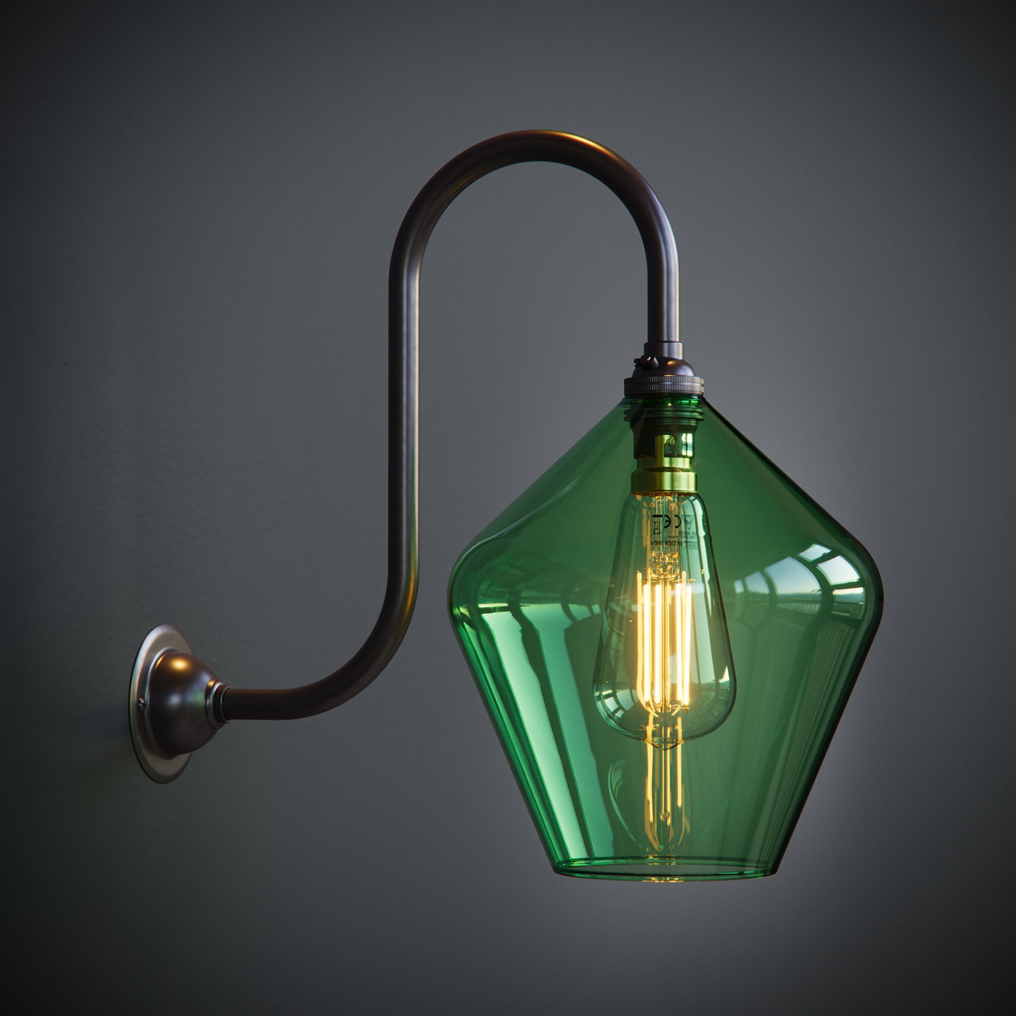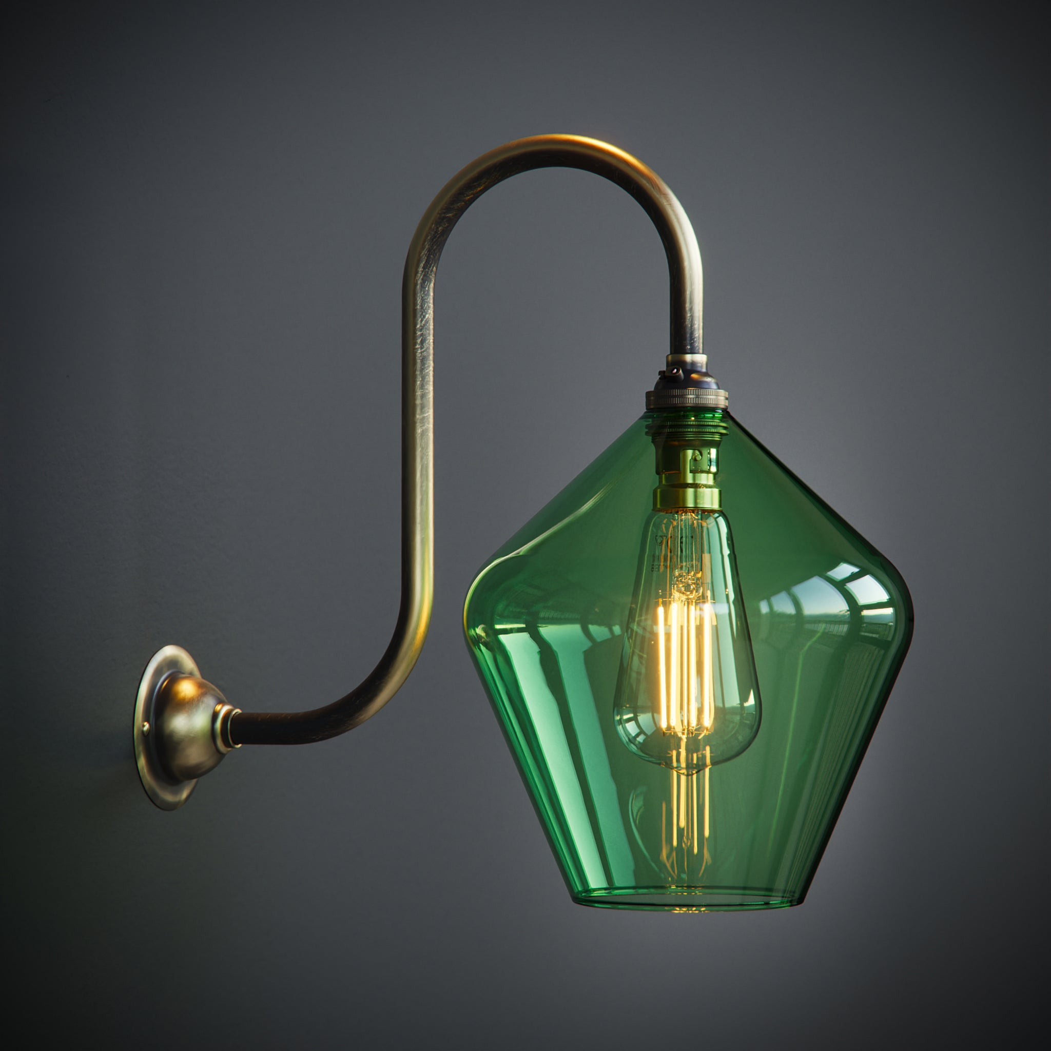Our Swan Neck Olive Green Glass Wall Light is crafted from hand-blown lush green glass, these lights are perfect for adding character to any space.