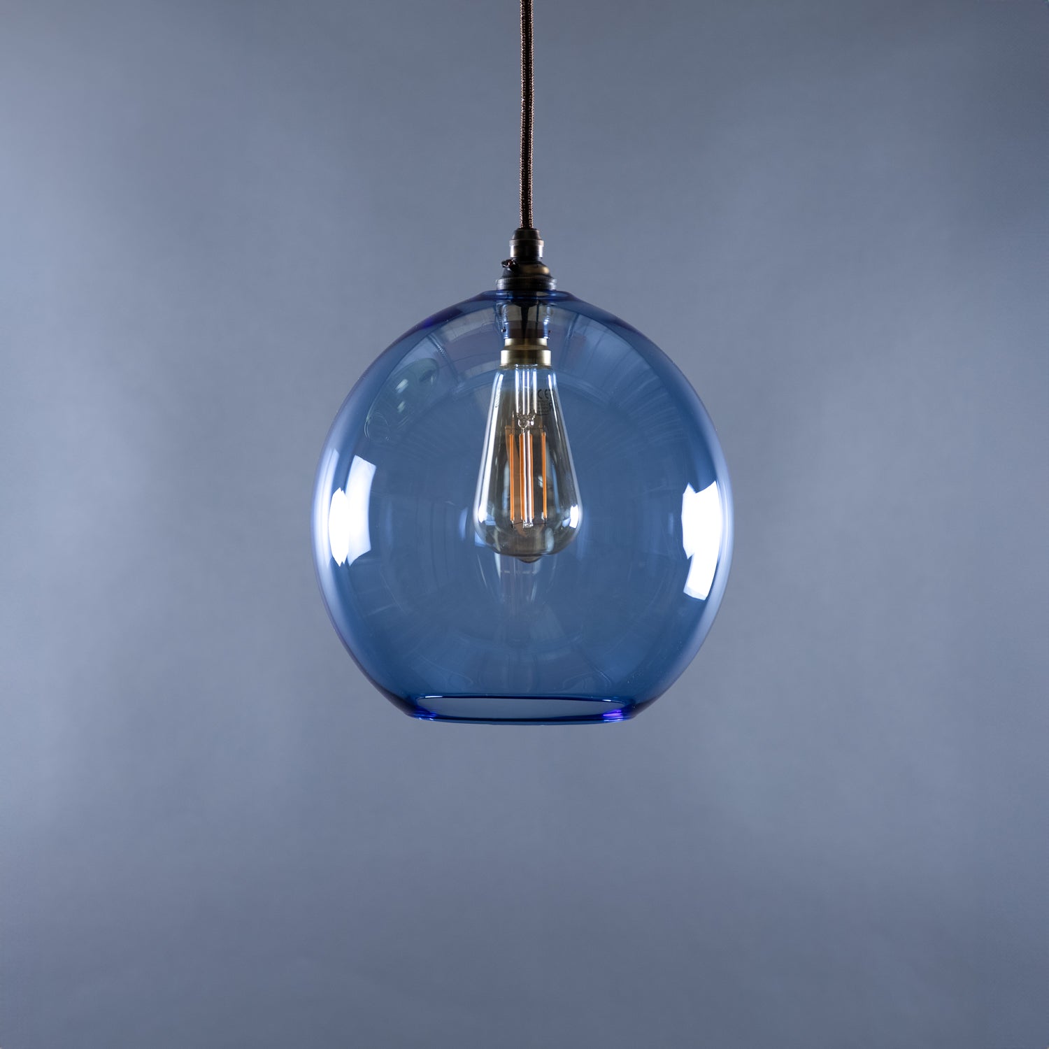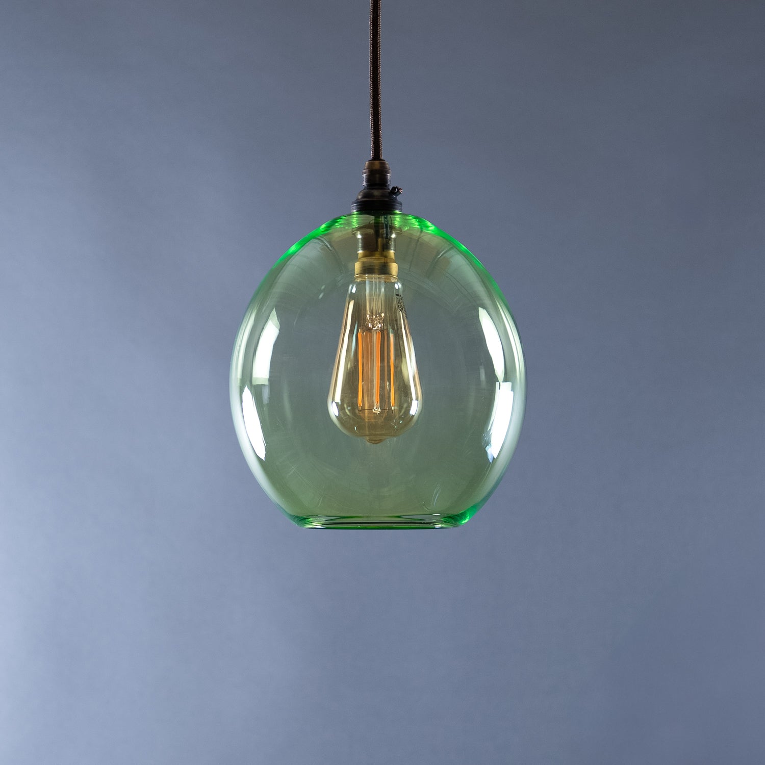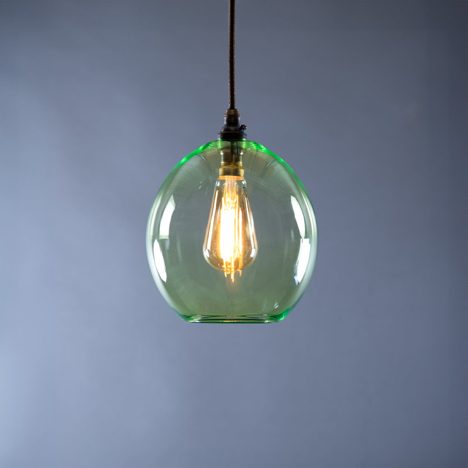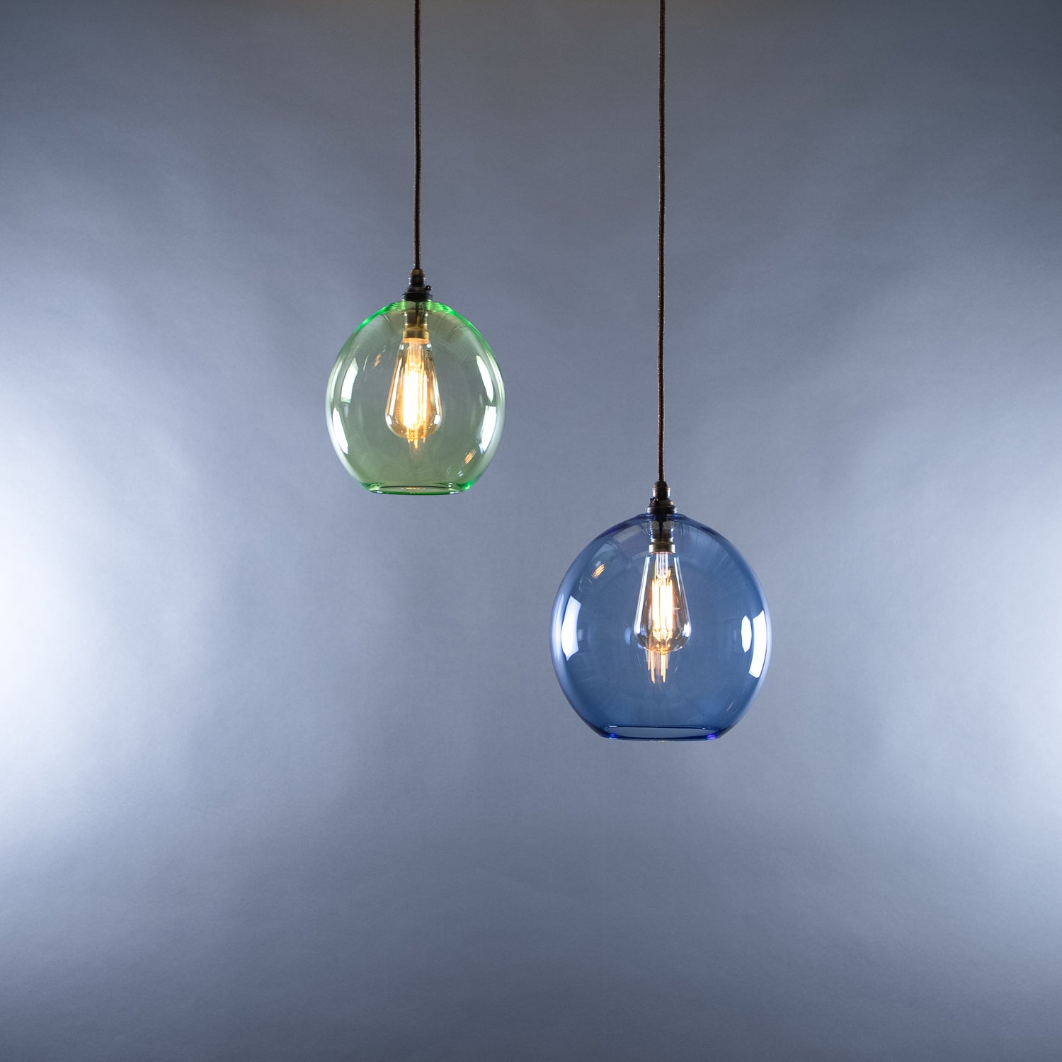 Our British made coloured glass Wanda pendant light is handblown in our Glow Glass Blowing Studio, each pendant light is a unique expression of creativity and craftsmanship. Available in our 12 glass colours. (please note Lime can only be blown in the standard size, if large is ordered in error, we will contact to inform this option is not possible)
