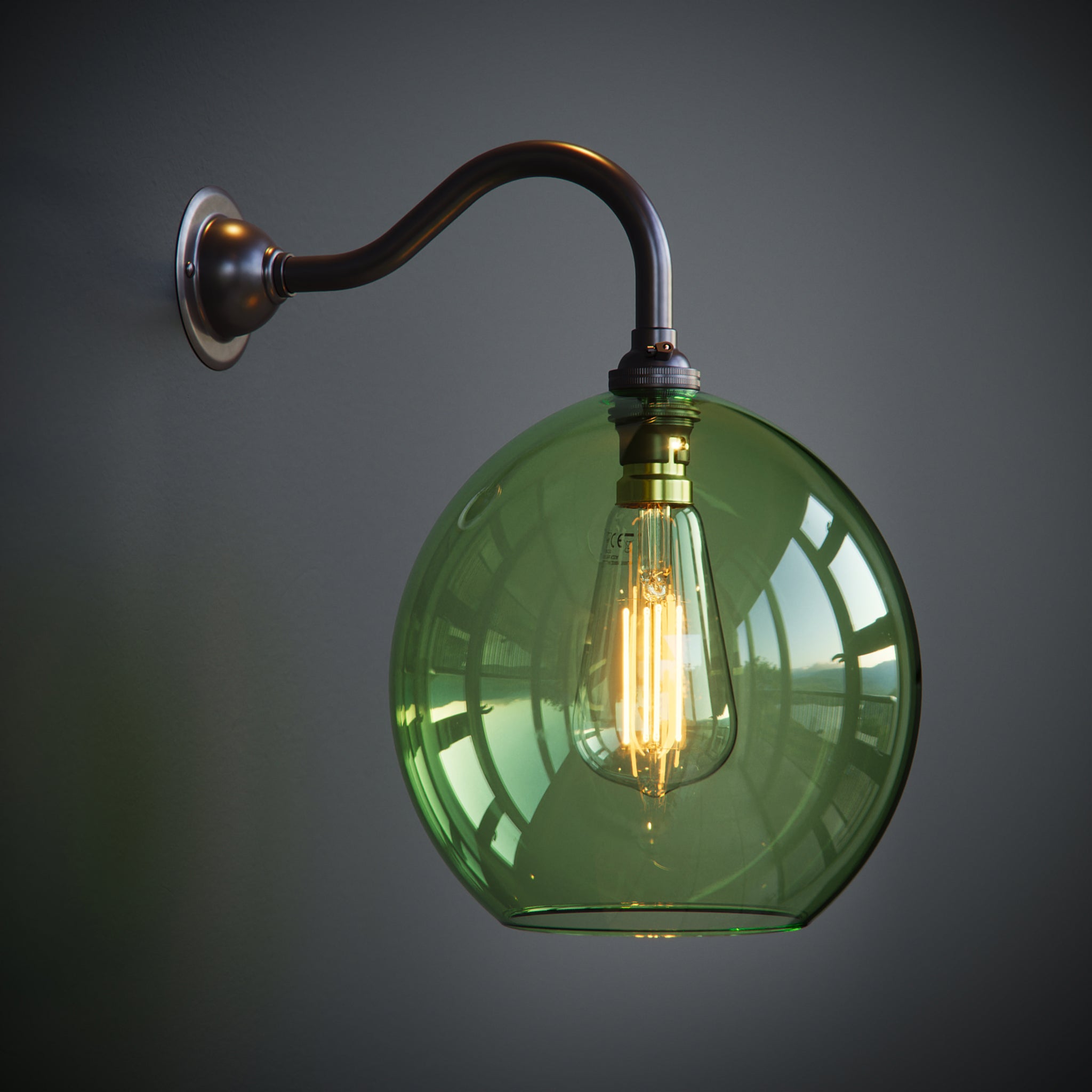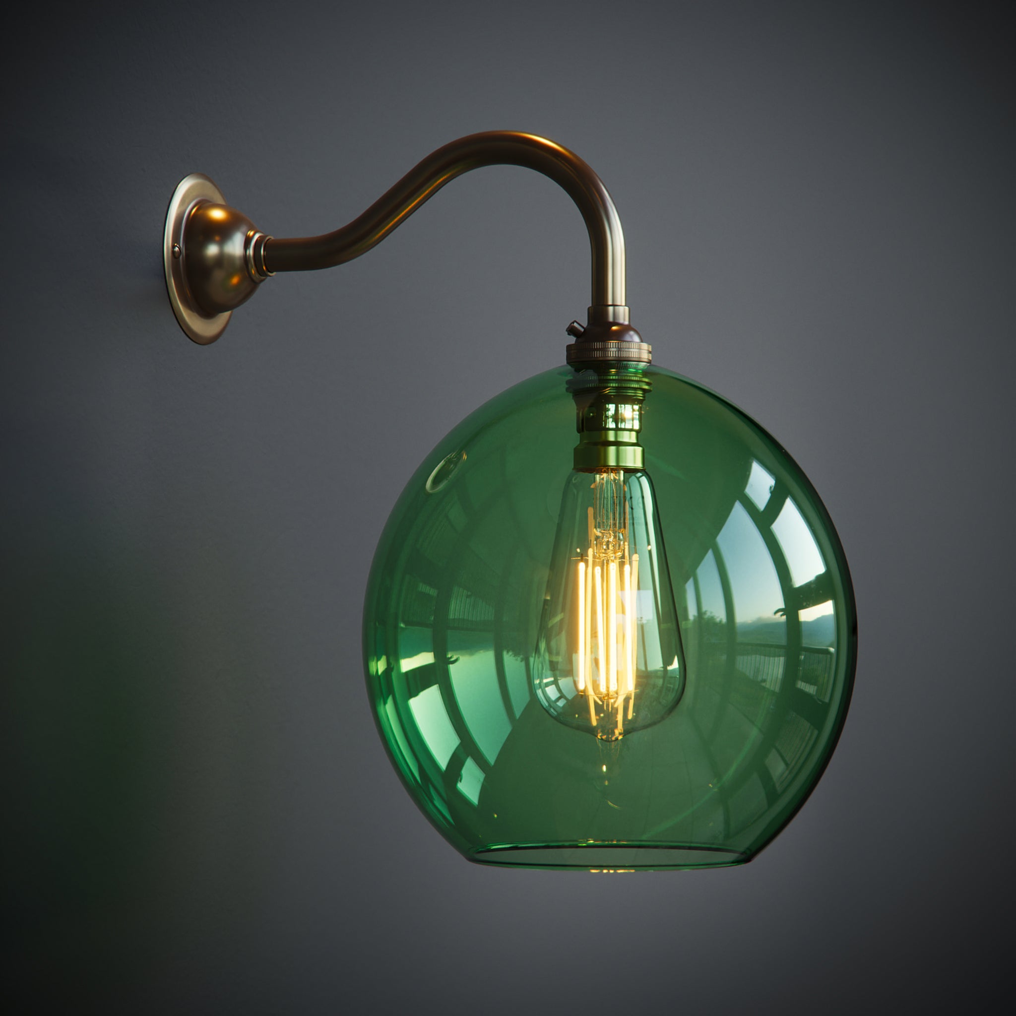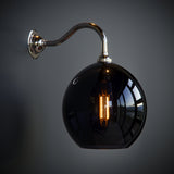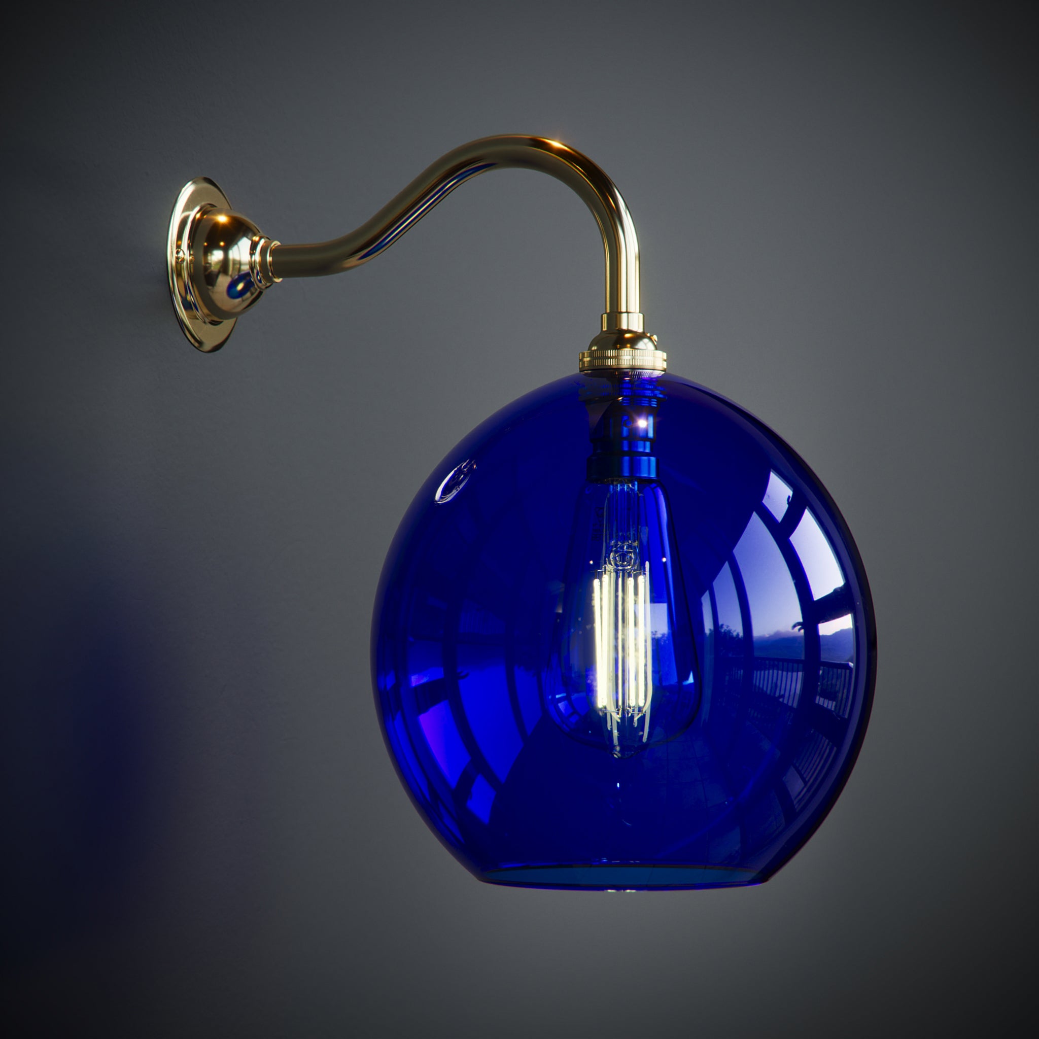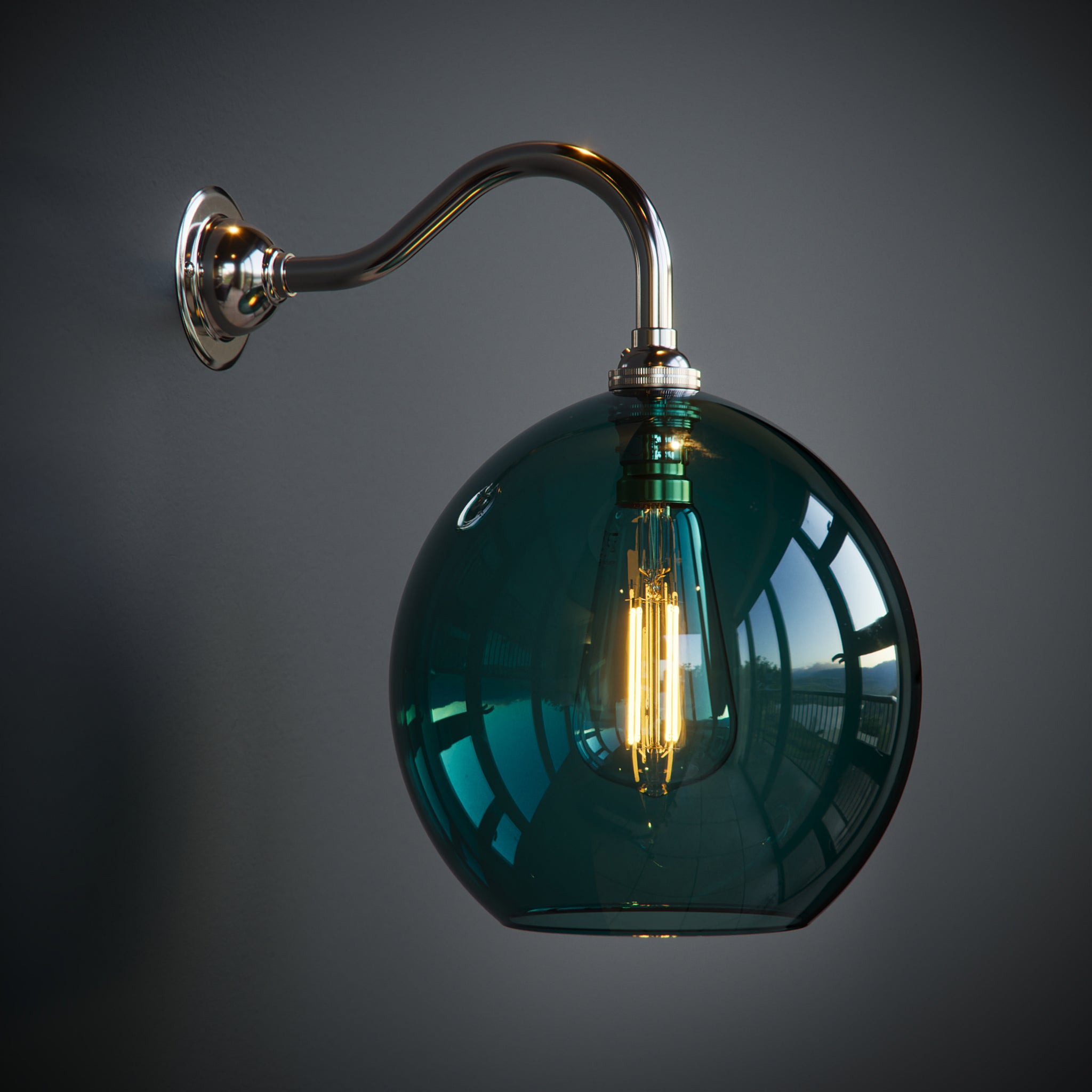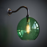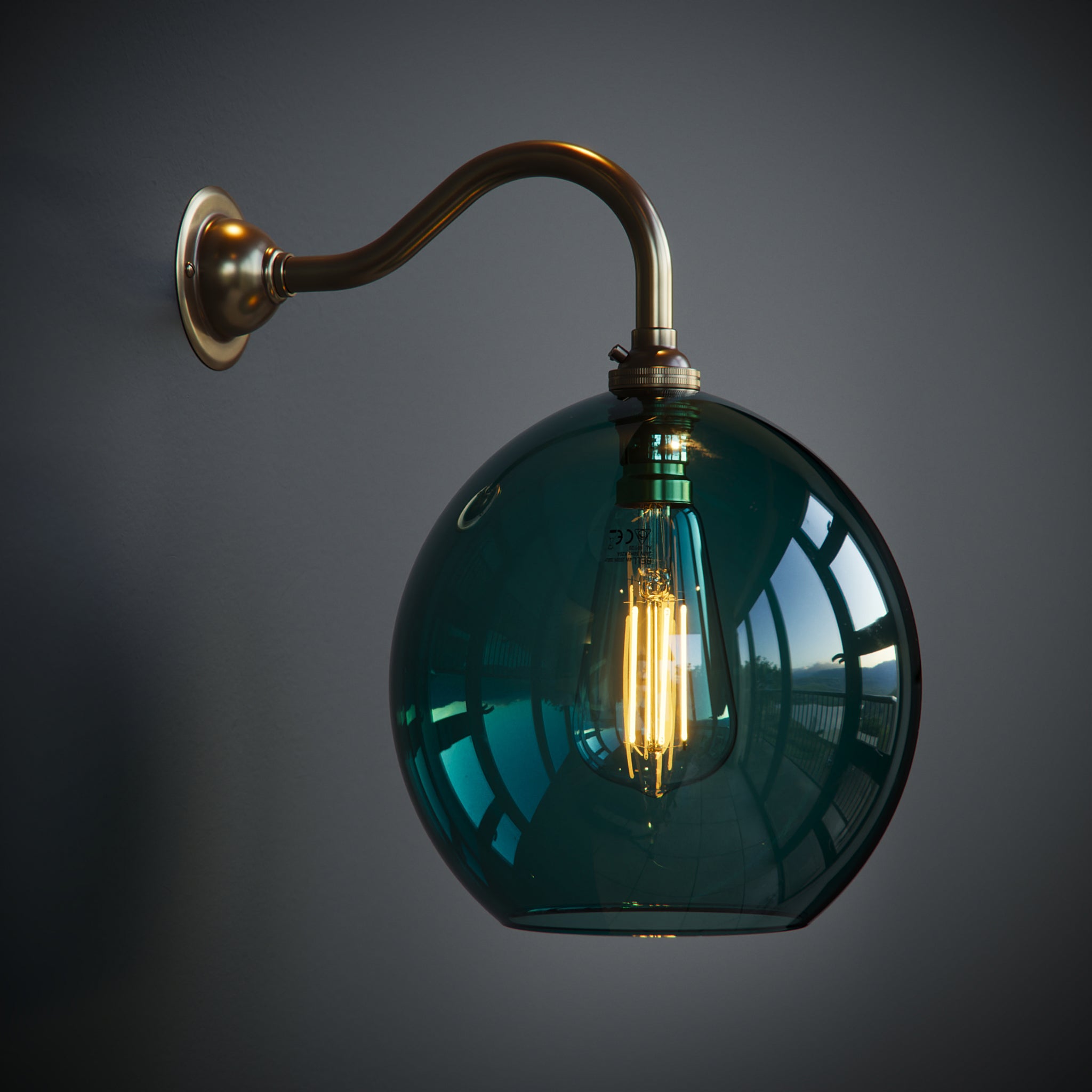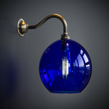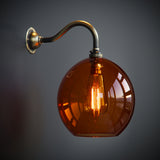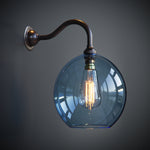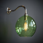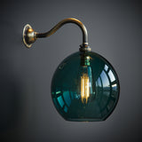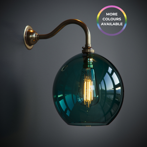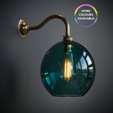 Wanda Globe Classic Curved Arm Wall Light – Handblown Coloured Glass Lighting, Made in Britain
