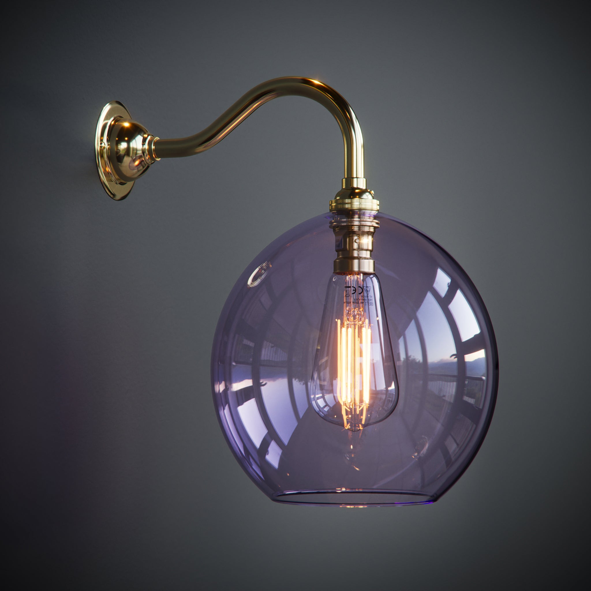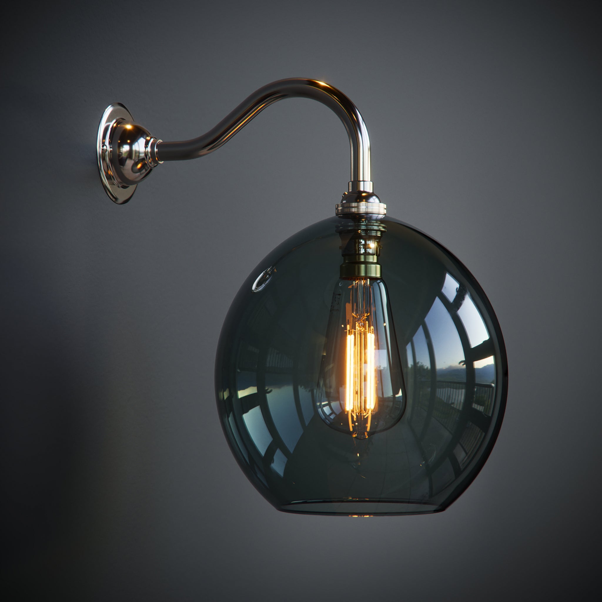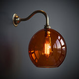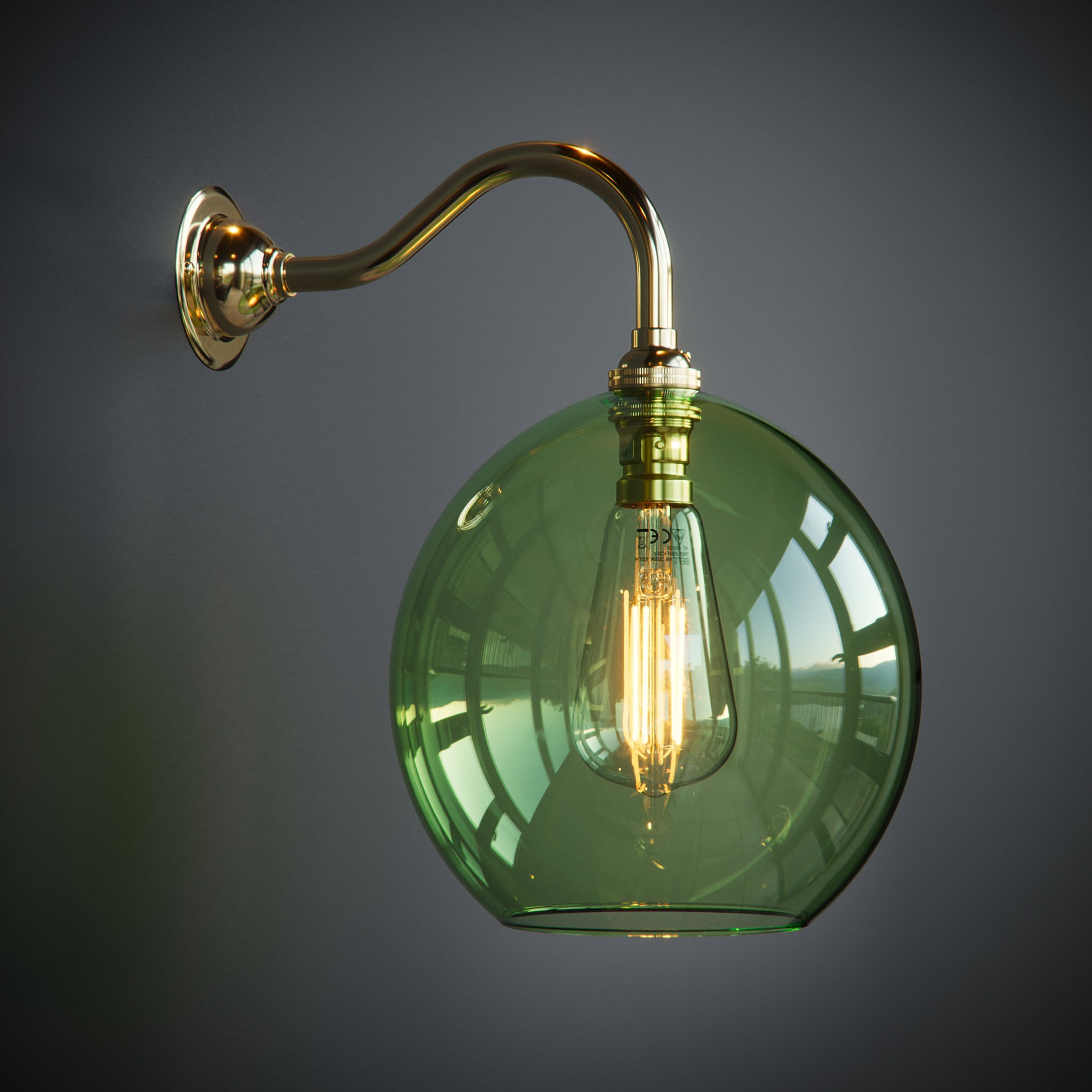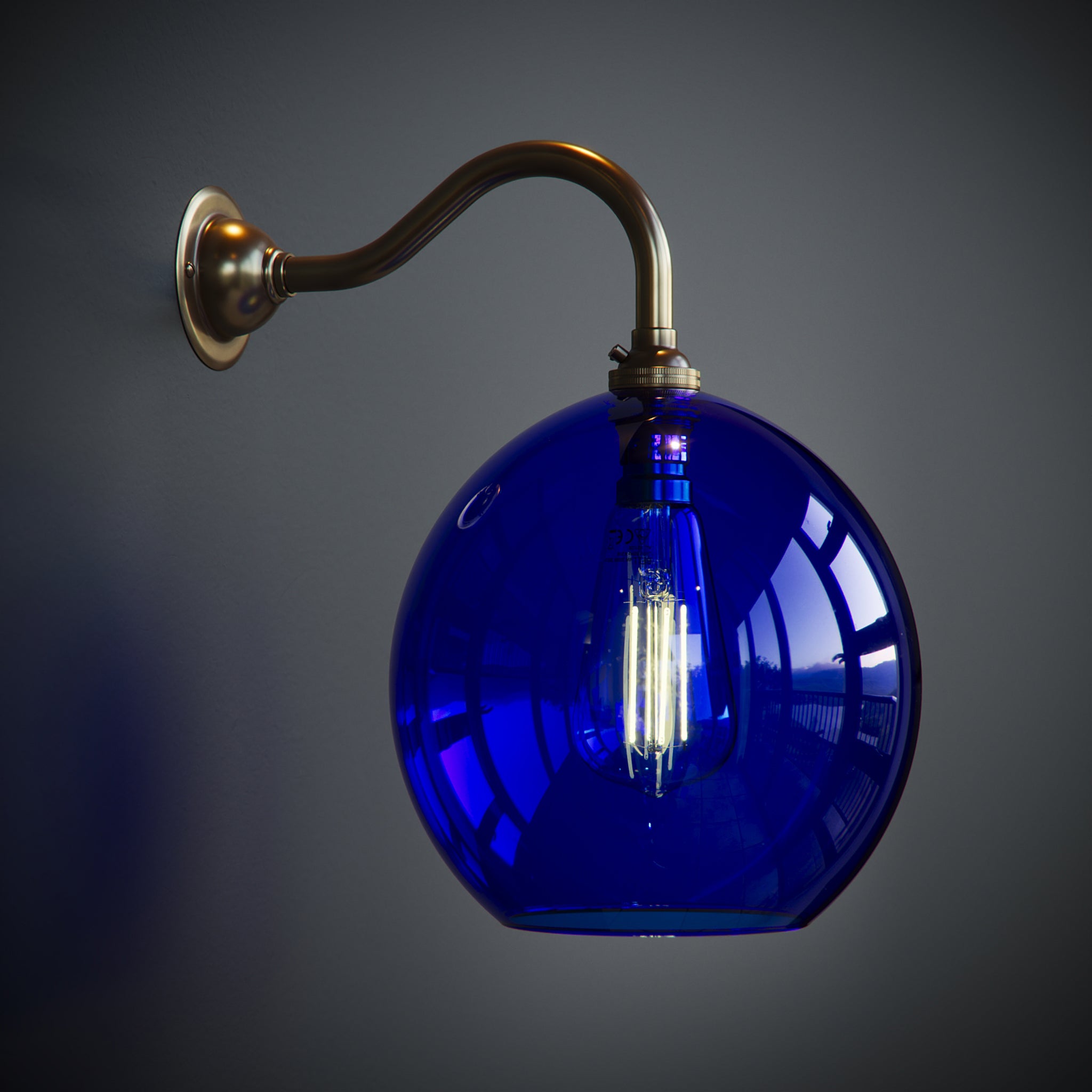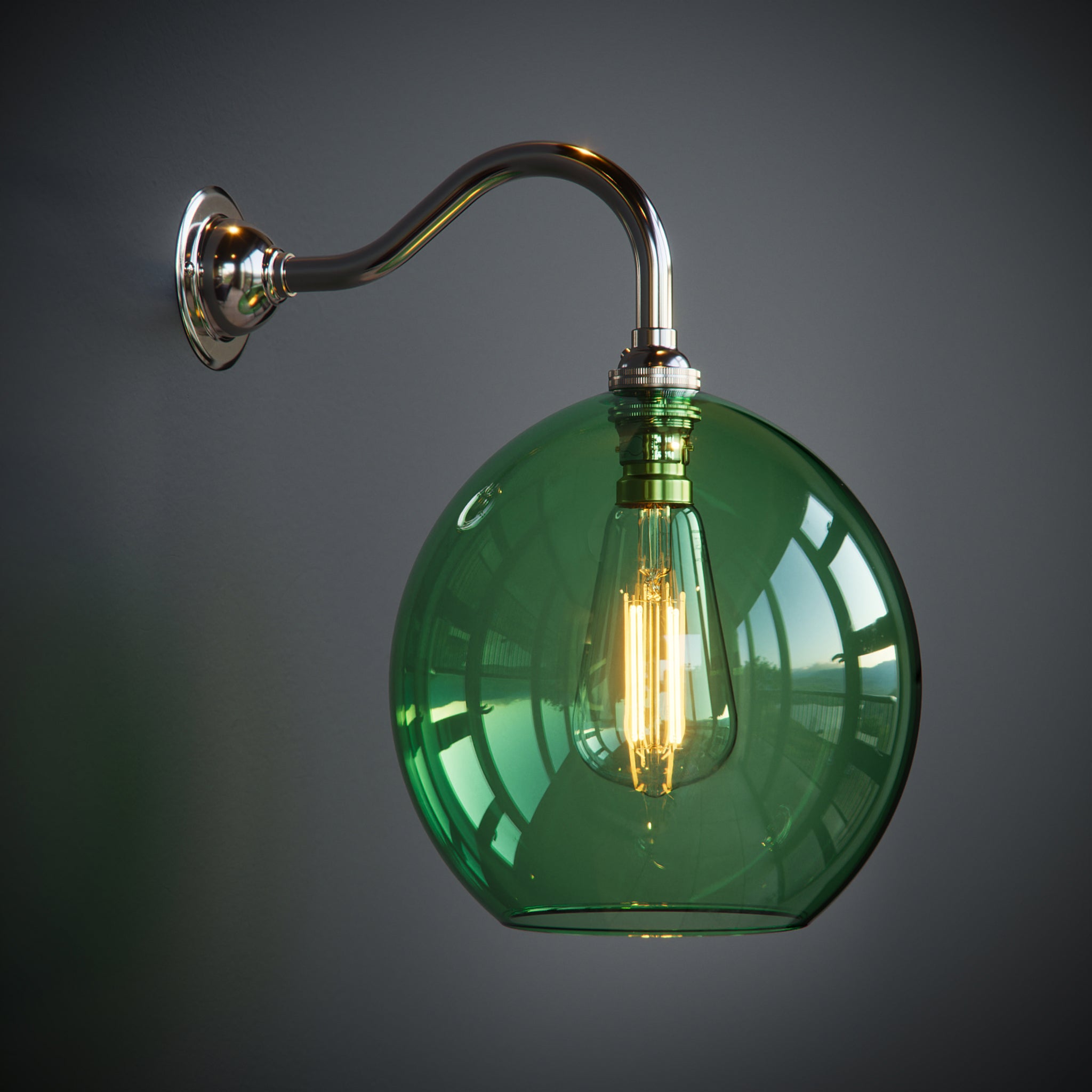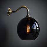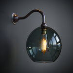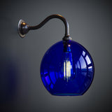 Wanda Globe Classic Curved Arm Wall Light – Handblown Coloured Glass Lighting, Made in Britain