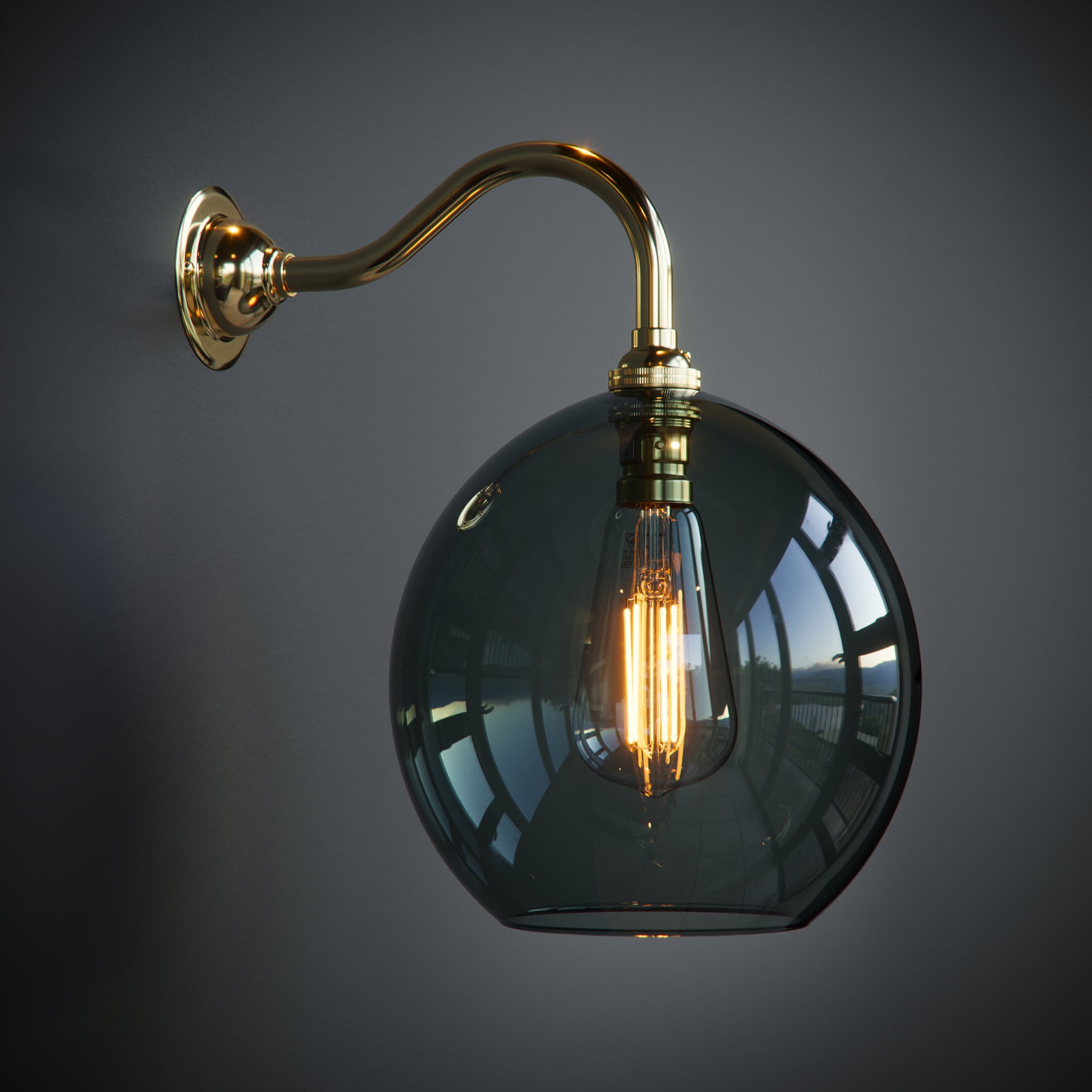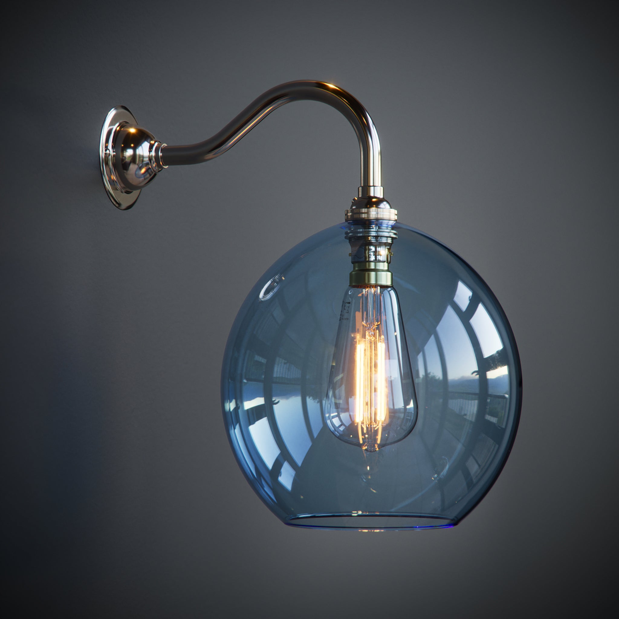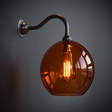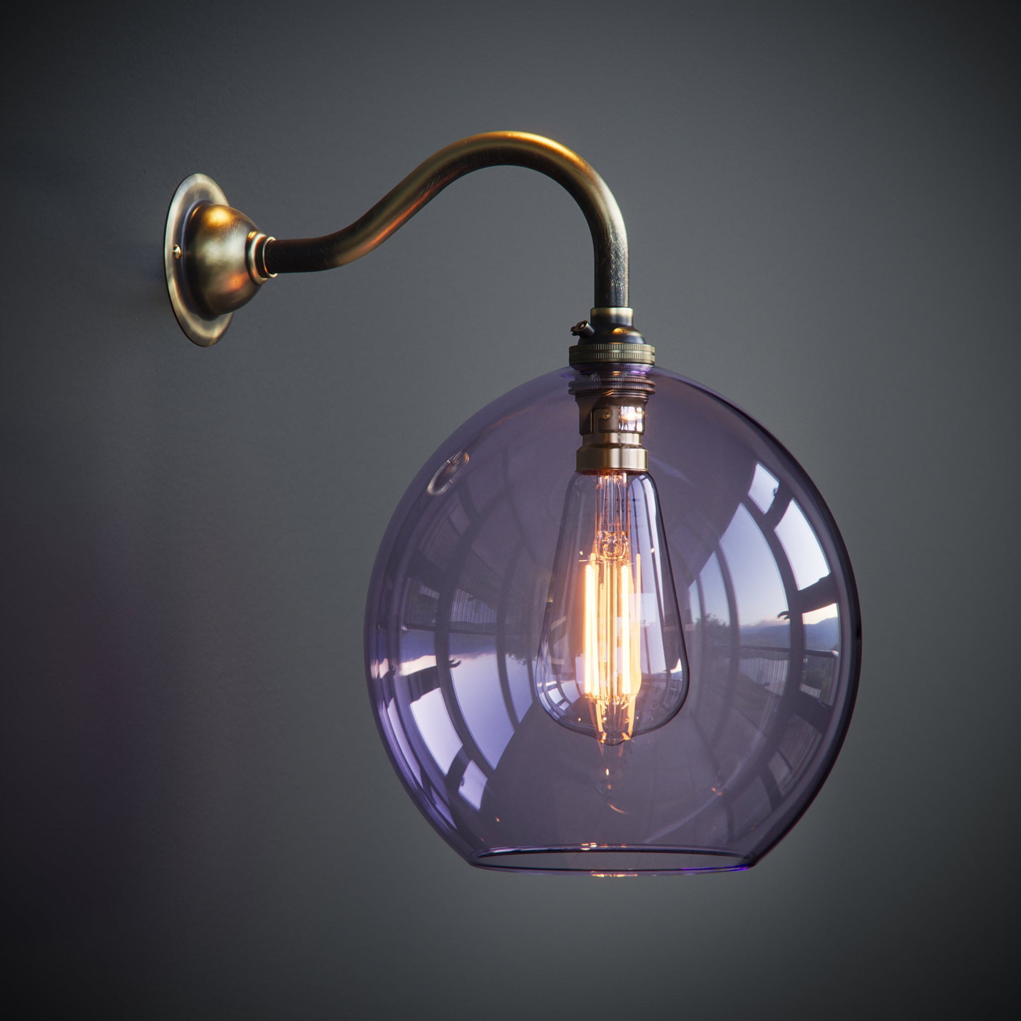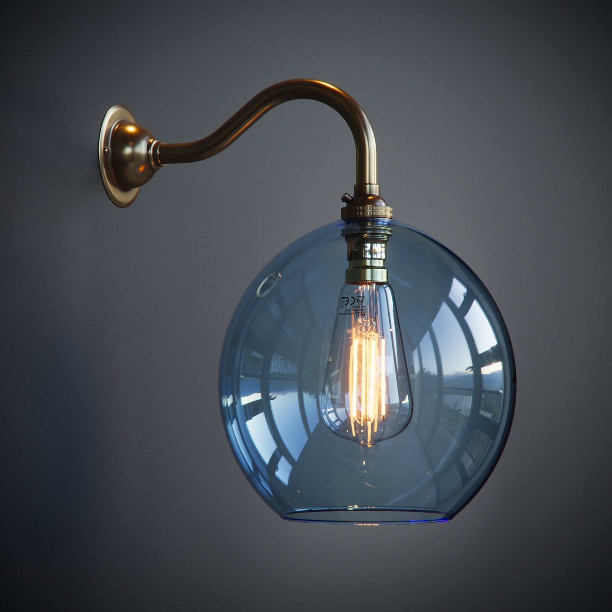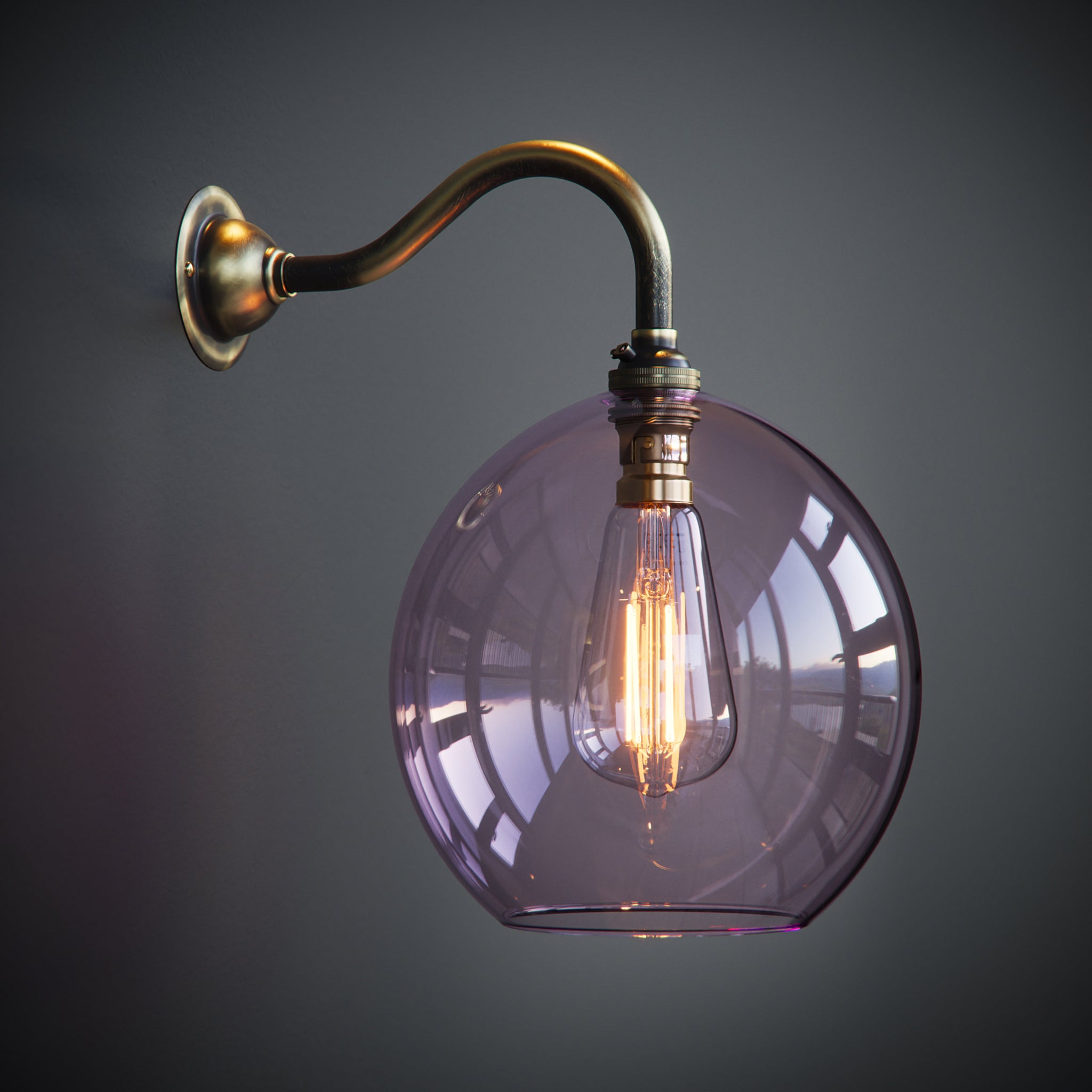 Wanda Globe Classic Curved Arm Wall Light – Handblown Coloured Glass Lighting, Made in Britain