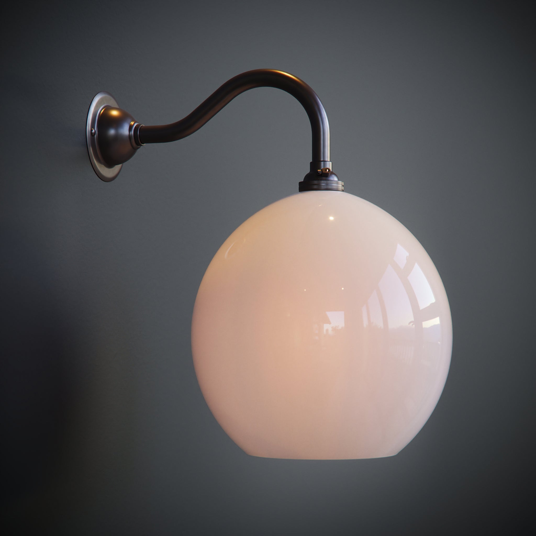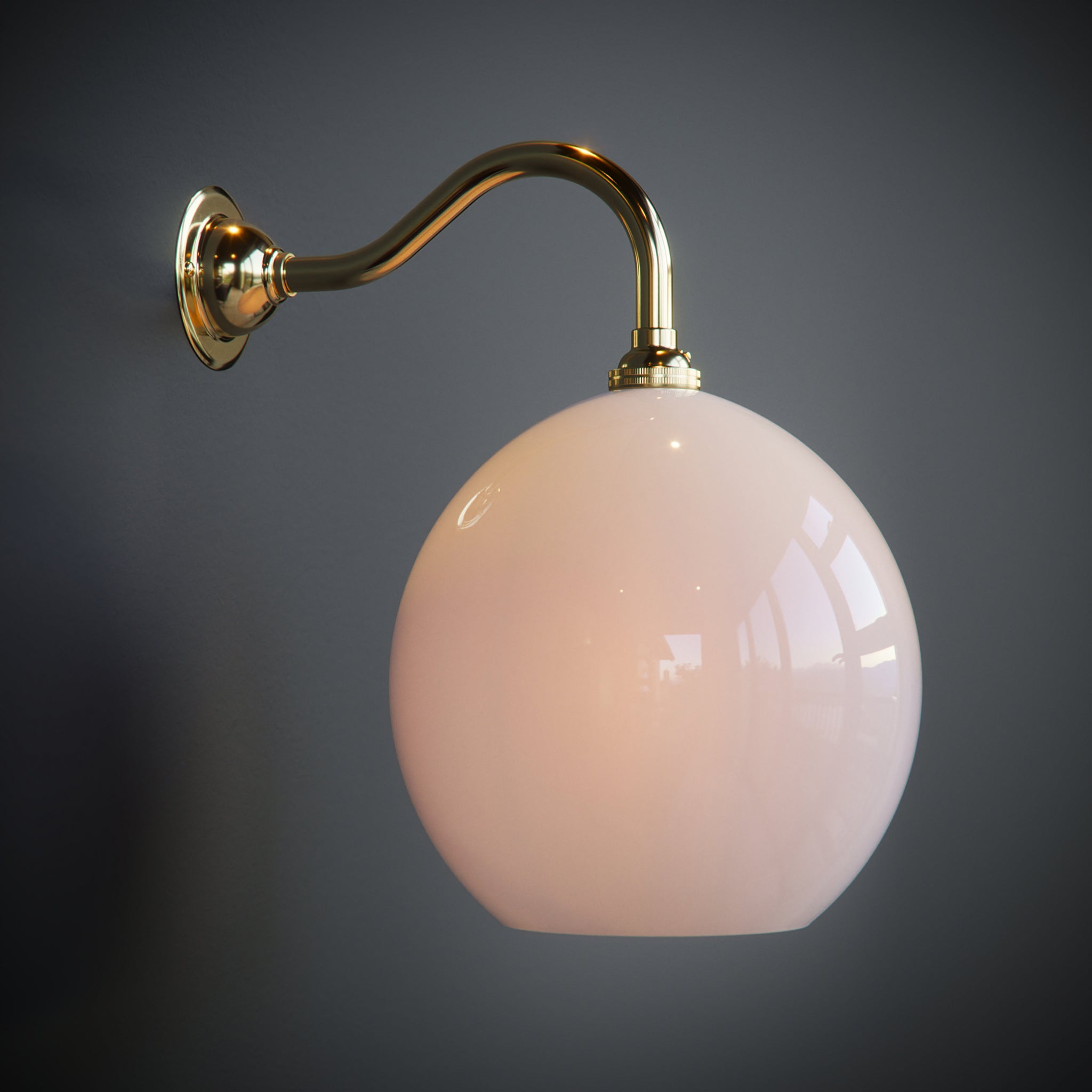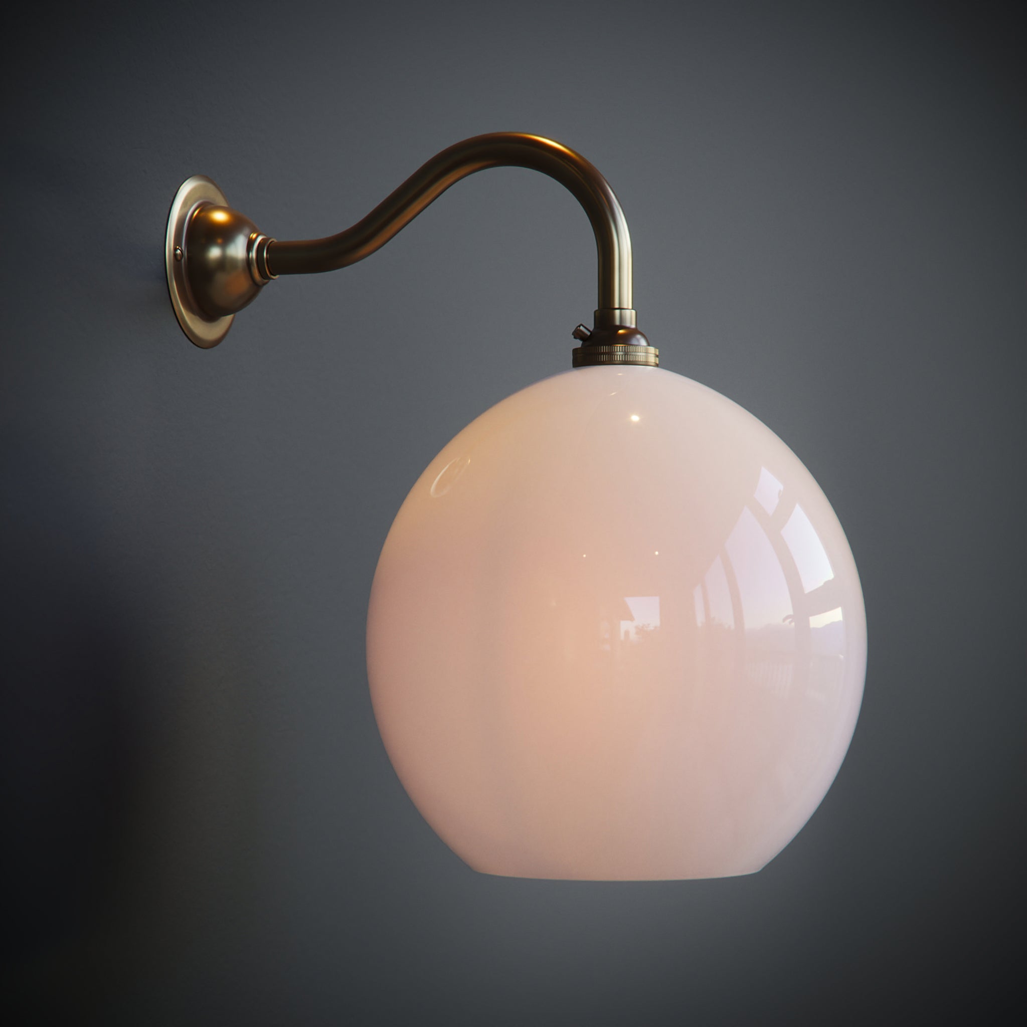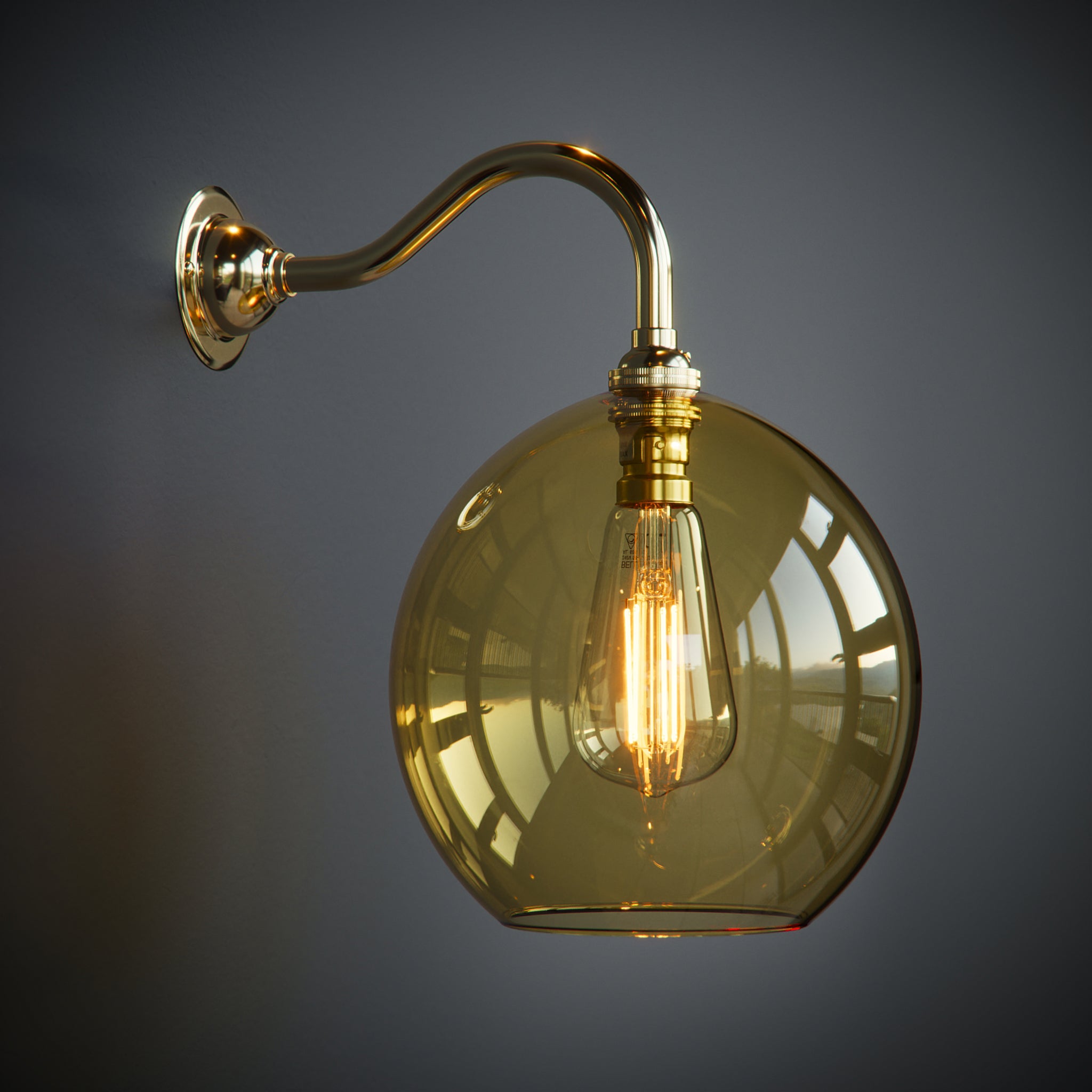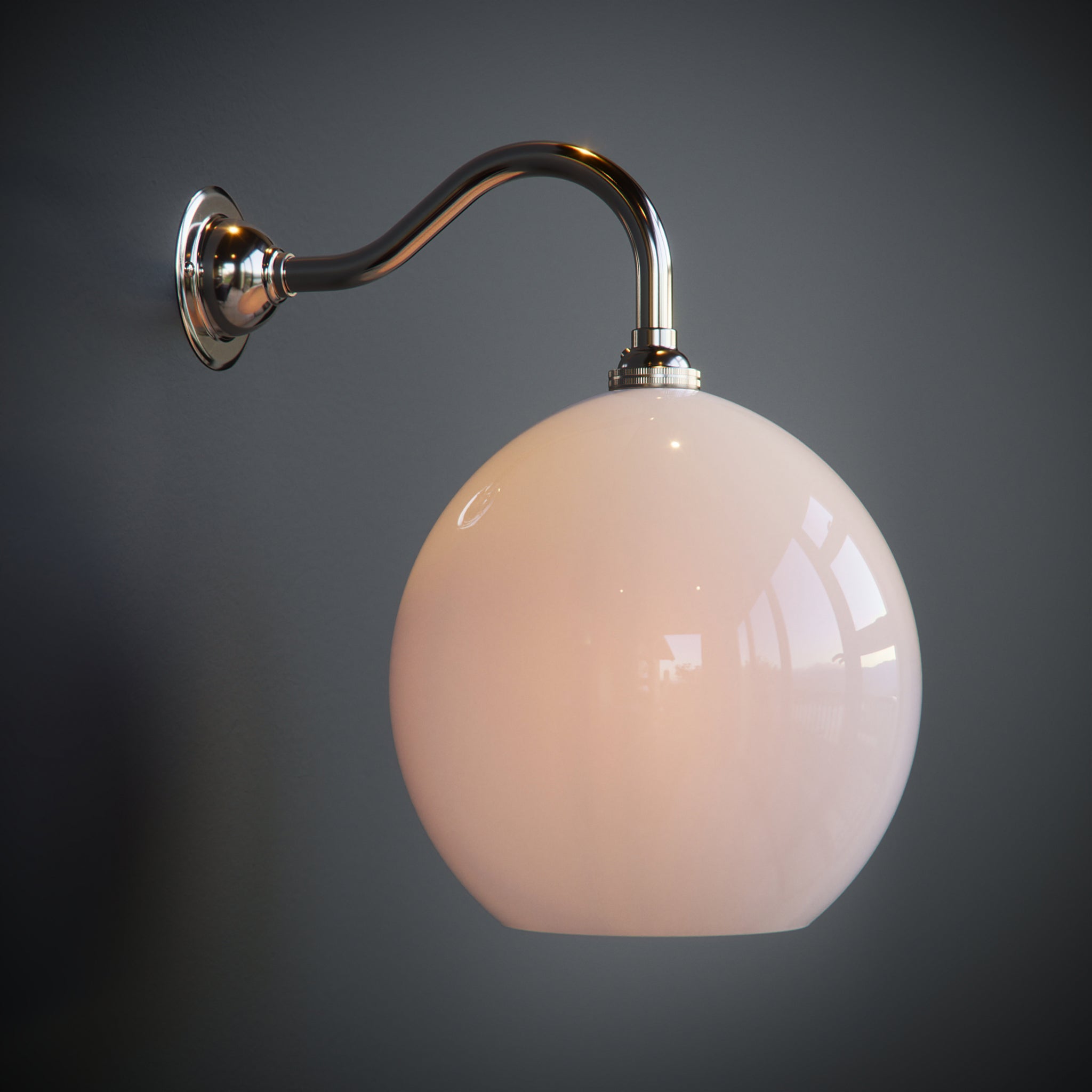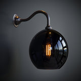 Wanda Globe Classic Curved Arm Wall Light – Handblown Coloured Glass Lighting, Made in Britain