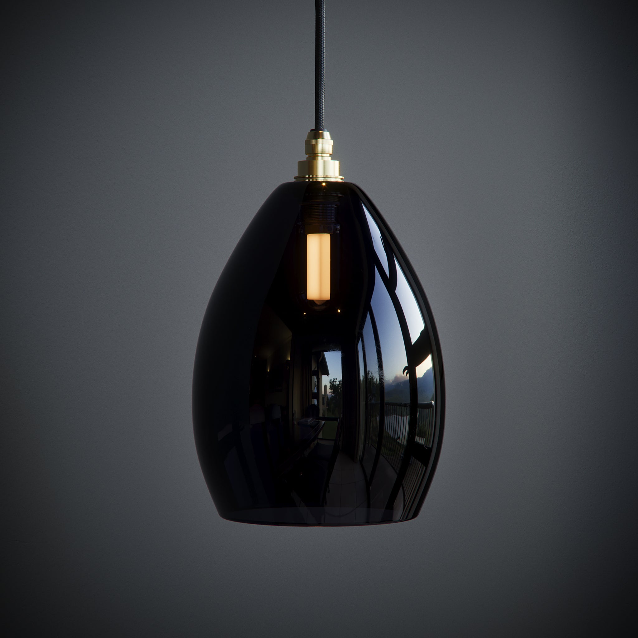 The Jules Inky Glass bathroom pendant is available in small and medium sizes only (see technical data for full dimensions). It works beautifully as a single pendant or hung in pairs, with its clean shape suiting both contemporary and more traditional spaces.