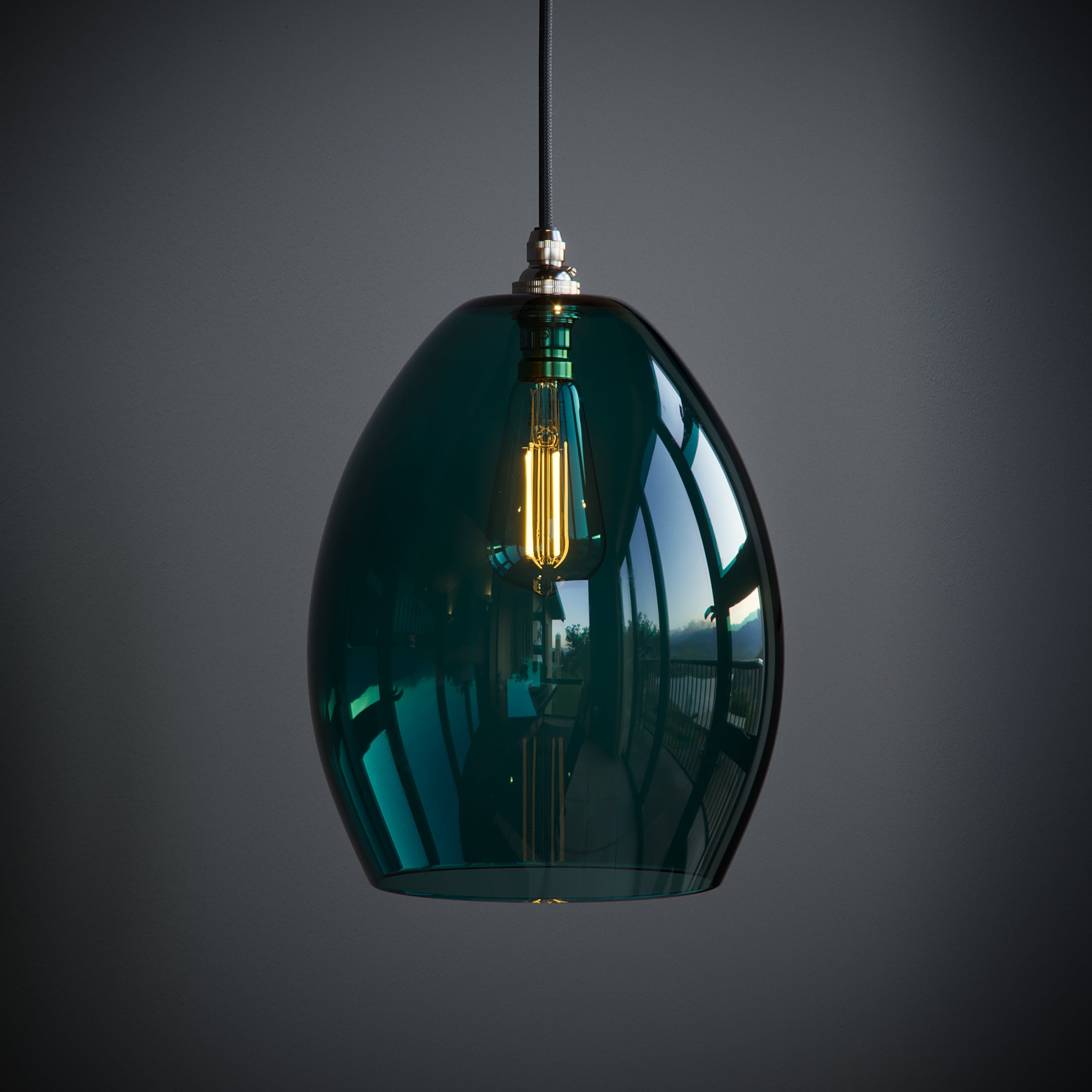 Jules Teal Glass Pendant Light – Handblown in Britain