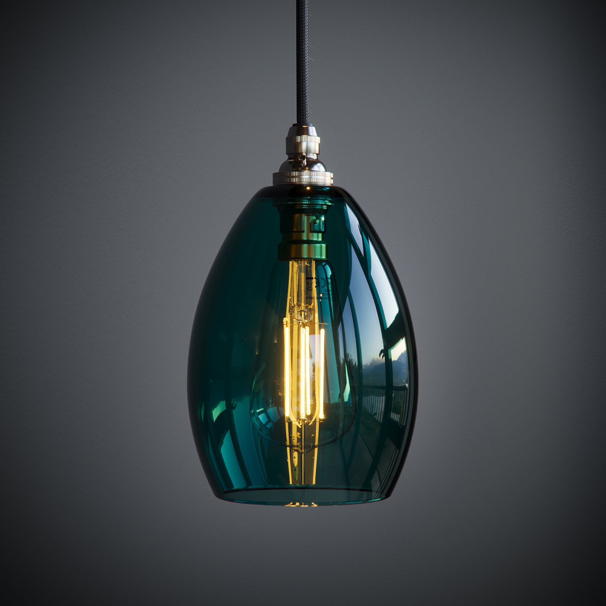 The teal glass casts a soft, warm glow when lit, creating atmosphere and depth in kitchens, dining areas, or bedrooms. By day, the rich colour catches the light beautifully, adding subtle character and interest to your space.