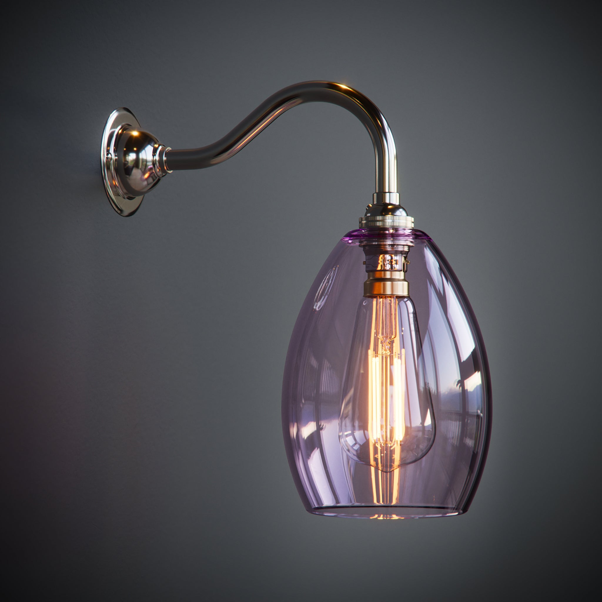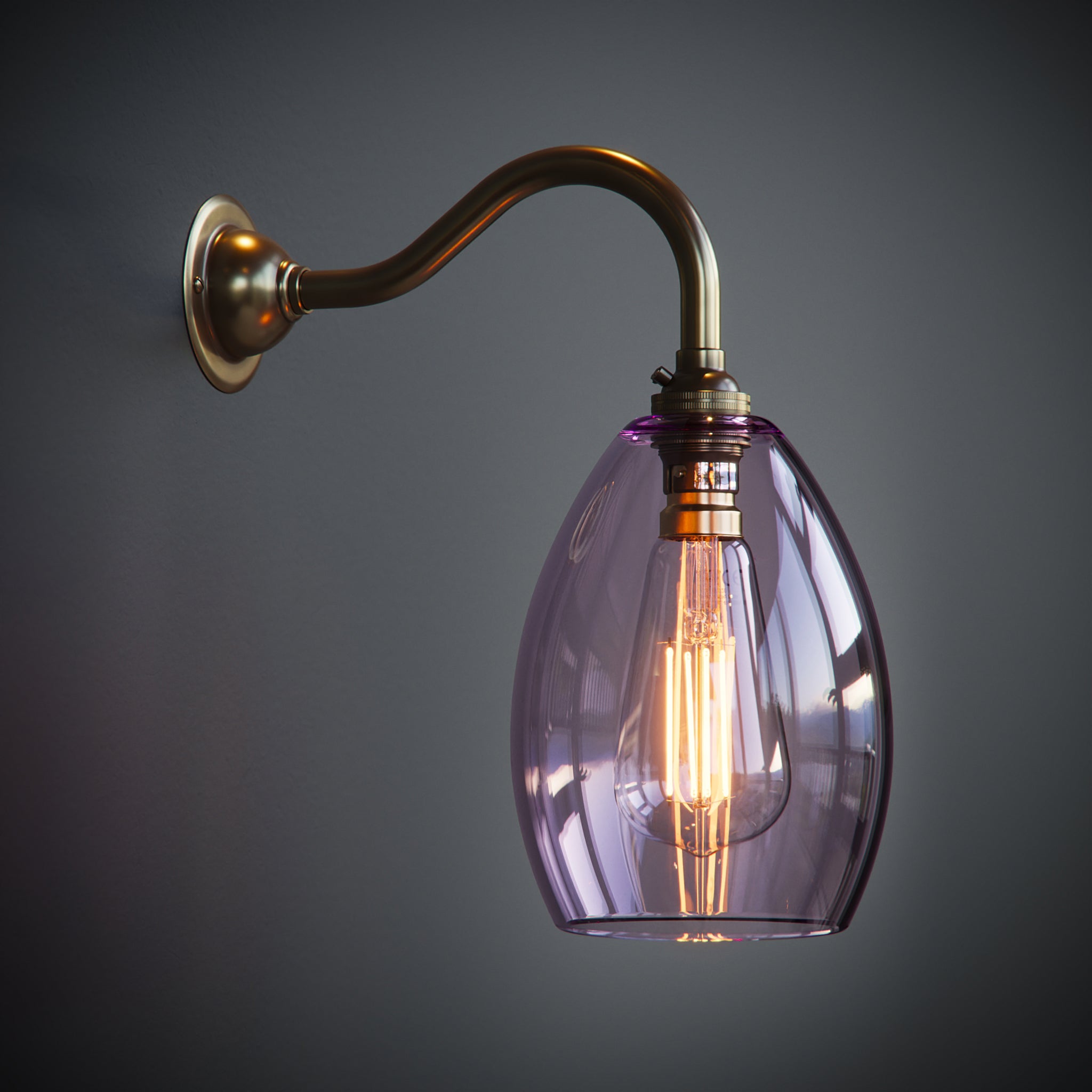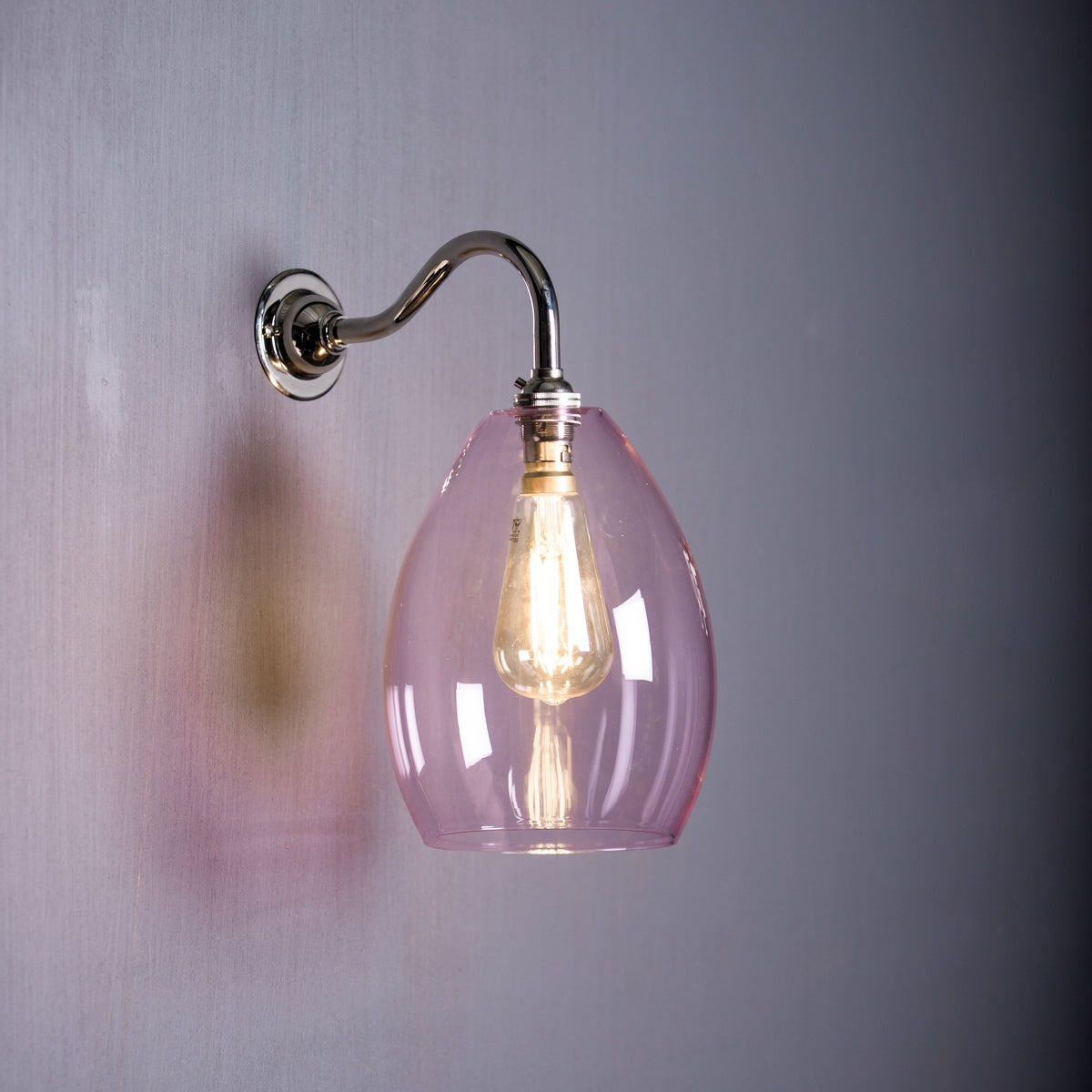 The Jules wall light features a handblown pink glass shade on a classic curved arm bracket. Its soft colour brings warmth and a gentle touch of charm to any room.
