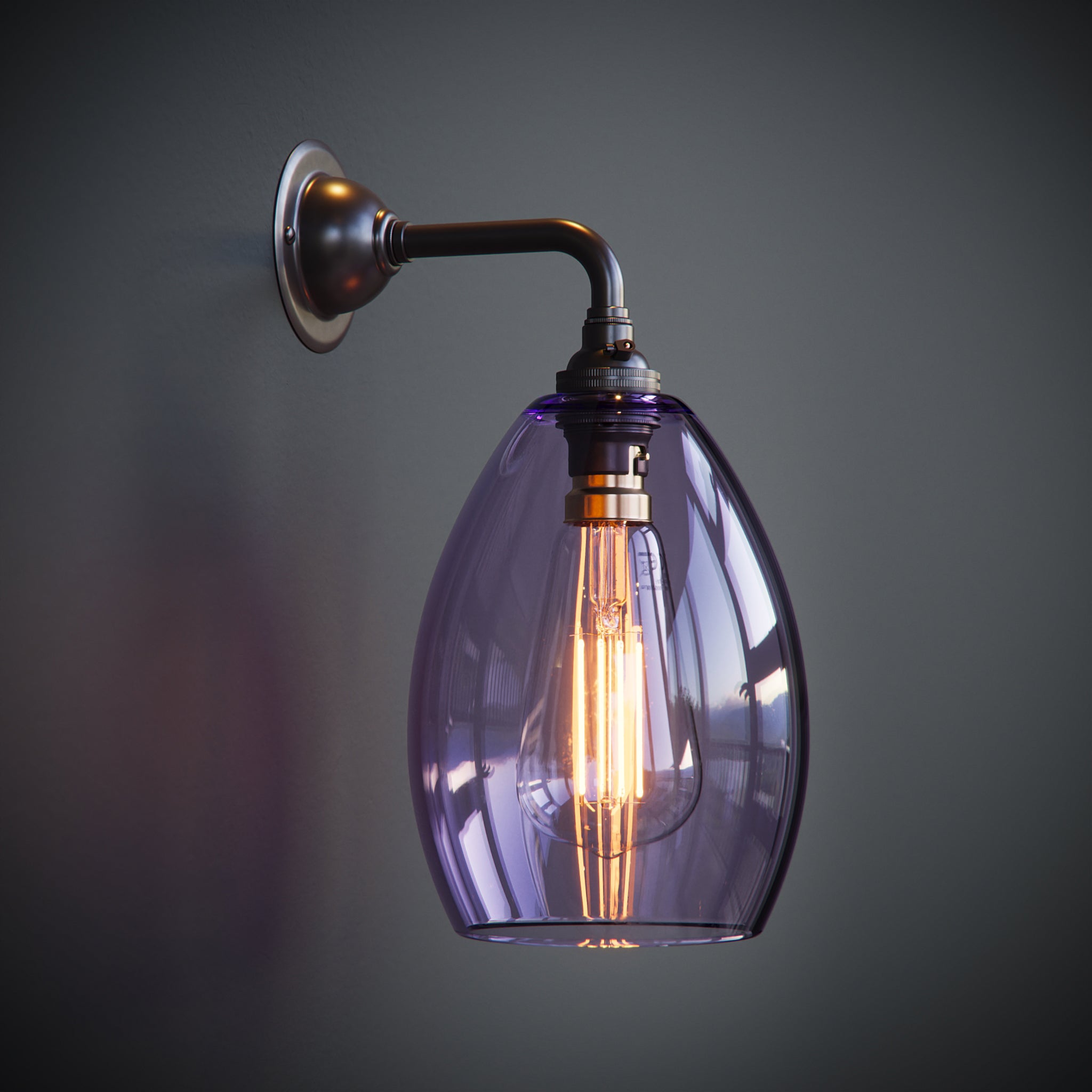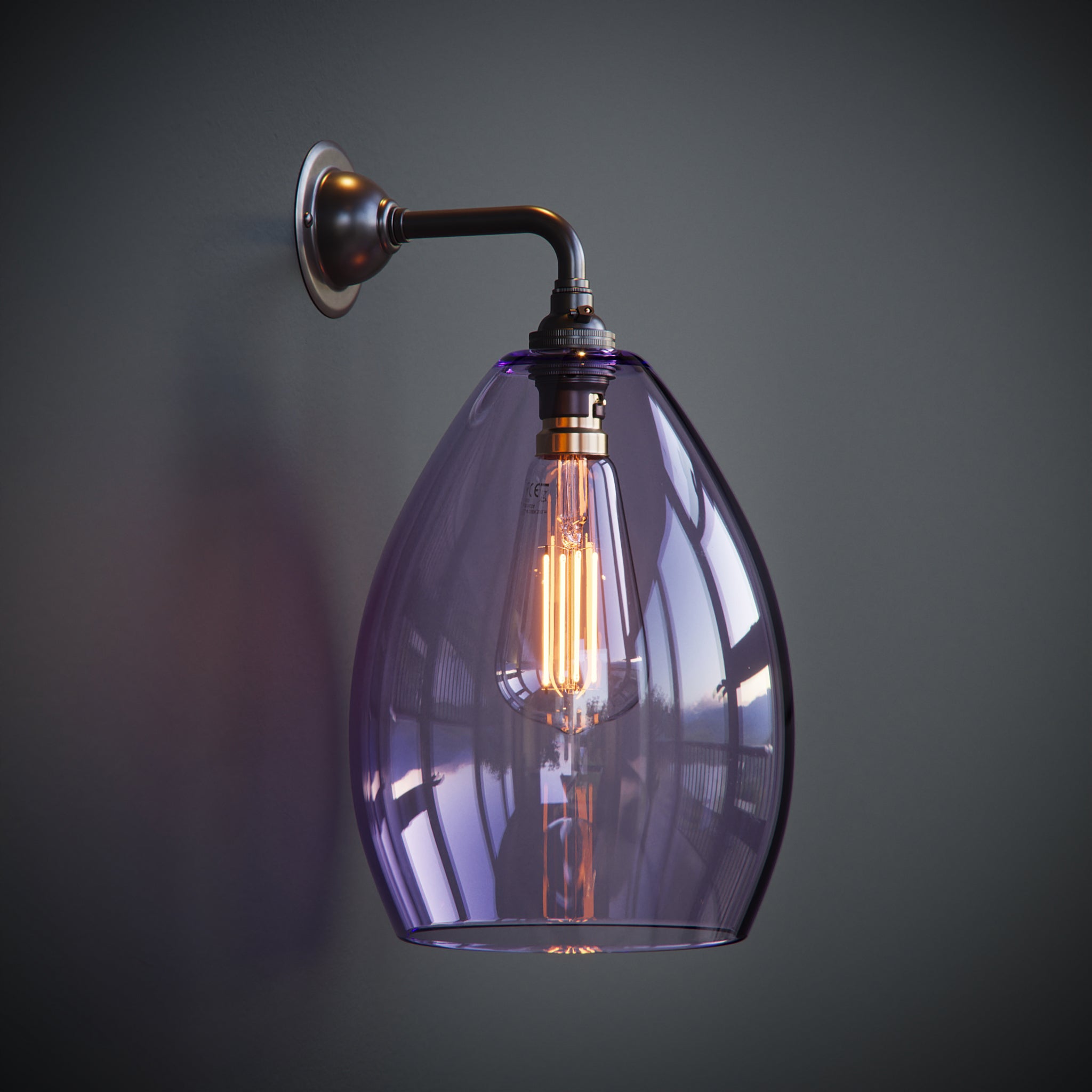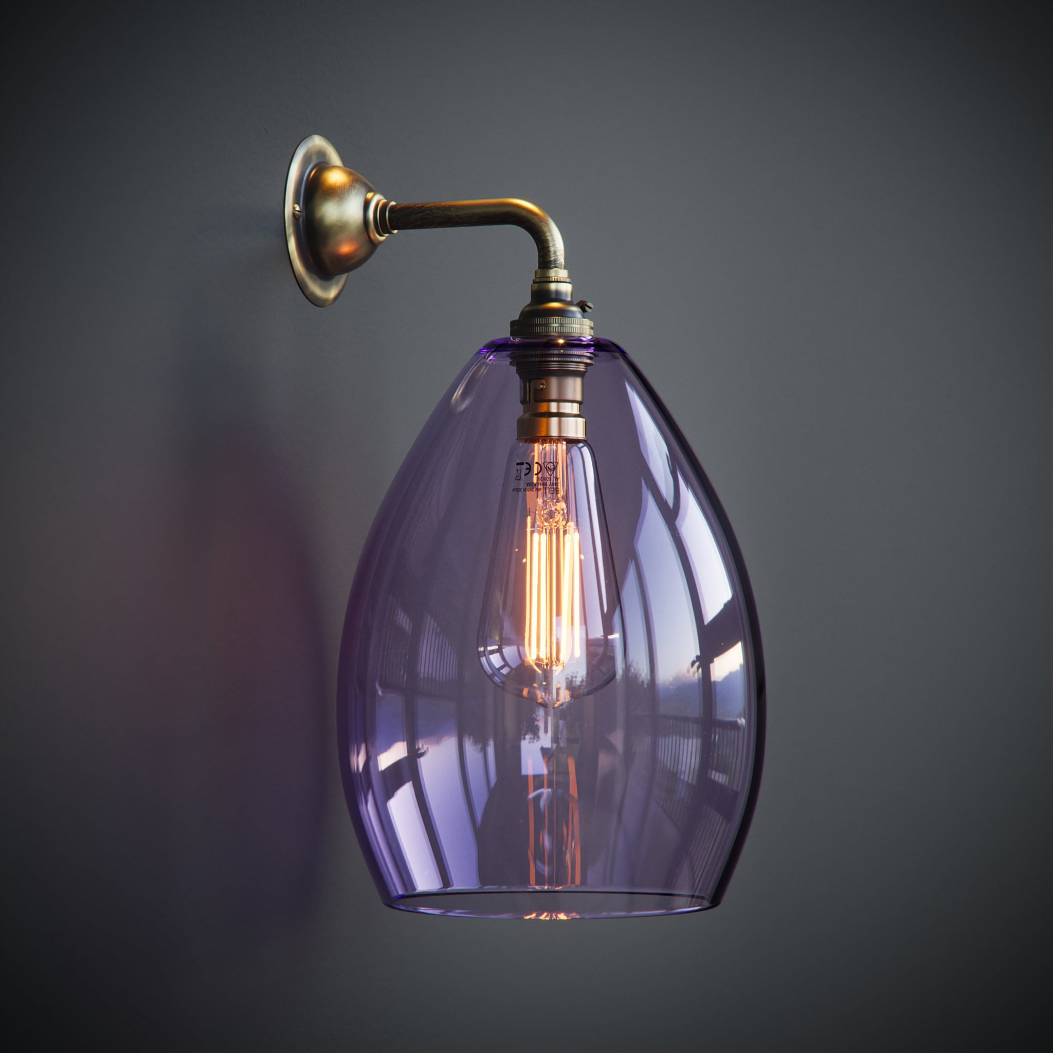 Introduce a gentle touch of colour with the Jules wall light, featuring a handblown lilac glass shade on a contemporary bracket. The soft purple tone adds character without overwhelming, giving a calm and welcoming feel to any space.