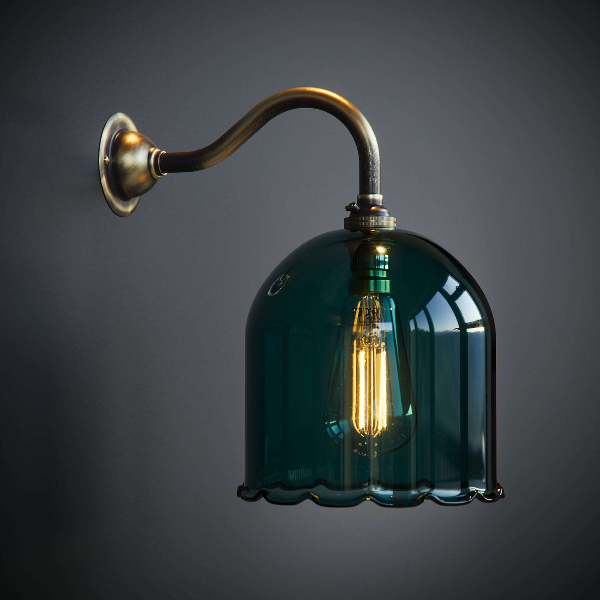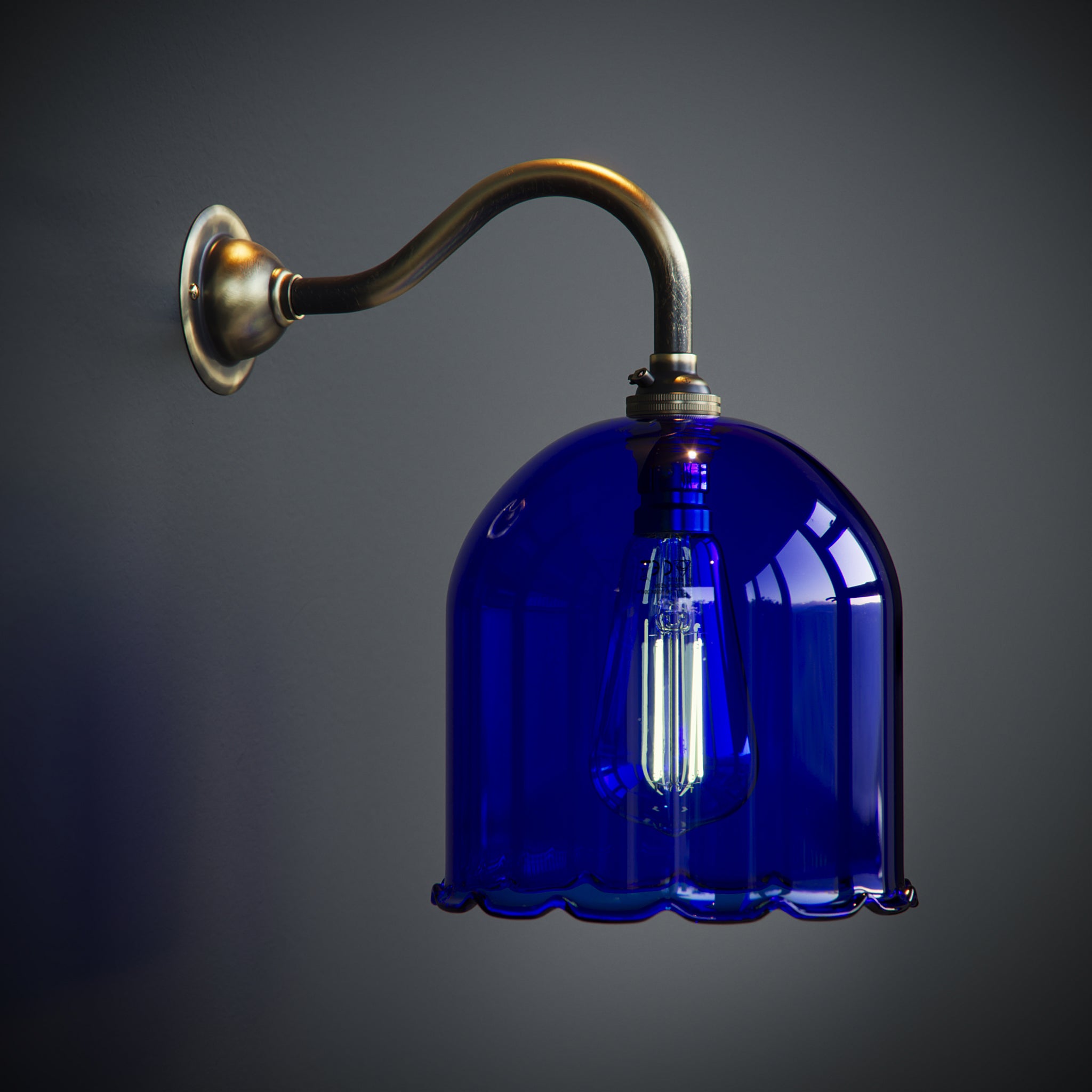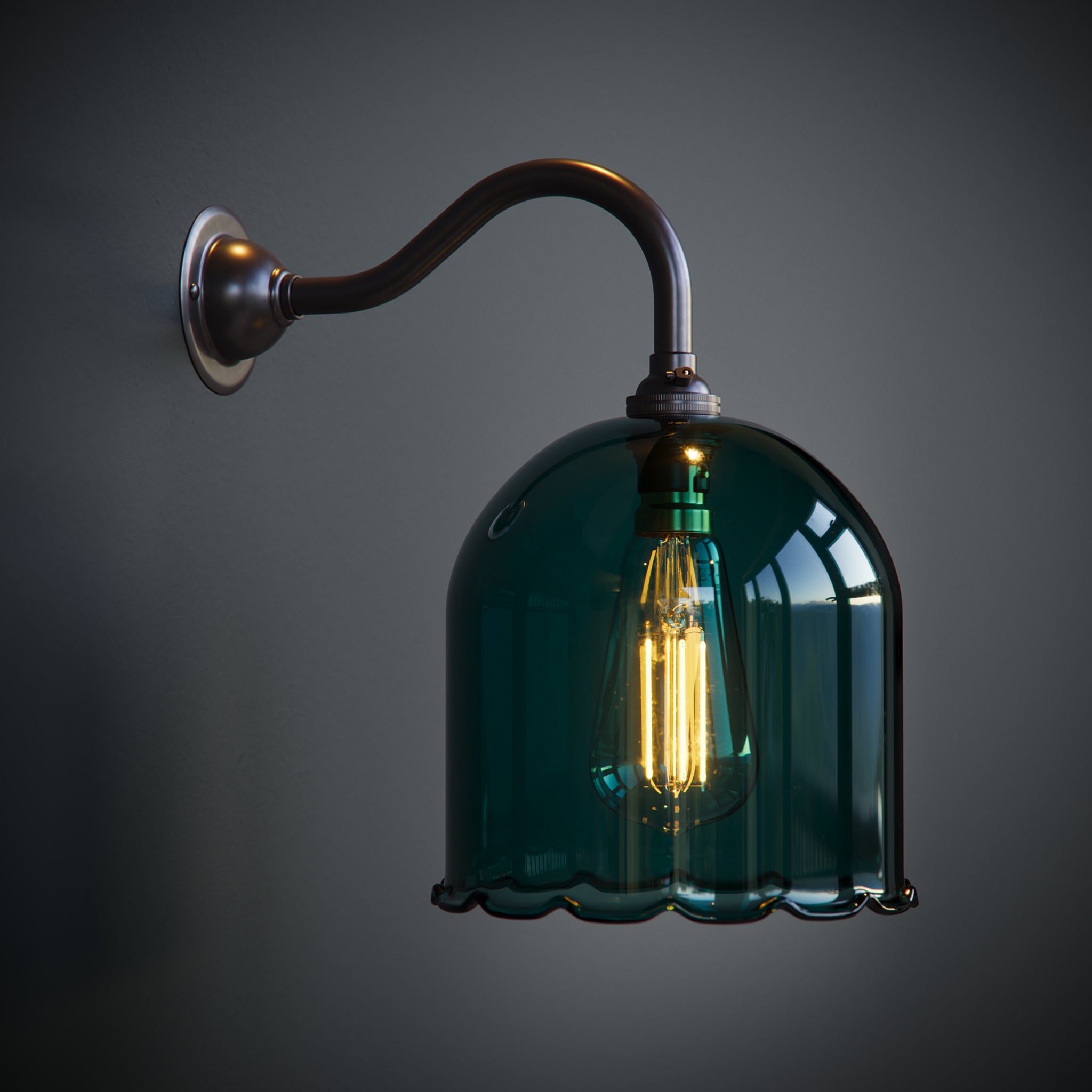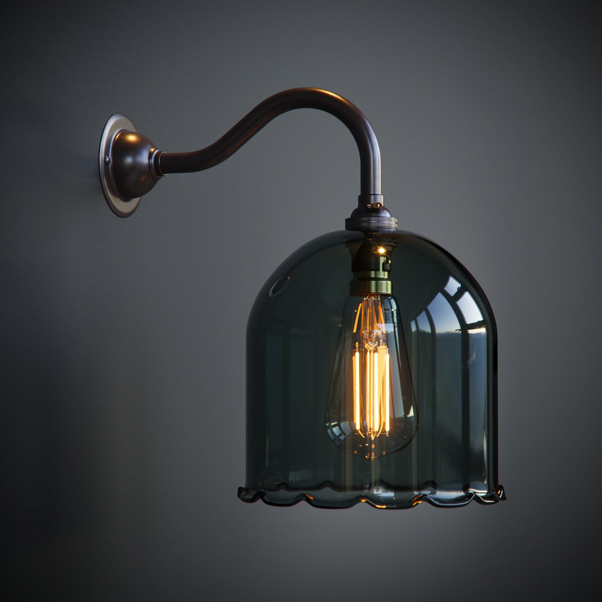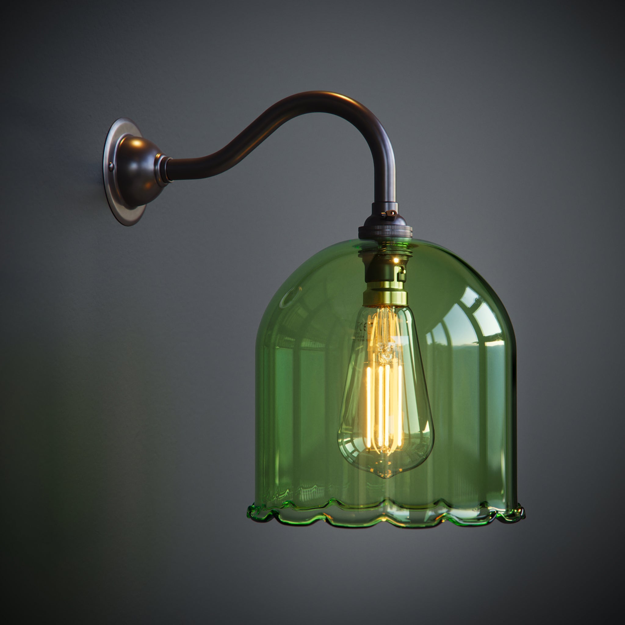 Frieda Frilled Classic Curved Arm Wall Light – Handblown Coloured Glass Lighting, Made in Britain