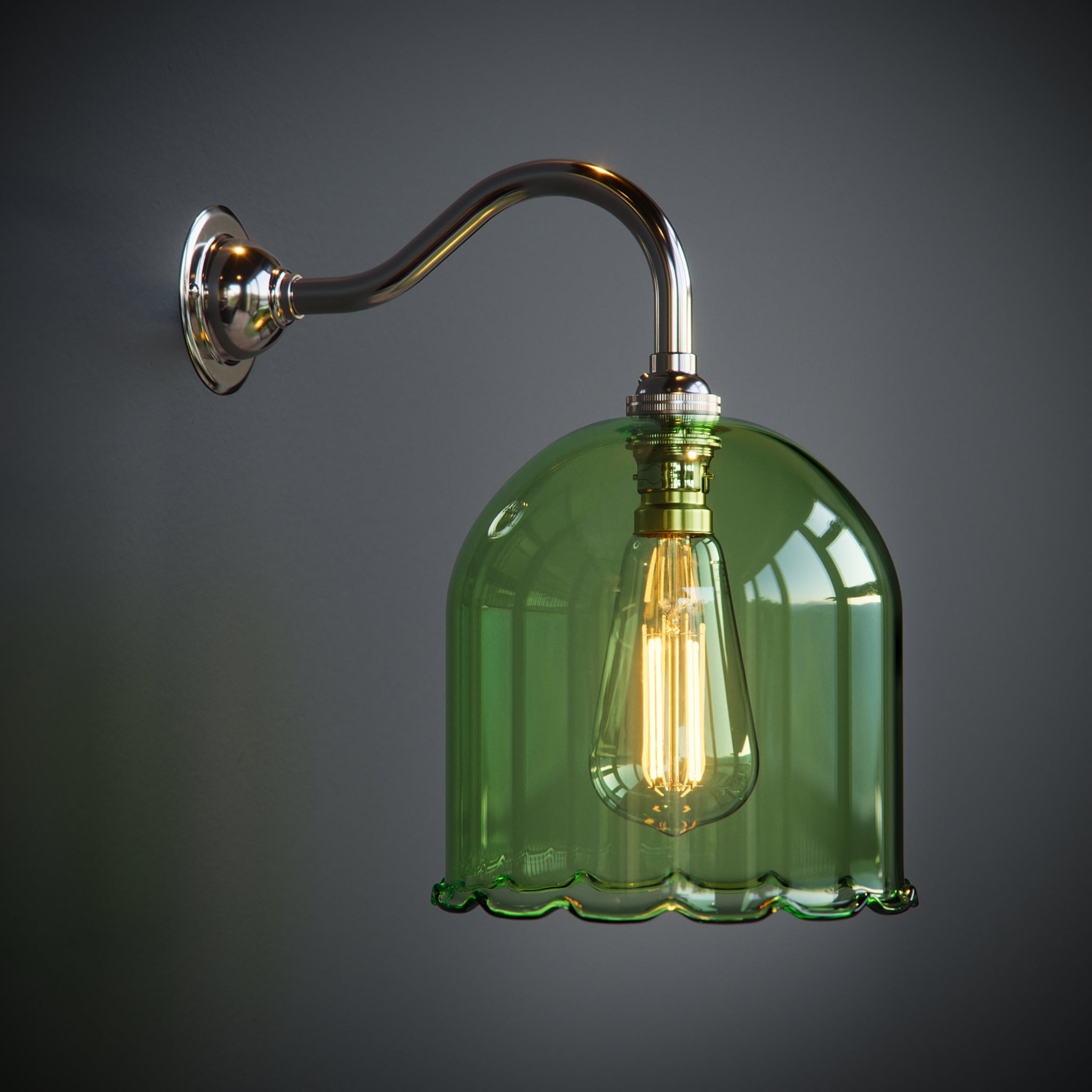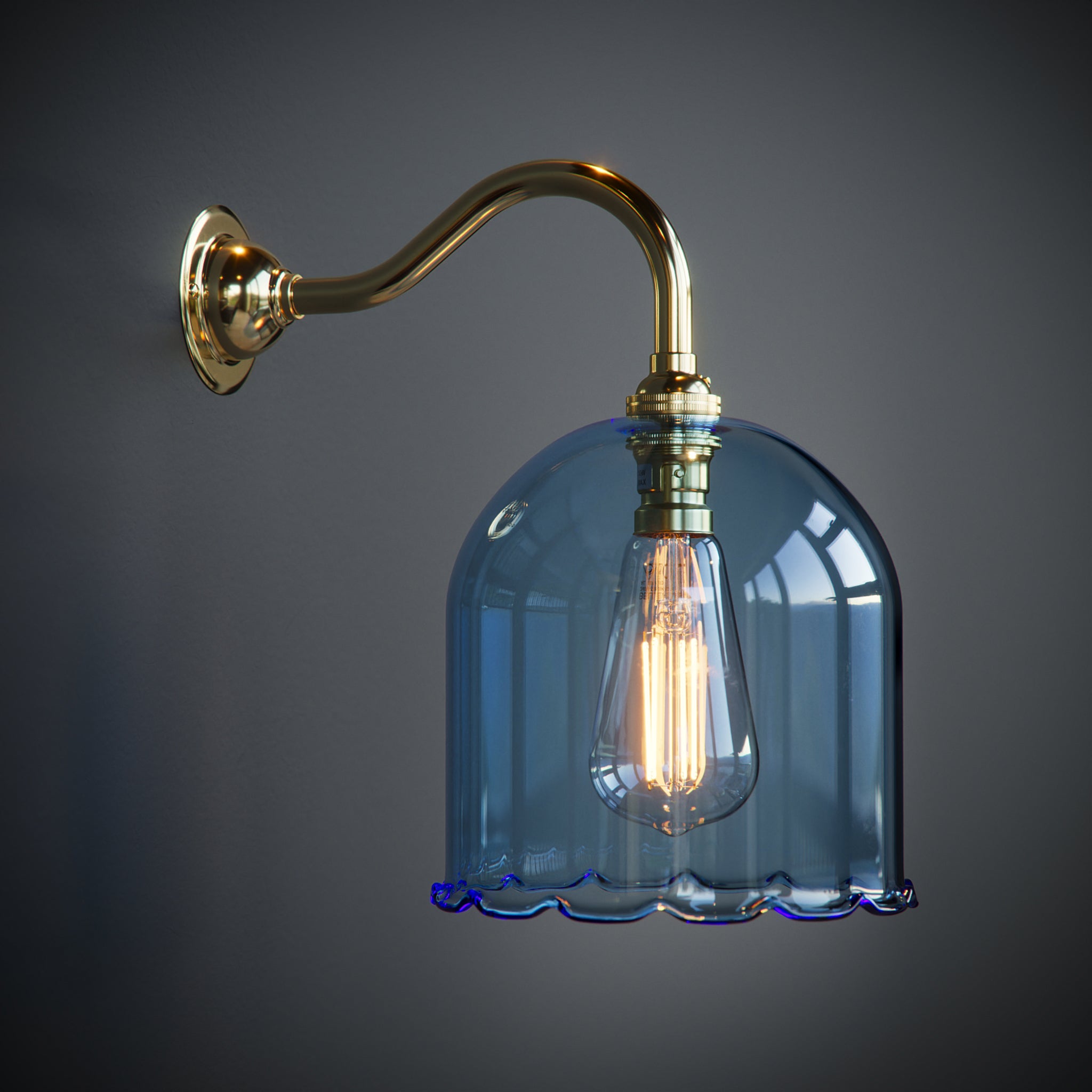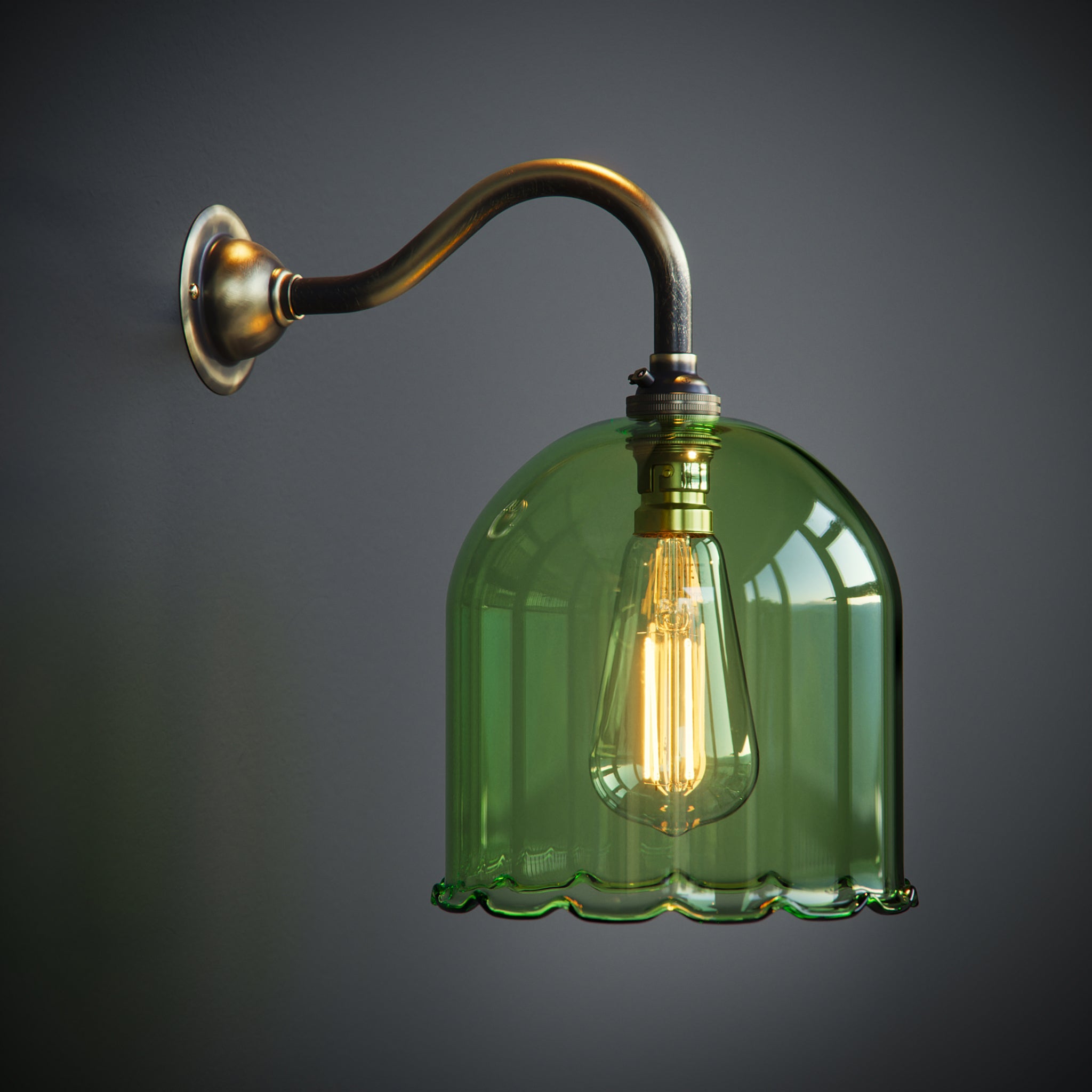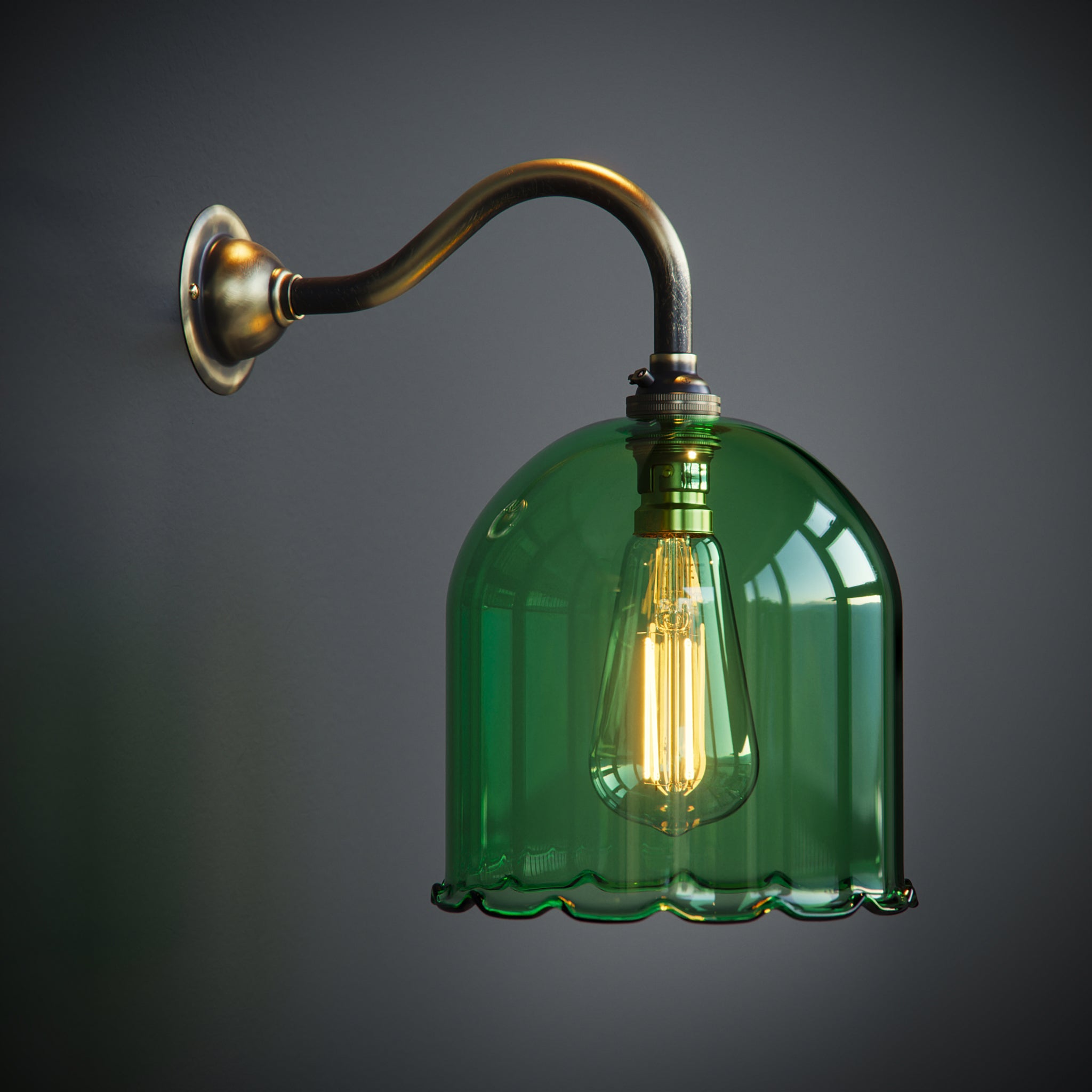 Frieda Frilled Classic Curved Arm Wall Light – Handblown Coloured Glass Lighting, Made in Britain