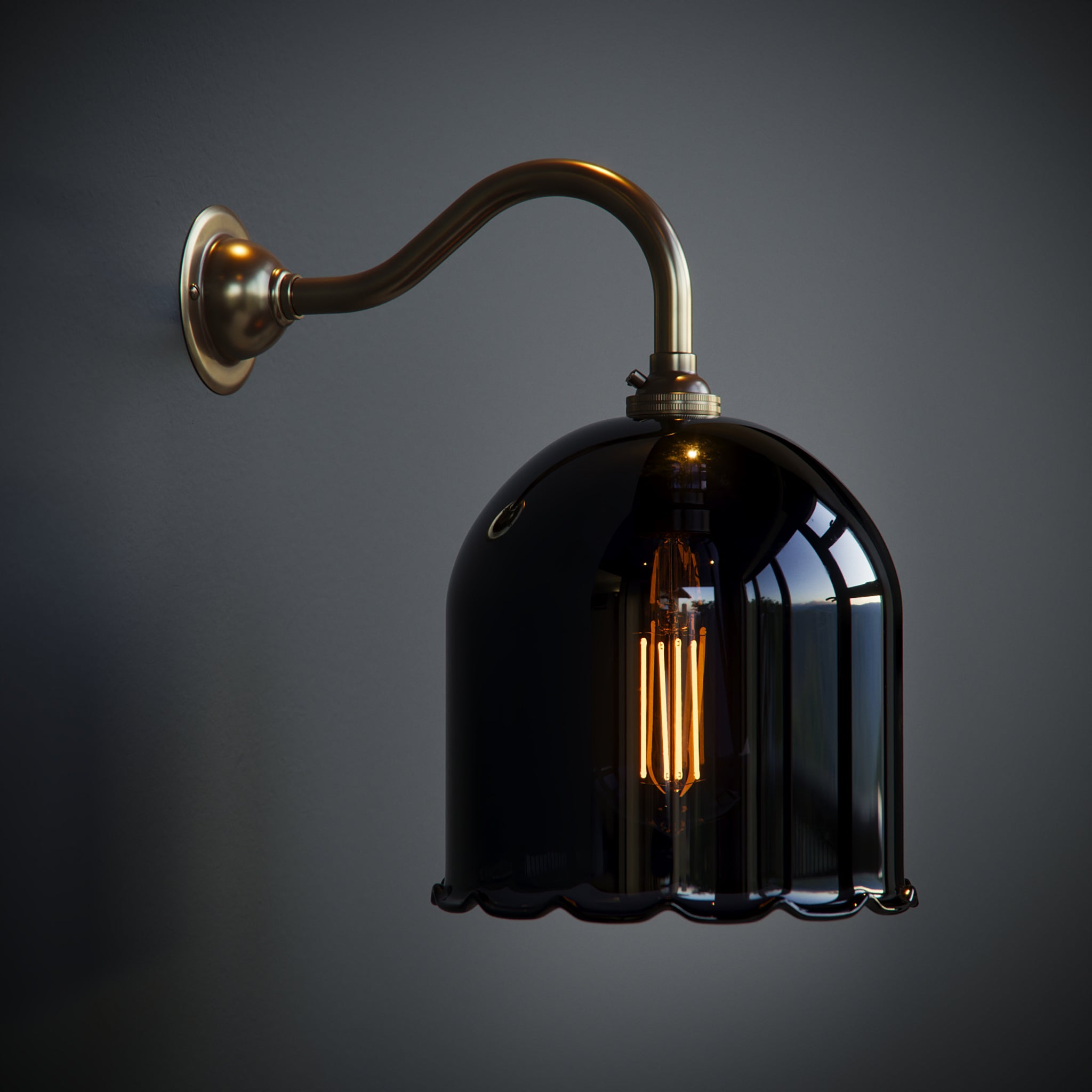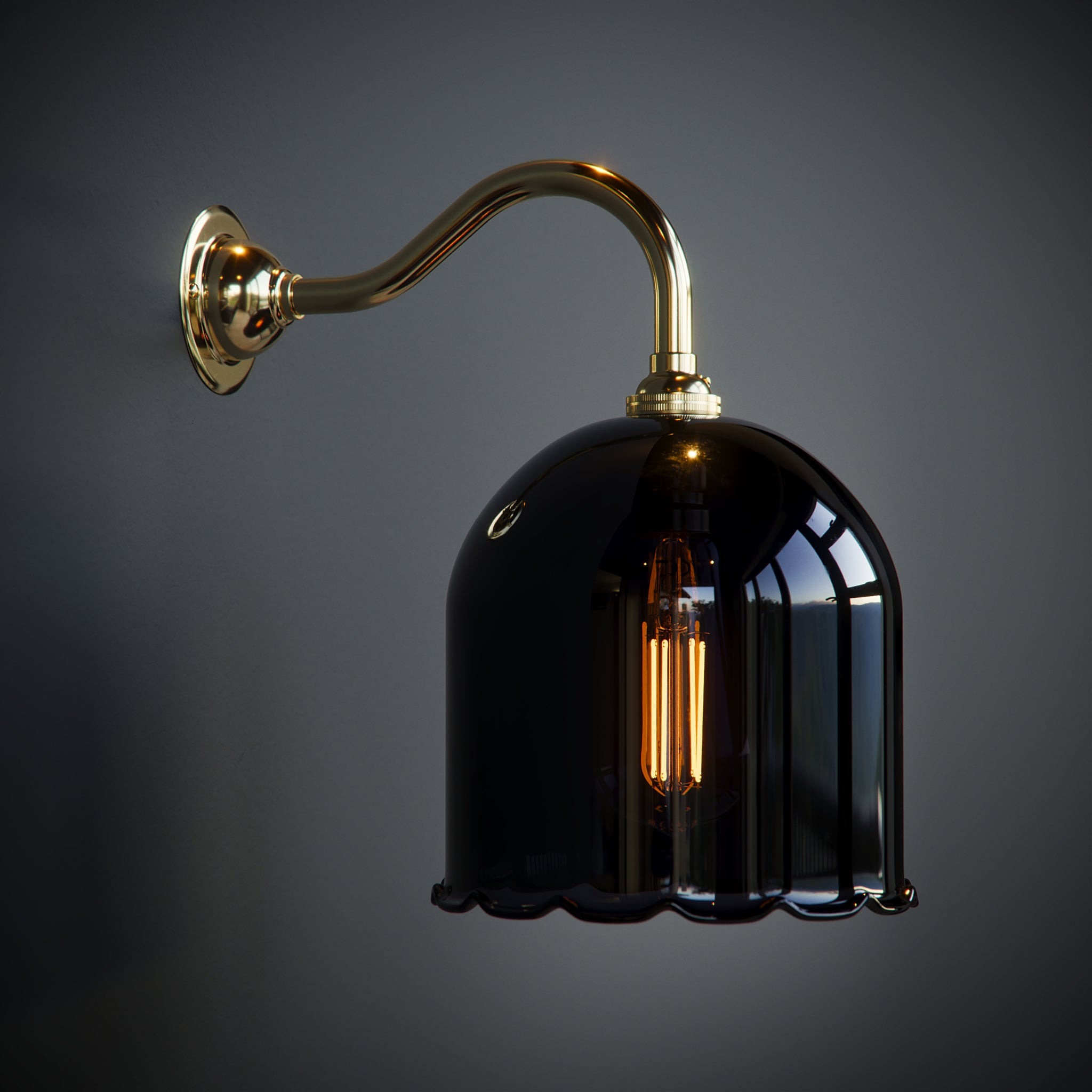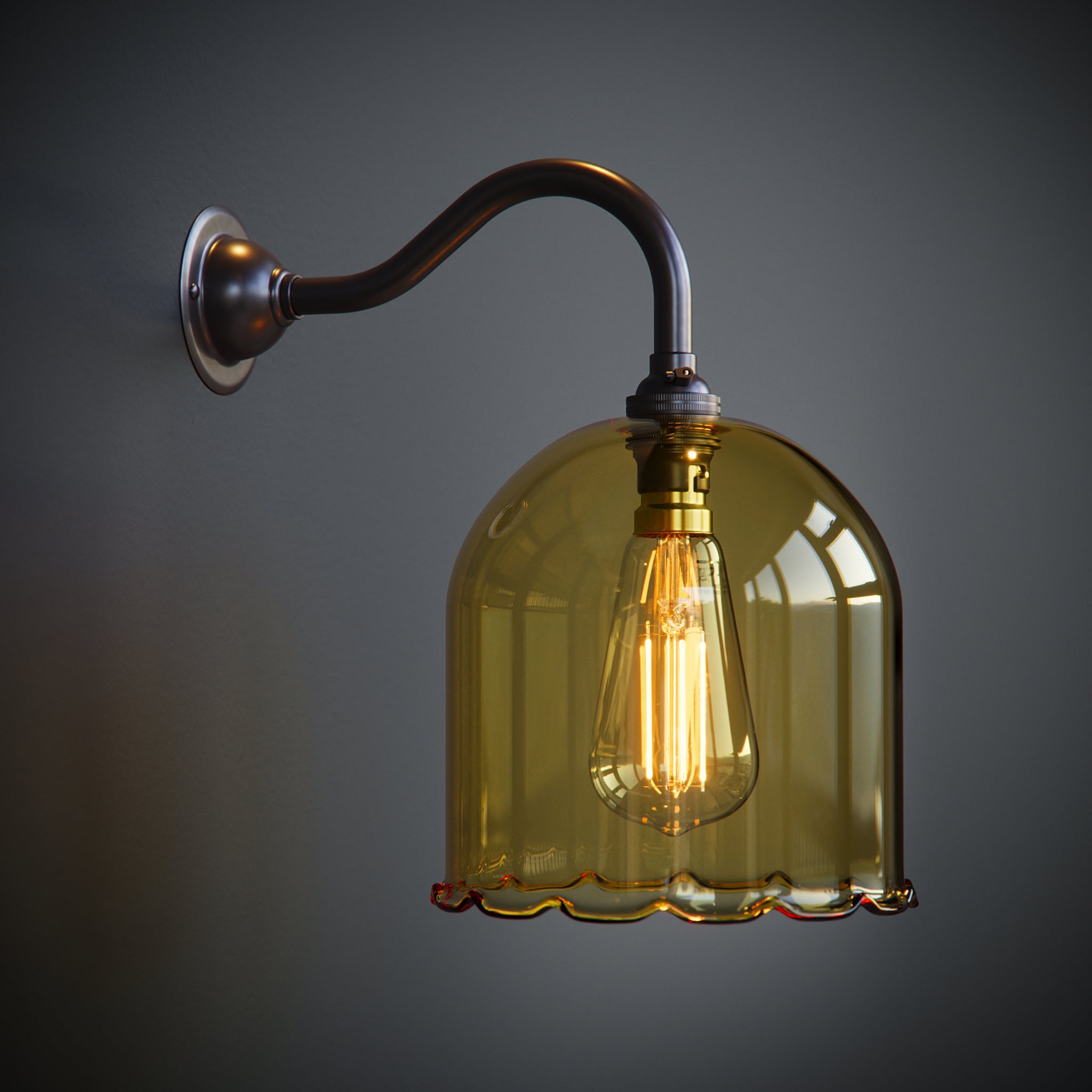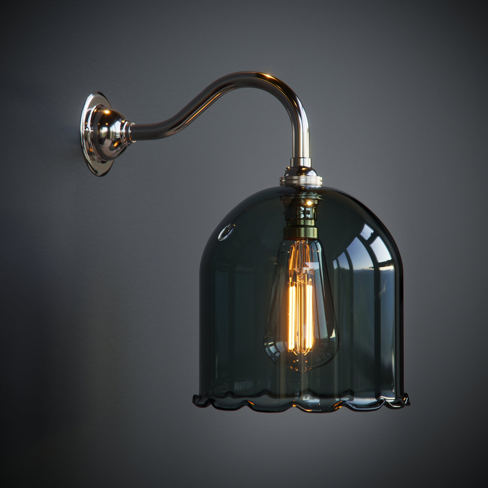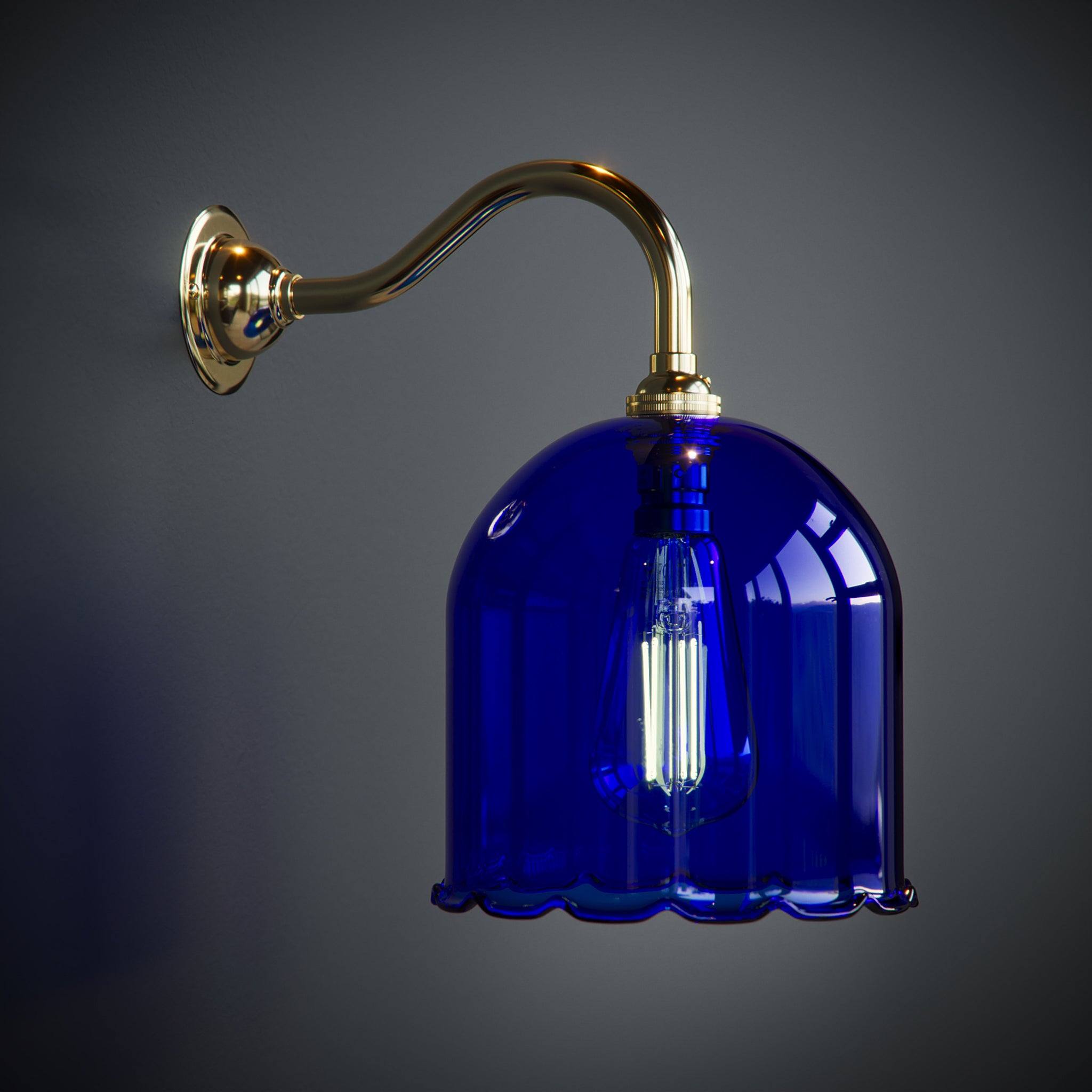 Frieda Frilled Classic Curved Arm Wall Light – Handblown Coloured Glass Lighting, Made in Britain